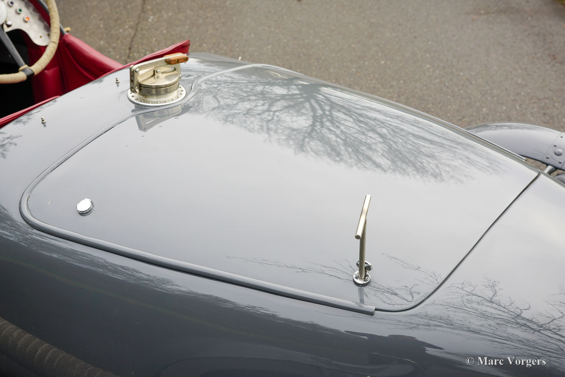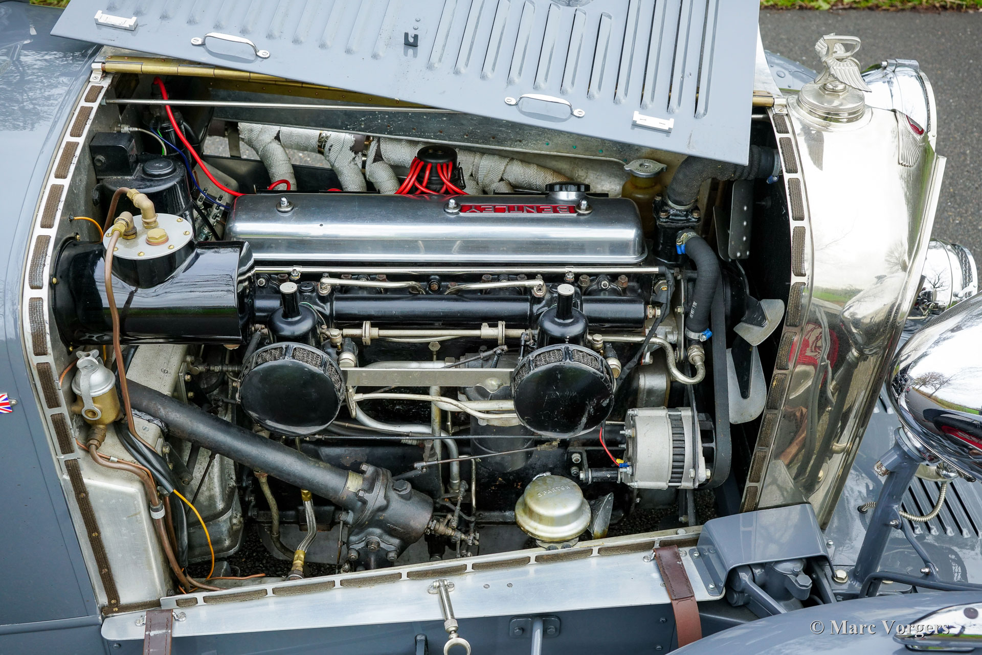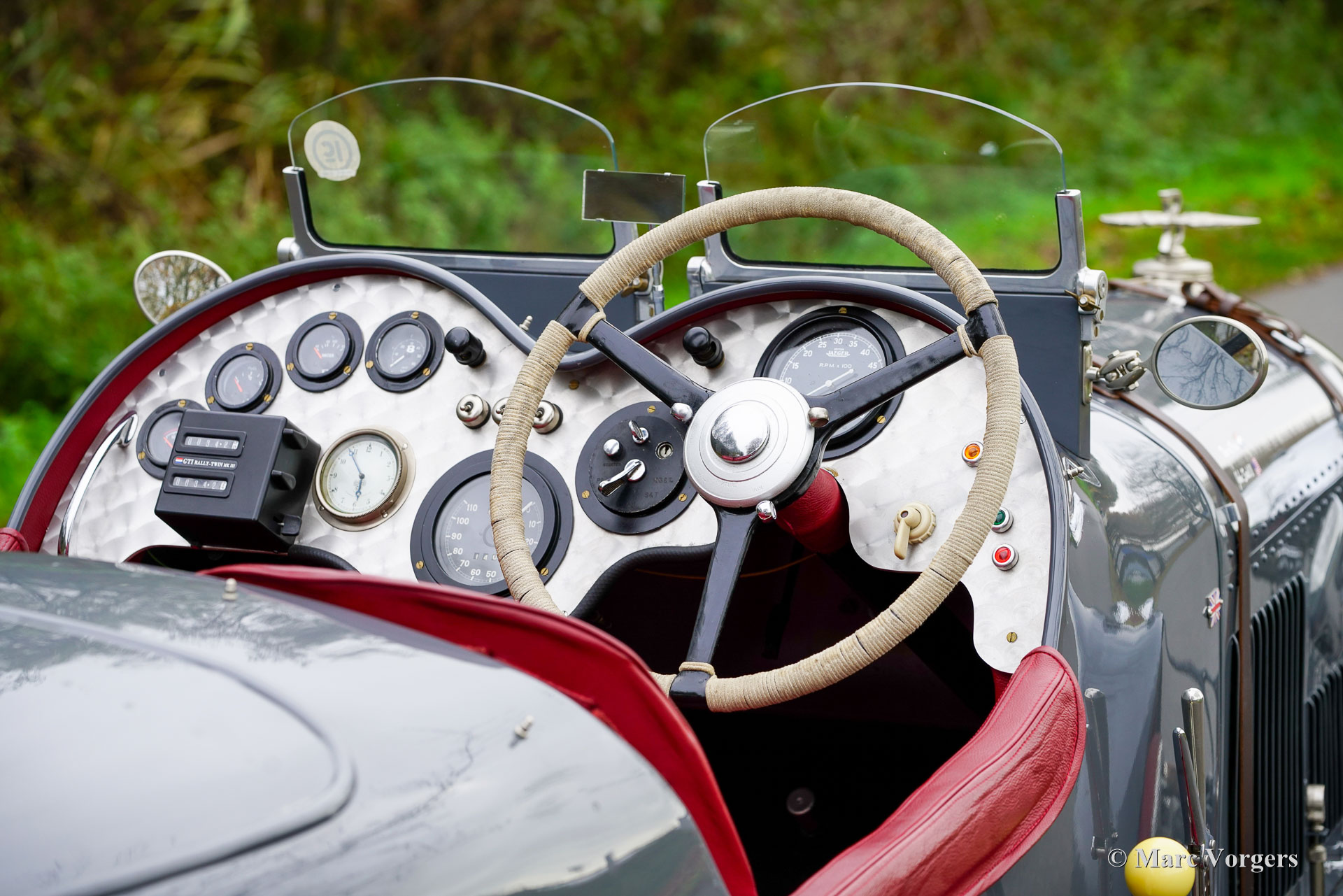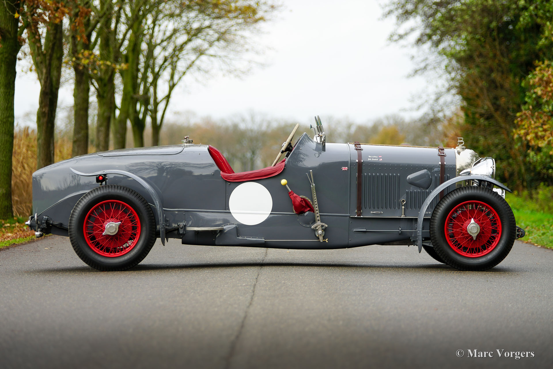 Bentley ‘Old Number One’ special, chassis 1947. Chassisnummer B172AK. Carrosseriekleur grijs gecombineerd met rode spaakwielen. Interieur bekleed met rood leer en bijpassend rood wollen tapijt. Deze prachtige Bentley ‘Old Number One’ replica werd gebouwd op een origineel Bentley Mk VI chassis uit 1947. De auto werd gebouwd door Vintage Car Serry (Serry Exclusive) in Hilversum, Nederland. Dit gerenommeerde bedrijf bouwt al tien jaar op maat gemaakte recreaties van Bentley's legendarische Le Mans-winnende Speed Six ‘Old Number One’ uit 1929 - 1930. Deze indrukwekkende auto werd gebouwd met authentieke en volledig gereviseerde Bentley MK VI mechanica (4,25 liter Bentley B60 zes-in-lijn motor en Bentley 4-versnellingsbak), prachtig handgemaakte aluminium carrosserie en perfect vervaardigde lederen en wollen bekleding voor het interieur. Dit schitterende exemplaar werd in 2016 opgeleverd en in 2017 bij de RDW geregistreerd. Sindsdien heeft de auto slechts één zorgvuldige eigenaar gekend die er 4981 mijl met volle teugen van heeft genoten. Deze fraaie Bentley special is gebouwd en afgewerkt volgens zeer hoge normen en verkeert in een uitstekende staat! Omdat deze special is gebaseerd op het sublieme Bentley Mk VI chassis en de mechanische onderdelen (die in de jaren 40 tot de beste in de branche behoorden), zijn de handling en bediening van deze auto aangenaam en gemakkelijk in vergelijking met het origineel uit 1929. De open rijervaring is magnifiek en de krachtige brul uit de uitlaat met Brooklands demper en fish-tail is verslavend! Het uitzicht op en over het aluminium dashboard met een reeks meters is indrukwekkend en geeft je het gevoel een gevechtspiloot te zijn. Het interieur biedt voldoende ruimte voor een lange bestuurder en bijrijder. Achterin vindt u een ruime kofferbak waar het reservewiel is ondergebracht en waar u uw bagage kunt opbergen. De unieke Bentley Speed Six ‘Old Number One’ is een van de meest iconische auto's uit het ‘Bentley Boys’-tijdperk. Deze prachtige handgemaakte aluminium replica, met een origineel Bentley-chassis en mechanische componenten, brengt de spanning en het heldendom van de Le Mans ‘Bentley Boys’ naar de wereld van een avontuurlijke nieuwe eigenaar!