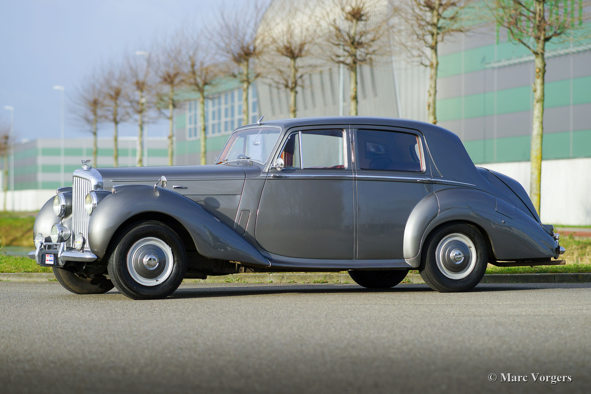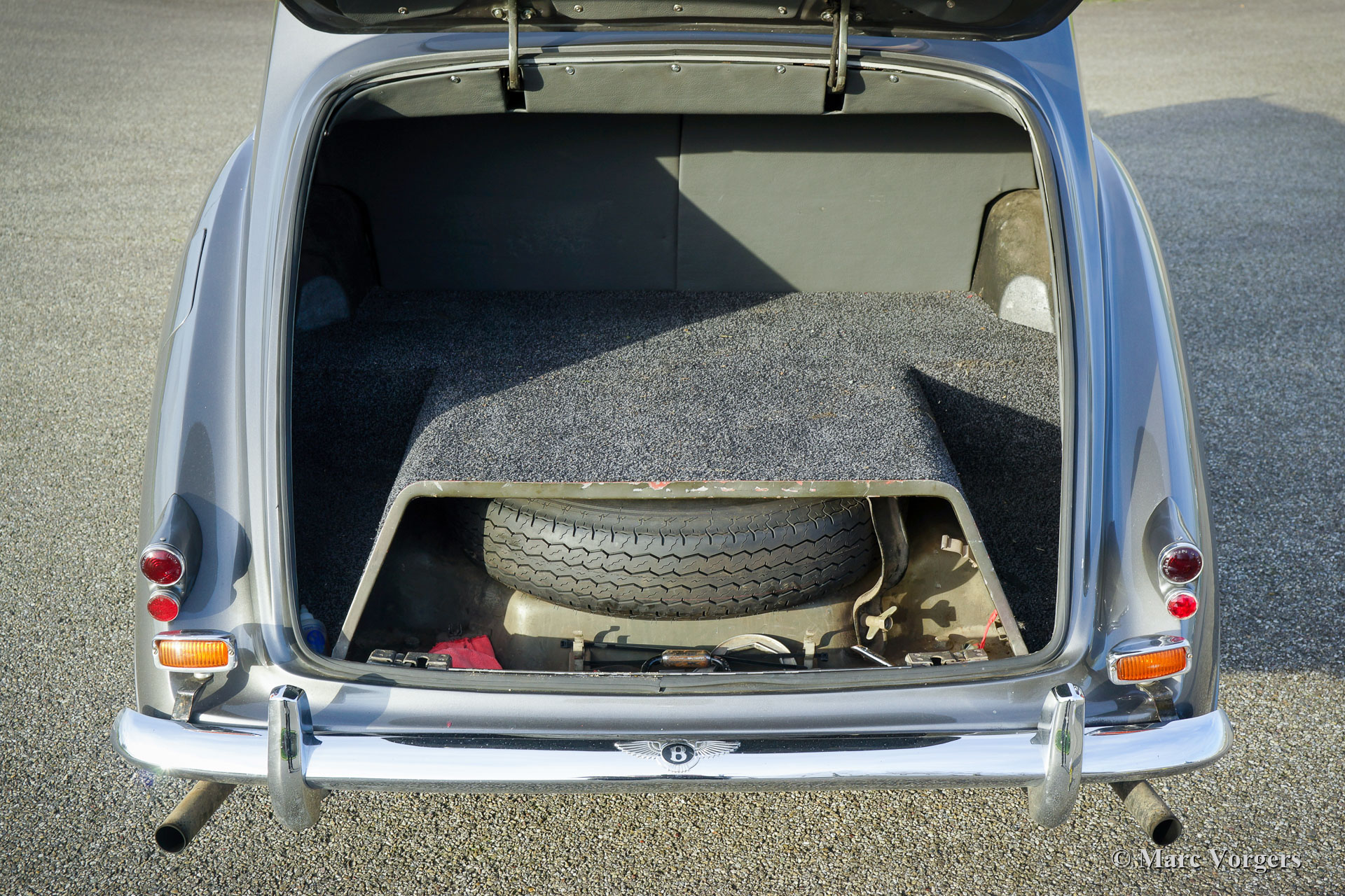 Bentley R-Type, jaar 1953. Kleur ‘Gun Metal grey’ metallic gecombineerd met een donkerrood volledig lederen interieur en donkerrood wollen tapijt. Deze prachtige Bentley R-Type werd meer dan tien jaar geleden door Imparts aan de laatste eigenaar verkocht. Gedurende deze periode werd de automobiel voorzien van prachtig nieuw lakwerk en werd de handbediende vierversnellingsbak gereviseerd. De Bentley werd zeer goed onderhouden en de auto verkeert in een super originele en zeer goede conditie! Alle originele details zijn aanwezig waaronder het fabriek originele schuifdak! Het originele interieur vertoont enige sporen van gebruik en ouderdom; Een prachtig patina van 67 jaar! De auto stuurt, schakelt en remt zoals het hoort, en de 4.6 liter zescilinder-lijnmotor loopt voortreffelijk. Dit is een fraaie naoorlogse Bentley in een zeer goede staat van binnen en van buiten. Er werden slechts 2320 exemplaren van de R-Type met de hand gebouwd door de ambachtslieden in Crewe.