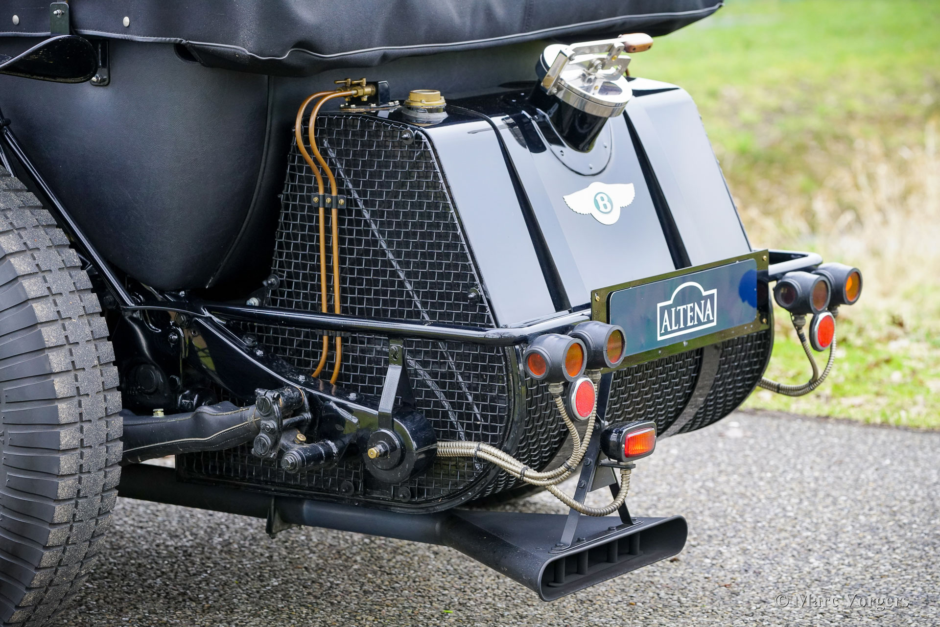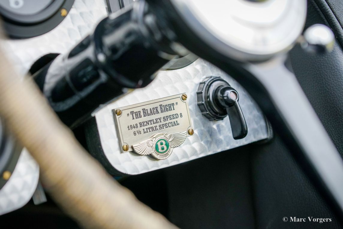 Bentley Speed 8 door Racing Green Engineering, chassis bouwjaar 1948. Chassisnummer: B186DA, motornummer: 20103. Kleur zwart gecombineerd met een zwartlederen interieur afgewerkt met zwart tapijt. Zwarte kap, kapafdekking en tonneauhoes. Deze fantastische Bentley Speed 8 Special is gebouwd door het gerenommeerde bedrijf Racing Green Engineering (RGE) in Wales, Verenigd Koninkrijk. De Bentley is gebaseerd op een volledig gerestaureerd en herbouwd Bentley MK VI chassis uit 1948, voorzien van een volledig gereviseerde B81 6500 cc achtcilinder lijnmotor. De bouw werd voltooid in 2012. De aluminium carrosserie is meesterlijk met de hand vervaardigd door de bekwame vakmensen van RGE volgens de hoogst mogelijke normen van perfectie. De open tourer carrosserie van het Vanden Plas-type (zoals gebruikt in de legendarische 24 uursraces op Le Mans!) is gebouwd volgens het Weyman ‘flexibele carrosserie’-principe en bekleed met vinyl. Dit type carrosserie is geluiddempend, rammelvrij en volledig stil. De combinatie van het robuuste en betrouwbare naoorlogse Bentley MK VI-chassis met volledig gesynchroniseerde vierversnellingsbak, hydraulische trommelremmen rondom, de krachtige 6,5-liter motor, de bouw volgens hoge moderne kwaliteitsnormen en het Le Mans-achtige ontwerp van vooroorlogs design, maakt deze Bentley Speed 8 tot een auto die het beste van twee werelden biedt. Modern gebruiksgemak, betere rijeigenschappen, meer comfort en grote betrouwbaarheid, gecombineerd met de meest aansprekende vintage uitstraling! Deze Speed 8 is voorzien van bijna alle Racing Green Engineering-opties en de versnellingspook bevindt zich buiten de carrosserie. Deze imposante machine is perfect onderhouden door een specialist; de auto verkeert in een sublieme conditie. De auto vertoont slechts lichte gebruikssporen. Deze fraaie Bentley is uitgerust met 21-inch spaakwielen met 6.75-7.00 Blockley-banden. De kuipstoelen zijn ideaal geplaatst, zodat ook lange bestuurders en passagiers voldoende beenruimte hebben. De rijervaring in deze magnifieke Bentley is fantastisch en indrukwekkend. De imposante verschijning, de hoge zitpositie, het uitzicht over de lange motorkap, het donderende geluid uit de uitlaat, het mechanische gevoel van de bedieningselementen, de geuren… Al deze indrukken dragen bij aan een unieke vintage rijervaring. Altena Classic Service is een officiële partner en (service) dealer van Racing Green Engineering en biedt advies om optimaal van uw exclusieve Bentley te genieten. Deze Bentley kan naar elk Europees land worden geïmporteerd en wordt geleverd met een complete historie. Deze ‘Black Eight’ is een machtige Bentley Speed 8 Special, klaar om volop van te genieten!
