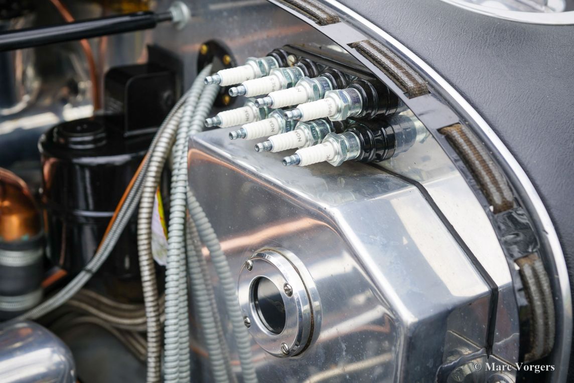 Carrosserie: Frame van essenhout. Aluminium panelen, bekleed met watten en kunstleer. Dubbele intrekbare soft-top en volledige tonneauhoes. Opklapbare voorruit met gelaagd veiligheidsglas. Massief vernikkelde radiatorgrille, alle overige chromen onderdelen vernikkeld. Lederen interieur met kuipstoelen voor bestuurder en passagier. Hoogwaardige, dichtgeweven vloerbedekking.