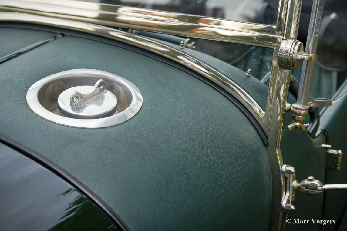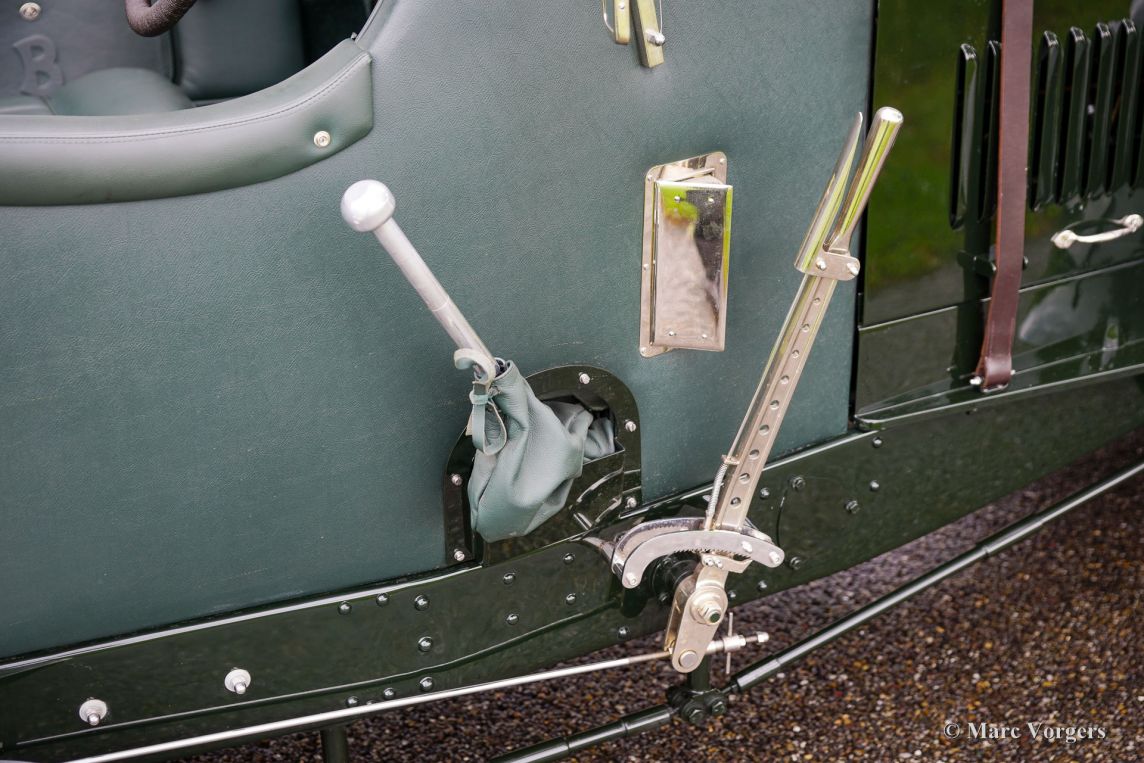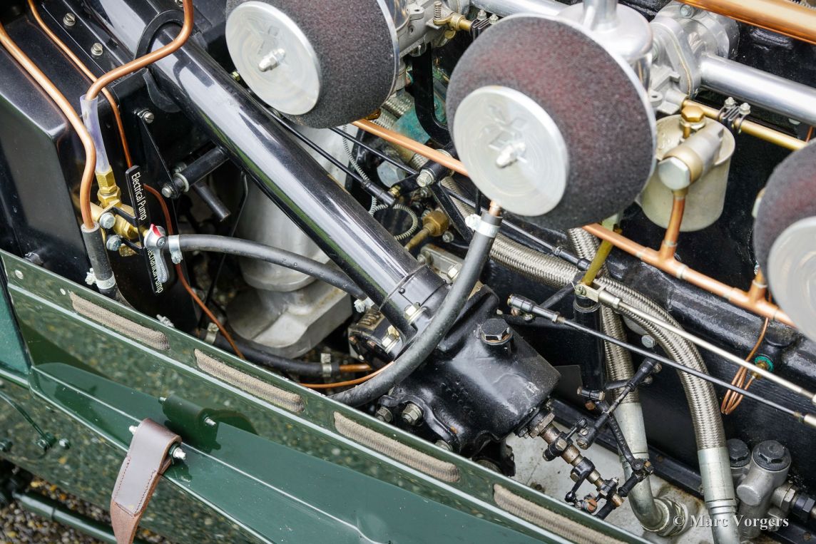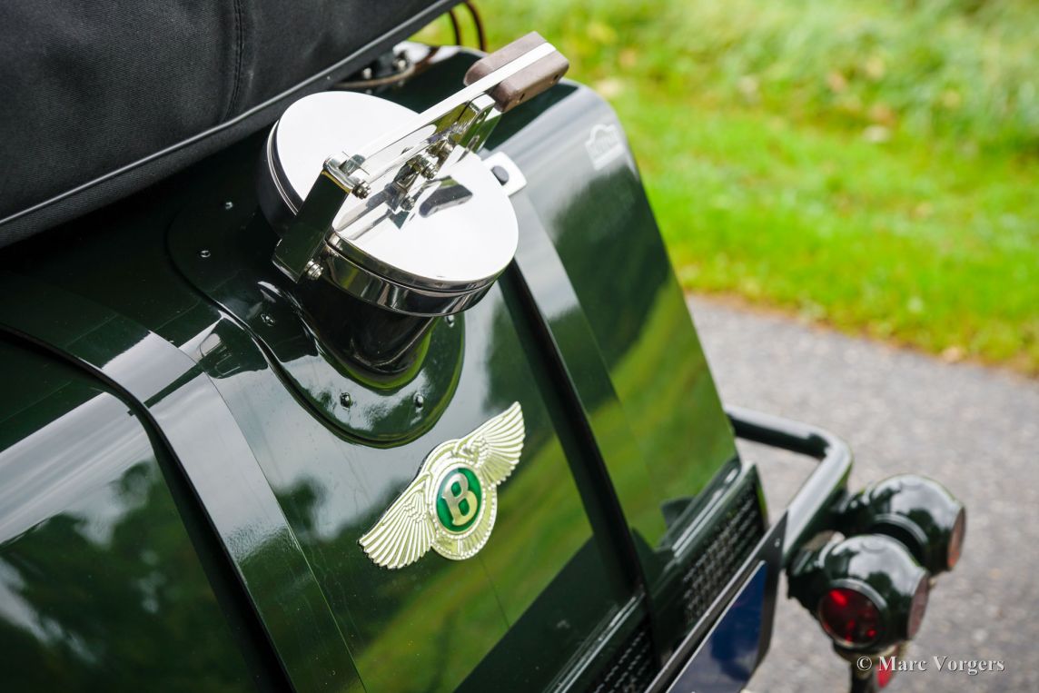 The Bentley 3 Litre was W.O. Bentley’s first design. The car was presented in 1919 but the first cars were sold in 1921. The four cylinder cars of rugged construction where in a class of their own for they combined the size and comfort of the big tourers and saloons with the road holding, and speed of the smaller sports- and racing cars. The Bentley was a true owner-driver car for the sporting motorist and connoisseur. The Bentley car could be had in three different types which were designated with three different radiator badges*. Red badge: short chassis speed model, Blue badge: the early short and then long chassis type for bespoke bodywork, Green badge: very rare and used for about eighteen 100 mph. These Green badge car won at Le Mans in 1924 and 1927 (Old Number Seven.) The 3-Litre was built from 1919 until 1929.