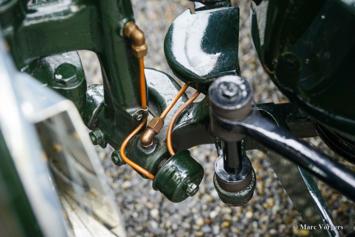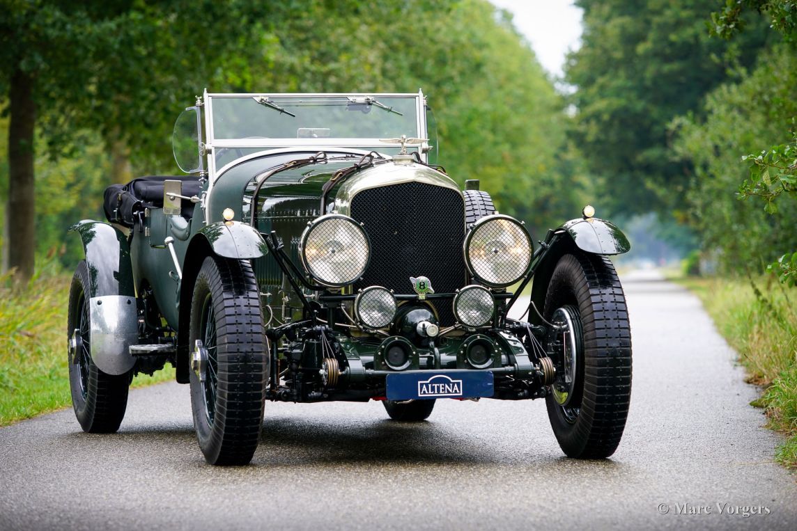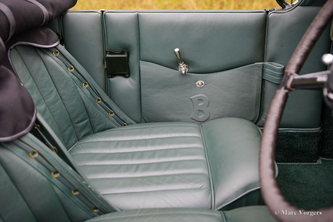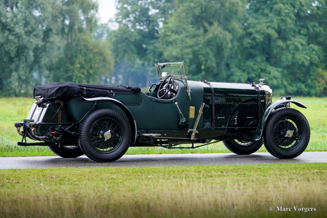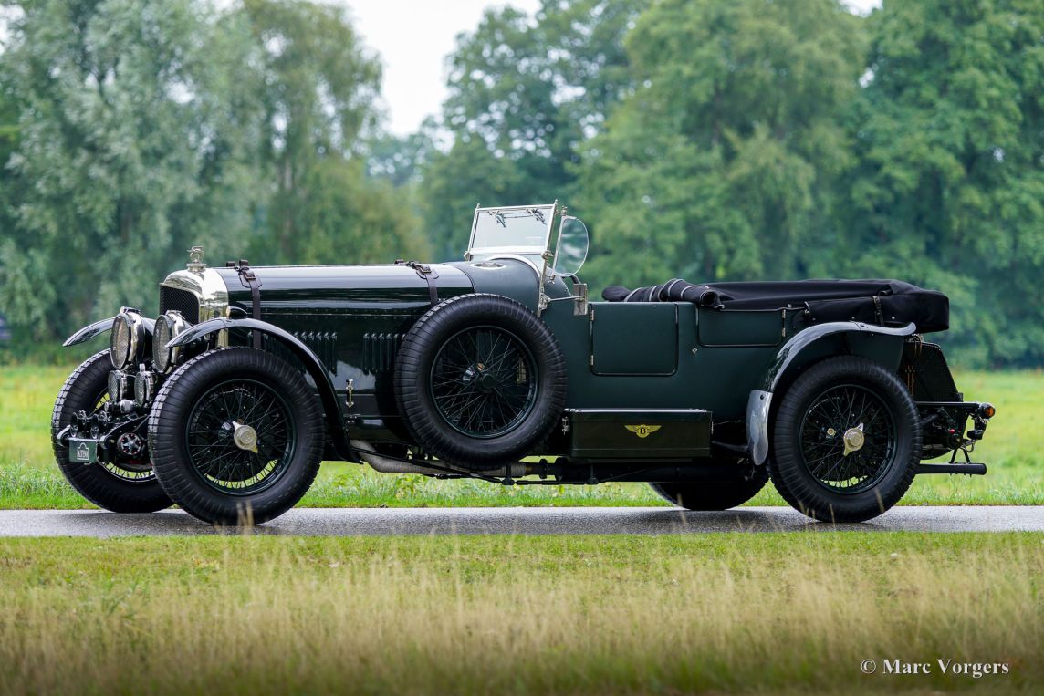 The Bentley 3 Litre was W.O. Bentley’s first design. The car was presented in 1919 but the first cars were sold in 1921. The four cylinder cars of rugged construction where in a class of their own for they combined the size and comfort of the big tourers and saloons with the road holding, and speed of the smaller sports- and racing cars. The Bentley was a true owner-driver car for the sporting motorist and connoisseur. The Bentley car could be had in three different types which were designated with three different radiator badges*. Red badge: short chassis speed model, Blue badge: the early short and then long chassis type for bespoke bodywork, Green badge: very rare and used for about eighteen 100 mph. These Green badge car won at Le Mans in 1924 and 1927 (Old Number Seven.) The 3-Litre was built from 1919 until 1929.