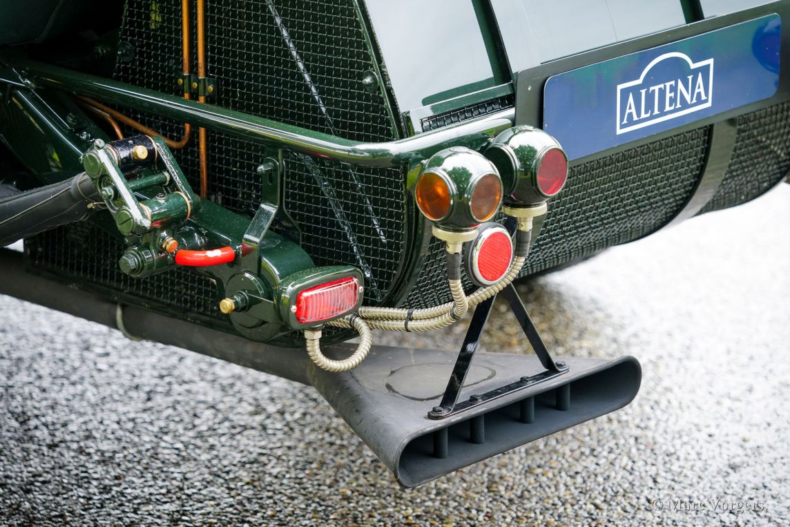 Bentley Speed 8, bouwjaar chassis 1952. Chassis nummer B33RS, motornummer B80-18350. VandenPlas stijl carrosserie afgewerkt in donker British Racing Green gecombineerd met een zwarte kap, kapafdekking en tonneau cover. Het open tourer interieur is bekleed met donkergroen leer en donkergroen wollen tapijt. Deze glorieuze Bentley Speed 8 Special werd gebouwd door het gerenommeerde bedrijf Racing Green Engineering (RGE) in Wales, VK. De Bentley is gebaseerd op een volledig gerestaureerd en herbouwd 1952 Bentley MK VI chassis uitgerust met een volledig gereviseerde en herbouwde B80 5700 cc achtcilinder-in-lijn motor. De aluminium carrosserie is vakkundig met de hand gebouwd door de bekwame RGE-vakmensen tot de hoogst mogelijke normen van perfectie. De Vanden Plas type open tourer carrosserie (zoals gebruikt op Le Mans!) is gebouwd volgens het Weyman ‘flexibele carrosserie’ principe en bekleed met vinyl. Dit carrosserie type is geluiddempend, rammelvrij en volledig stil. De combinatie van het robuuste en betrouwbare naoorlogse Bentley MK VI-chassis met volledig gesynchroniseerde 4-versnellingsbak, hydraulische trommelremmen rondom, de krachtige 5,7 liter motor, de bouw volgens hoge moderne kwaliteitsnormen en het Le Mans-stijl vooroorlogse design maken dat deze Bentley Speed 8 het beste van twee werelden biedt. Modern bedieningsgemak, betere wegligging, meer comfort en grote betrouwbaarheid gecombineerd met de meest indrukwekkende vintage looks! Sinds de bouw in 2017 is voltooid, heeft de auto 2500 kilometer gereden in handen van één eigenaar. Deze imposante machine is uitstekend onderhouden; de auto verkeert in excellente conditie! De auto vertoont slechts lichte gebruikssporen. Deze fraaie Bentley special is voorzien van 21 inch spaakwielen met 6.75-7.00 Blockley banden. Extra gemonteerde opties zijn een extra opbergbak, achterlichten gespoten in chassis-/carrosseriekleur en luxe claxons. De kuipstoelen zijn ideaal geplaatst, zodat ook lange bestuurders en passagiers voldoende beenruimte hebben. De rijervaring van deze magnifieke Bentley is fantastisch en indrukwekkend. De imposante verschijning, de hoge zitpositie, het uitzicht over de lange motorkap, het geluid van de donder uit de uitlaat, het mechanische gevoel van de bedieningselementen, de geuren… Al deze indrukken dragen bij aan een unieke vintage rijervaring. Altena Classic Service is een officiële Racing Green Engineering (Service) partner/dealer en biedt advies en service om optimaal van uw exclusieve Bentley te genieten. Deze Bentley kan naar elk Europees land geïmporteerd worden; de auto wordt geleverd met een complete historie en de juiste documenten. Dit is een machtige Bentley Speed 8 special, klaar om volop van te genieten!