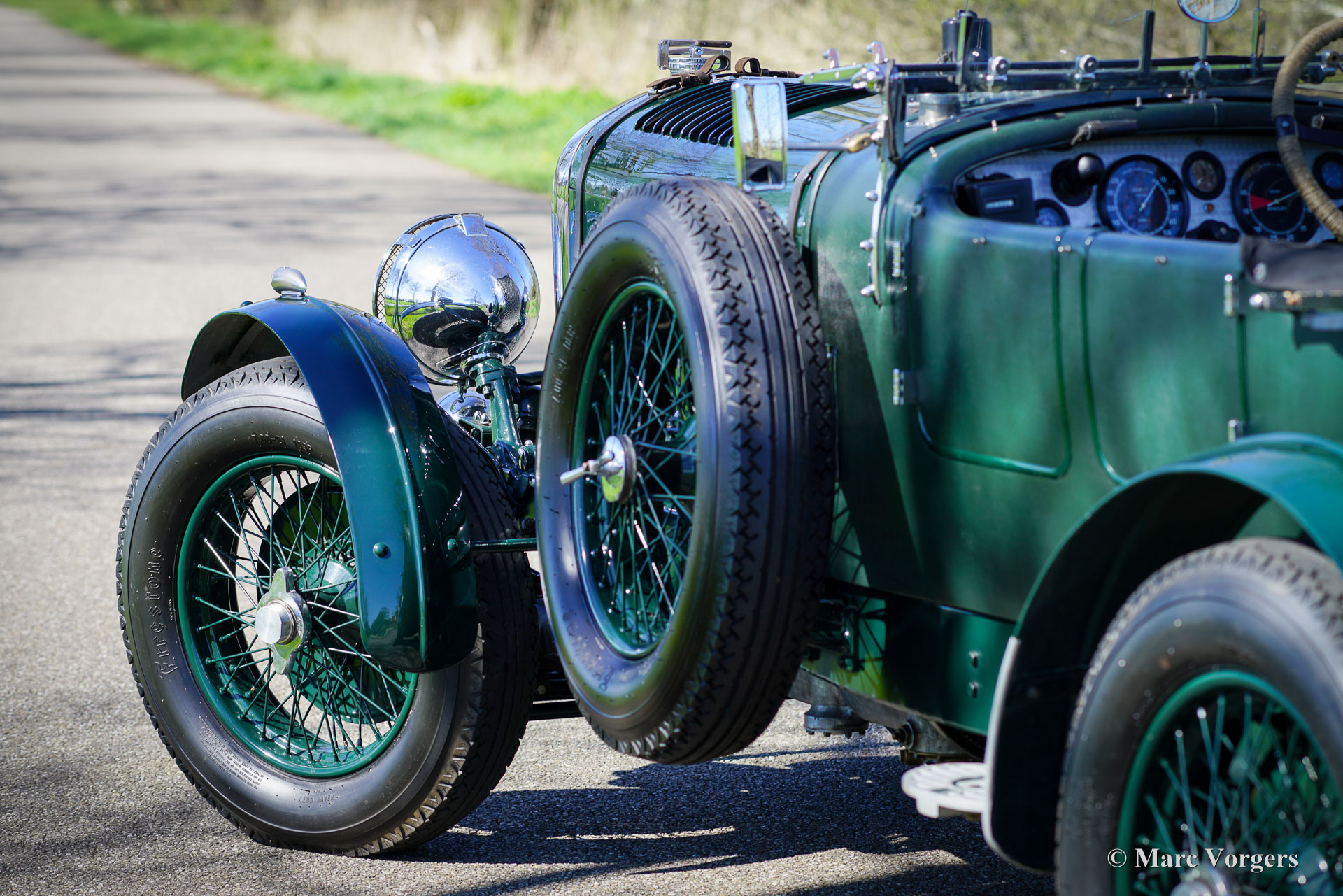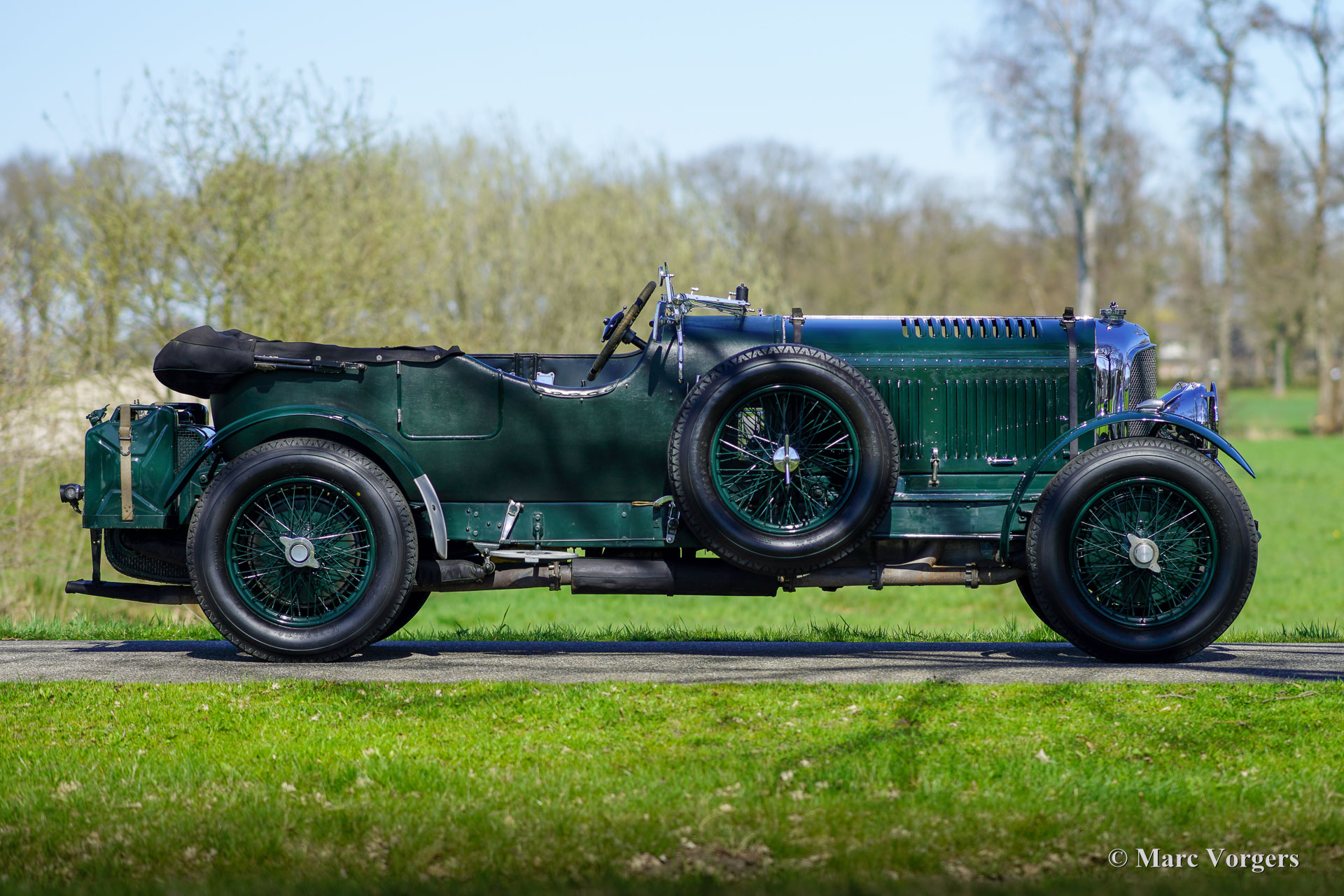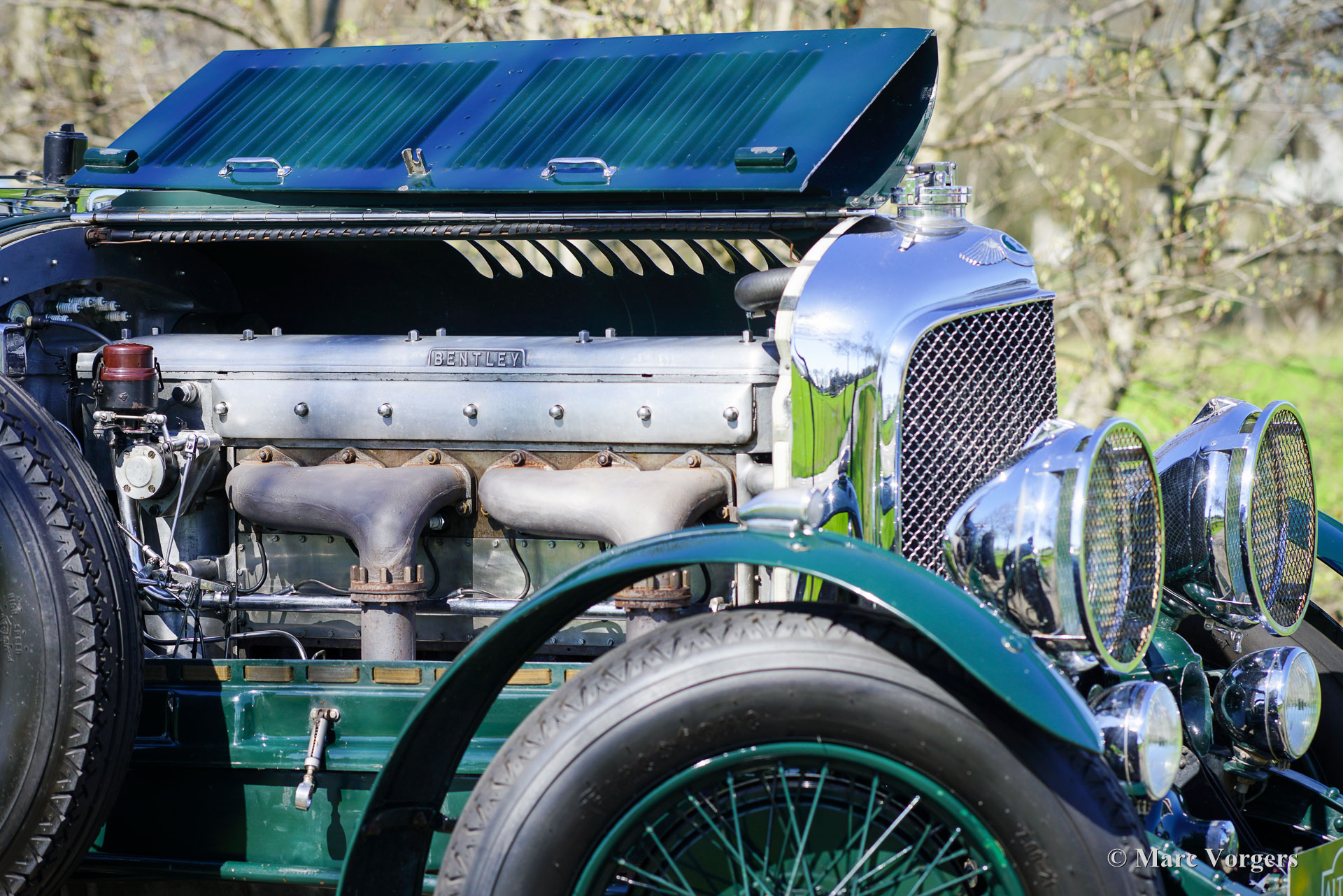 Bentley ‘Speed Six’, bouwjaar (chassis) 1927. Kleur donker British Racing Green gecombineerd met een groen lederen interieur en groen wollen tapijt. Deze magnifieke automobiel is een van de 545 6 ½ Liter en Speed Six modellen gebouwd tussen 1926 en 1930. Bentley 6 ½ Liter chassis TB2526 werd gebouwd in september 1926 en vervolgens voorzien van een Limousine Landaulette carrosserie door Hooper. De Bentley werd voltooid en geregistreerd in 1927. In WO2 werd de Bentley gebruikt als ambulance en later omgebouwd tot bestelwagen! De auto staat vermeld in het Bentley-boek van Michael Hay met de Bentley-fabrieksauto's, nummers en details zoals hier vermeld. In de tweede helft van de 20e eeuw werd de auto uitgebreid gerestaureerd en herbouwd met de huidige ‘Le Mans’ VandenPlas-stijl open toercarrosserie en een Speed Six-radiator met groene Bentley-badge. De enorme 6 ½ liter Bentley zescilinder-lijnmotor heeft vier kleppen per cilinder en drie S.U.-carburateurs. De motor loopt en klinkt magnifiek. De auto wordt geleverd met een compleet en zeer interessant historiedossier. Sinds het jaar 2000 is de auto in handen van de laatste eigenaar/verzamelaar die nauwgezet zorg heeft gedragen voor dit belangrijke stukje Bentley-erfgoed. In zijn handen heeft de auto deelgenomen aan verschillende historische rally/toerevenementen. Dit is een unieke kans om een zeldzame en super exclusieve vooroorlogse Bentley ‘Speed Six’ te bemachtigen in prachtige staat en met een fantastisch vintage patina.