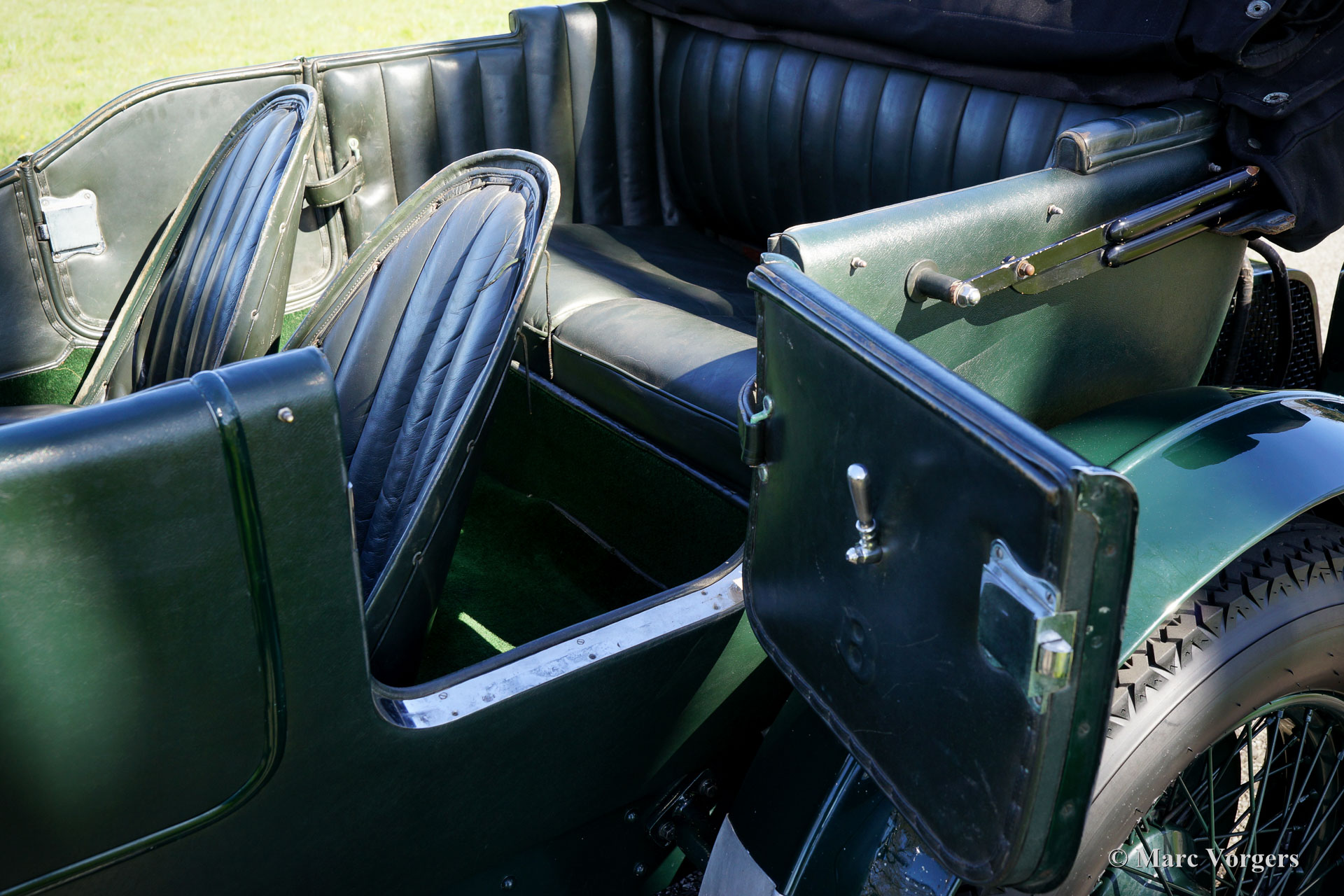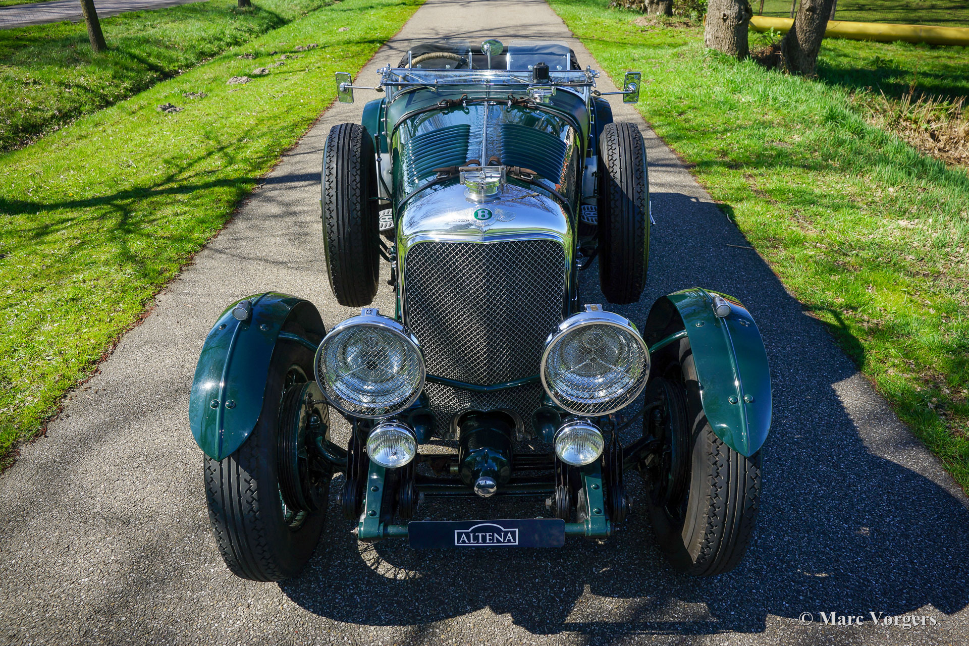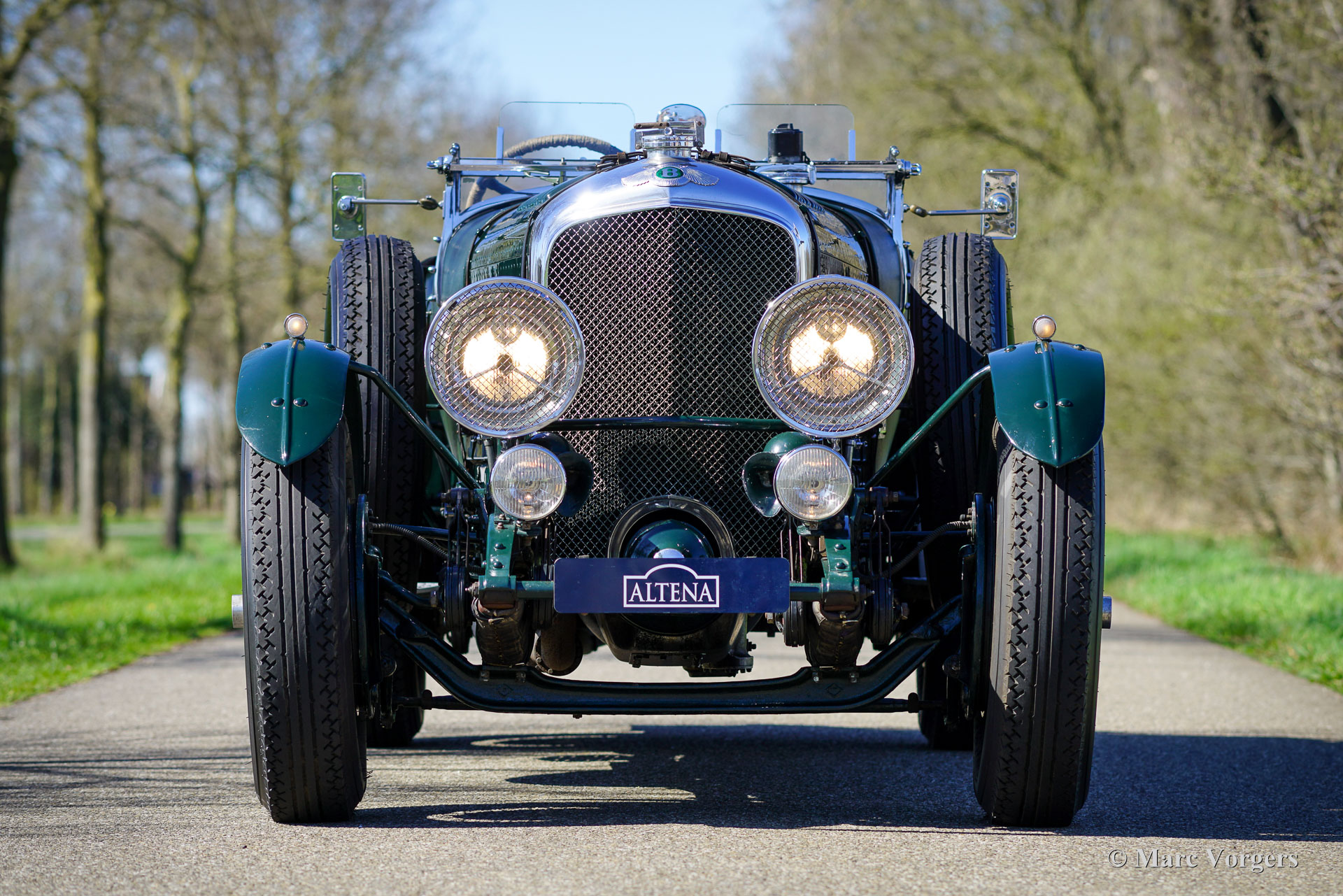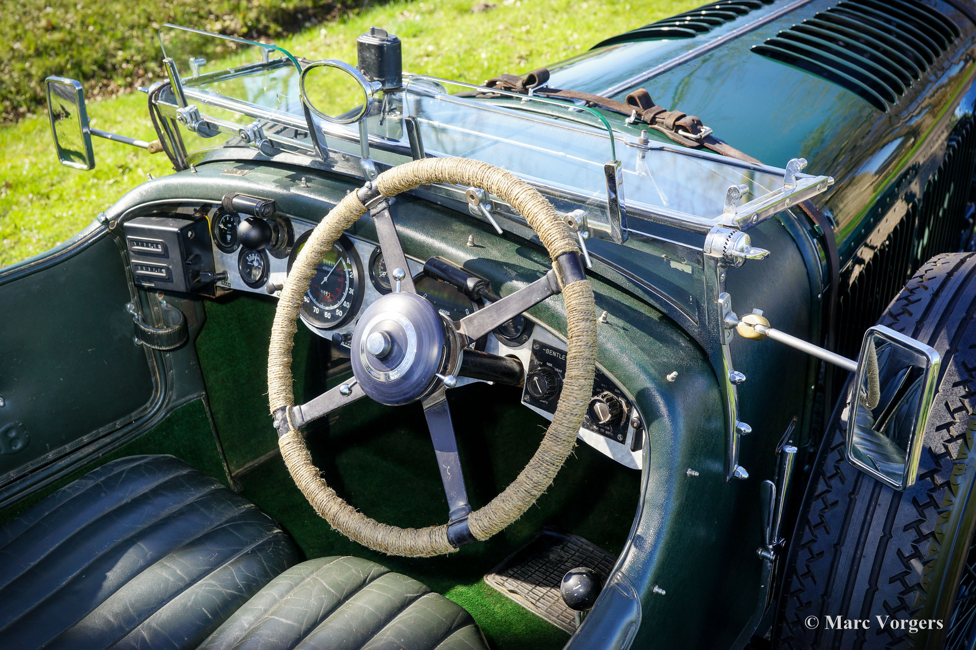 Bentley ‘Speed Six’, bouwjaar (chassis) 1927. Kleur donker British Racing Green gecombineerd met een groen lederen interieur en groen wollen tapijt. Deze magnifieke automobiel is een van de 545 6 ½ Liter en Speed Six modellen gebouwd tussen 1926 en 1930. Bentley 6 ½ Liter chassis TB2526 werd gebouwd in september 1926 en vervolgens voorzien van een Limousine Landaulette carrosserie door Hooper. De Bentley werd voltooid en geregistreerd in 1927. In WO2 werd de Bentley gebruikt als ambulance en later omgebouwd tot bestelwagen! De auto staat vermeld in het Bentley-boek van Michael Hay met de Bentley-fabrieksauto's, nummers en details zoals hier vermeld. In de tweede helft van de 20e eeuw werd de auto uitgebreid gerestaureerd en herbouwd met de huidige ‘Le Mans’ VandenPlas-stijl open toercarrosserie en een Speed Six-radiator met groene Bentley-badge. De enorme 6 ½ liter Bentley zescilinder-lijnmotor heeft vier kleppen per cilinder en drie S.U.-carburateurs. De motor loopt en klinkt magnifiek. De auto wordt geleverd met een compleet en zeer interessant historiedossier. Sinds het jaar 2000 is de auto in handen van de laatste eigenaar/verzamelaar die nauwgezet zorg heeft gedragen voor dit belangrijke stukje Bentley-erfgoed. In zijn handen heeft de auto deelgenomen aan verschillende historische rally/toerevenementen. Dit is een unieke kans om een zeldzame en super exclusieve vooroorlogse Bentley ‘Speed Six’ te bemachtigen in prachtige staat en met een fantastisch vintage patina.