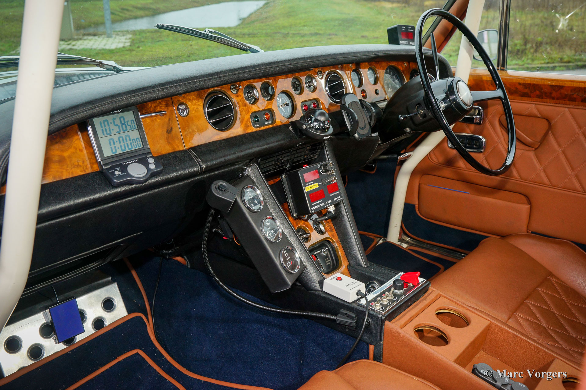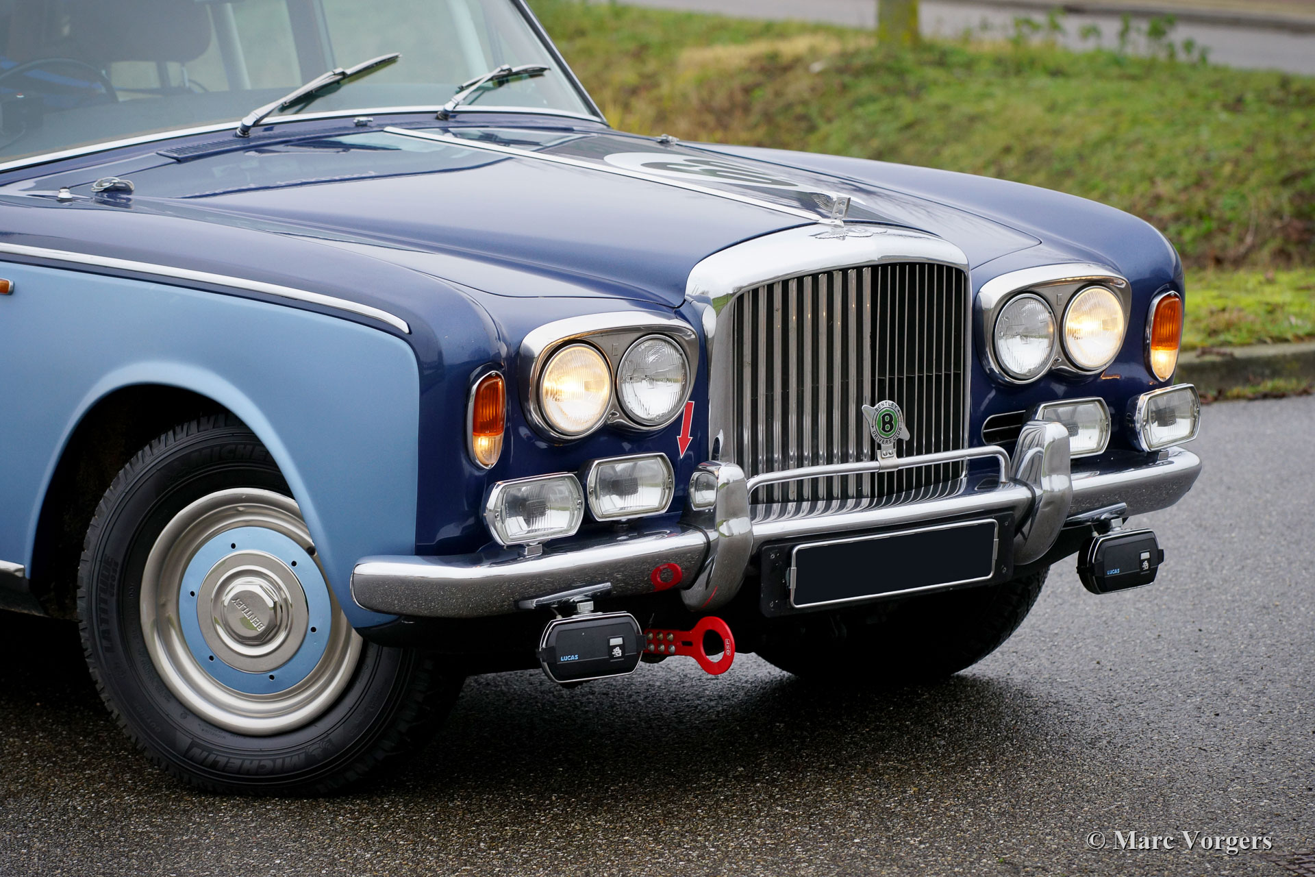 Bentley T1, jaar 1969. Kleur tweekleurig blauw gecombineerd met een cognacbruin lederen interieur en donkerblauw tapijt. Deze zeer indrukwekkende Bentley T1 is geprepareerd voor historische langeafstand (rally) evenementen en ritten. Het interieur werd opgewaardeerd met een volledige veiligheidskooi, speciale stoelen, vierpunt-veiligheidsgordels, een digitale Tripmeter en andere rallyaccessoires. Aan de buitenkant vindt u vier extra Lucas LR-8 vérstralers, twee Lucas FT-8 breed stralende mistlampen en sleepogen. De krachtige 6.2 liter V8-motor en de automatische versnellingsbak werden gereviseerd en de vering werd aangepast. Alle revisie- en preparatiewerkzaamheden zijn uitgevoerd in de jaren 2017 en 2018. Deze geweldige Bentley T1 is uitgerust met een Webasto vouw-/ schuifdak dat de maximale open rijbeleving biedt dat u in een sedan/ limousine kunt hebben. Deze Bentley rijdt, stuurt en remt zoals u mag verwachten van een zeer goed onderhouden Bentley T1. Deze indrukwekkende Bentley T1 verkeert van binnen en van buiten in zeer goede staat, de auto is ‘turn-key’ gereed voor elk avontuur in de handen van een nieuwe eigenaar.