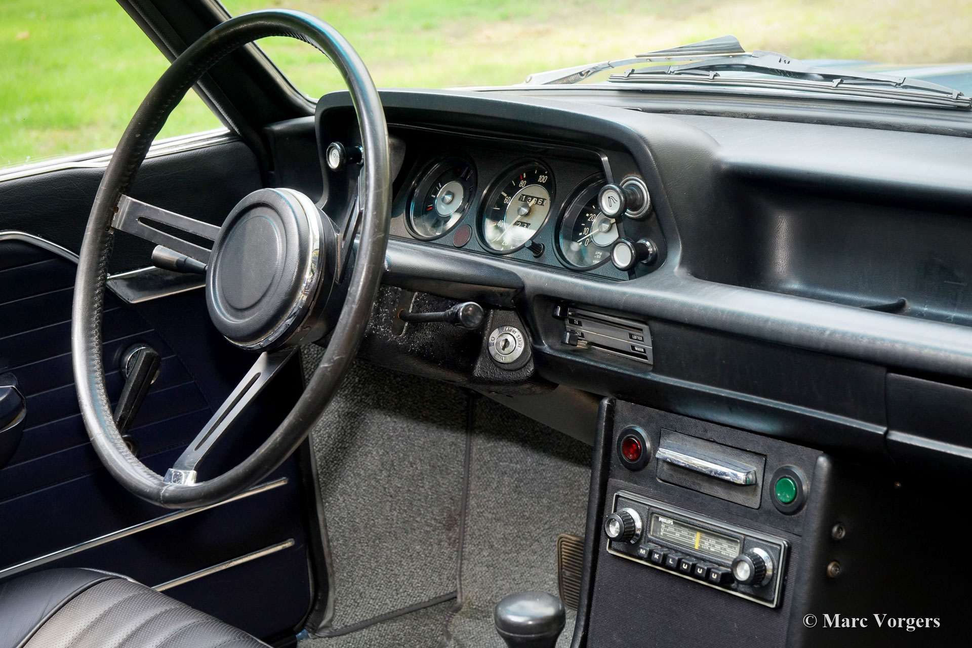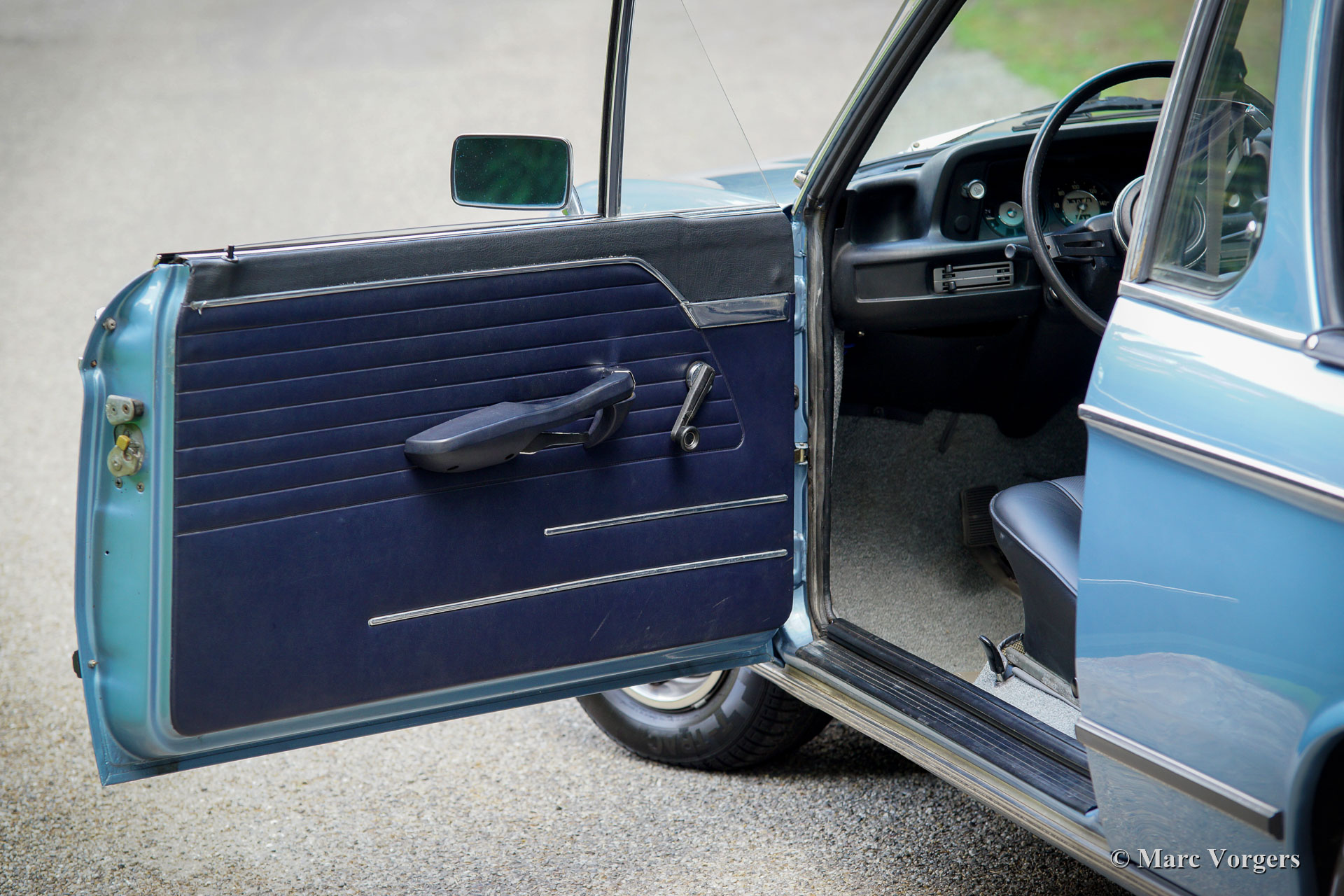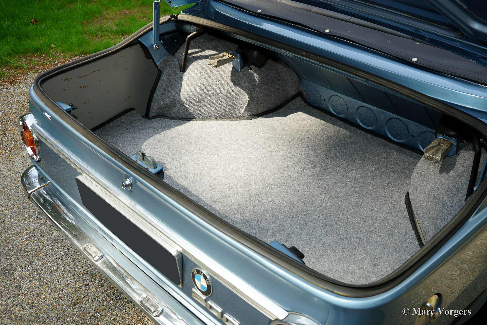 BMW 2002 BAUR (targa-convertible), jaar 1973. Kleur lichtblauw metallic. Zwartleren stoelen, donkerblauwe deurbekleding en lichtgrijs tapijt. Deze prachtige BMW 2002 (Model E10) BAUR targa-cabriolet is gerestaureerd in het jaar 2008, de carrosserie en het interieur zijn in topconditie gebracht. Een fotoreportage van de restauratie is aanwezig. De auto verkeert in excellente tot sublieme staat en de auto rijdt voortreffelijk! De motor loopt perfect, de versnellingsbak schakelt prachtig en de 'targa-convertible' top geeft een heerlijke open rijbeleving! Het targa-dakpaneel wordt opgeborgen in de ruime kofferbak. Bagage en koffers vinden veel ruimte onder het opgeborgen paneel. Deze BMW BAUR toont alle originele details en wordt geleverd met servicefacturen EN het BMW 'geboorte'-certificaat. De auto is voorzien van een Philips FM-radio uit de jaren 70. Een zeer fraai exemplaar!