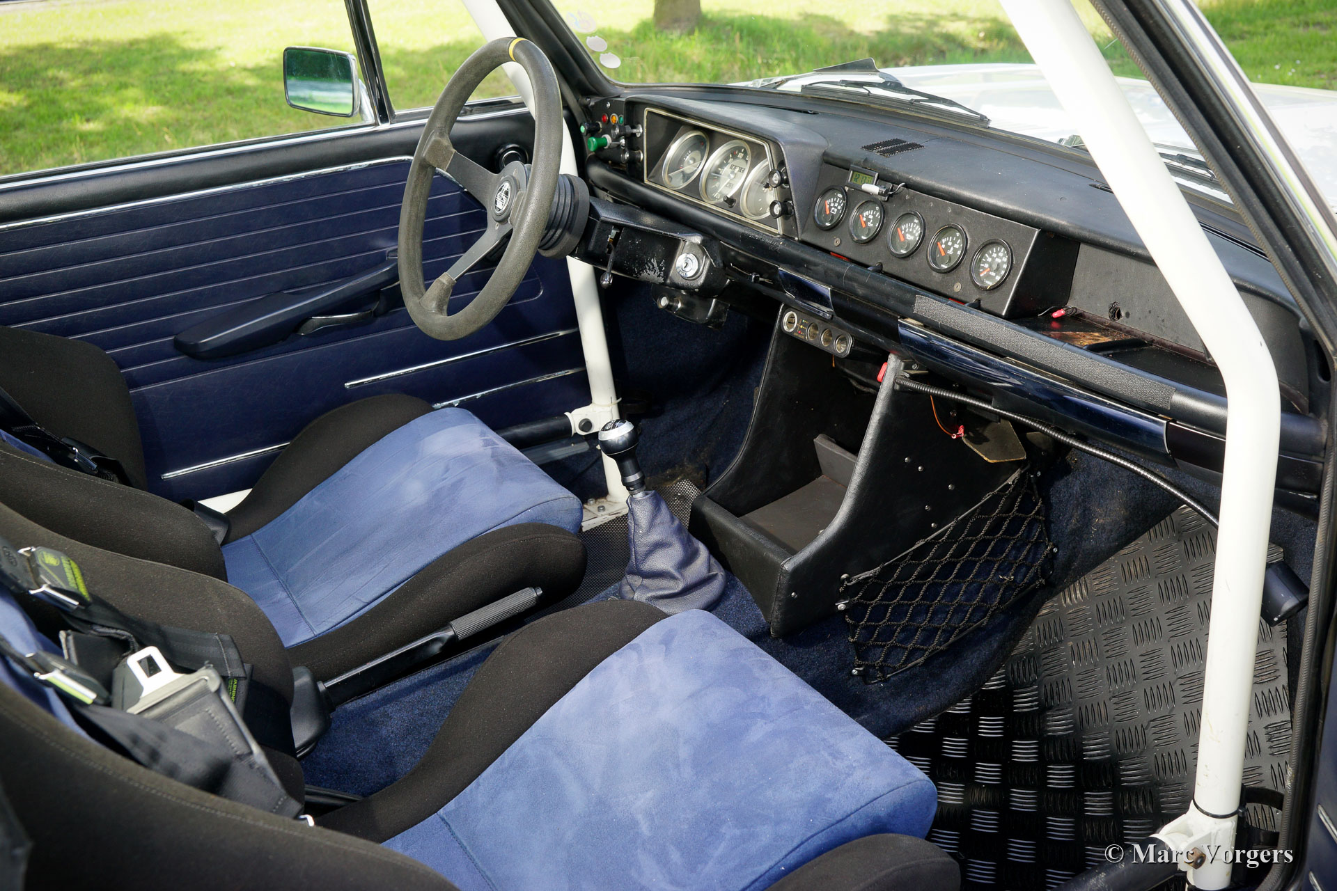 Rolkooi, versterkte veerpoten voor, dwarsversteviging over de veerpoten voor en achter, dikkere stabilisatorstang voor, gemodificeerd tussenschot in de kofferbak om twee reservewielen tussen de achterwielen te plaatsen, twee brandstoftanks, twee benzinepompen, twee grote benzinefilters, Intrax schokdempers rondom, schijfremmen met 4-zuiger remklauwen voor, sperdifferentieel, op maat gemaakte RVS uitlaat, carterbeschermplaat, hoge capaciteit radiator, extra lampen op de voorbumper, speciale sportstoelen met hoofdsteunen, 4-punts veiligheidsgordels, extra (betrouwbare) meters, elektrische koelventilator en een Rally tripmeter. De motor is ‘getuned’ en uitgerust met een ‘snellere’ Schrick-nokkenas, een ‘free flow’ uitlaatspruitstuk, twee dubbele carburateurs, stalen cilinderkopbouten en moeren en een van binnen gepolijst inlaatspruitstuk. De versnellingsbak is een 5-traps ‘dog-leg’ sportbak.