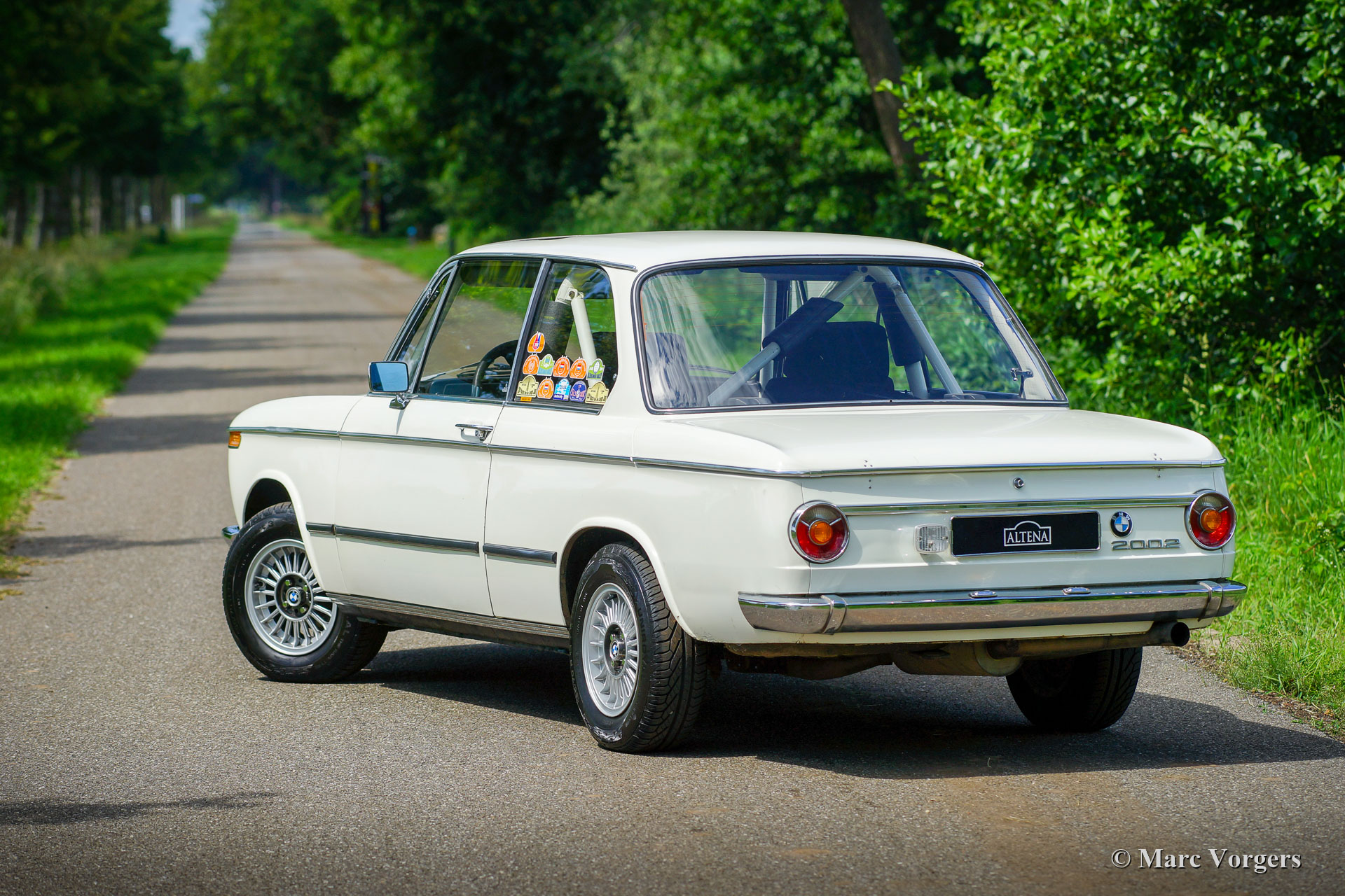 BMW 2002 (E10) rally auto, jaar 1969. Chassisnummer 164100X, motornummer 336008X. Kleur Chamonix wit gecombineerd met een donkerblauw/ zwart rally interieur. Deze fantastische BMW 2002 komt uit de eerste en meest gewilde E10-serie met de slanke chromen bumpers, de tuitvormige dashboardknoppen en de ronde lampen aan de voor- en achterkant. Deze BMW 2002 is voorzien van een fabriek origineel schuifdak! Deze BMW 2002 is uitvoerig geprepareerd voor competitieve en zware historische rallyomstandigheden. De auto heeft deelgenomen aan vele rally's zoals te zien is aan de trofee-stickers op de achterste zijruit! De auto is na elke rally uitvoerig nagezien en onderhouden. Deze BMW 2002 verkeert in zeer goede conditie en de carrosserie is zeer gaaf!