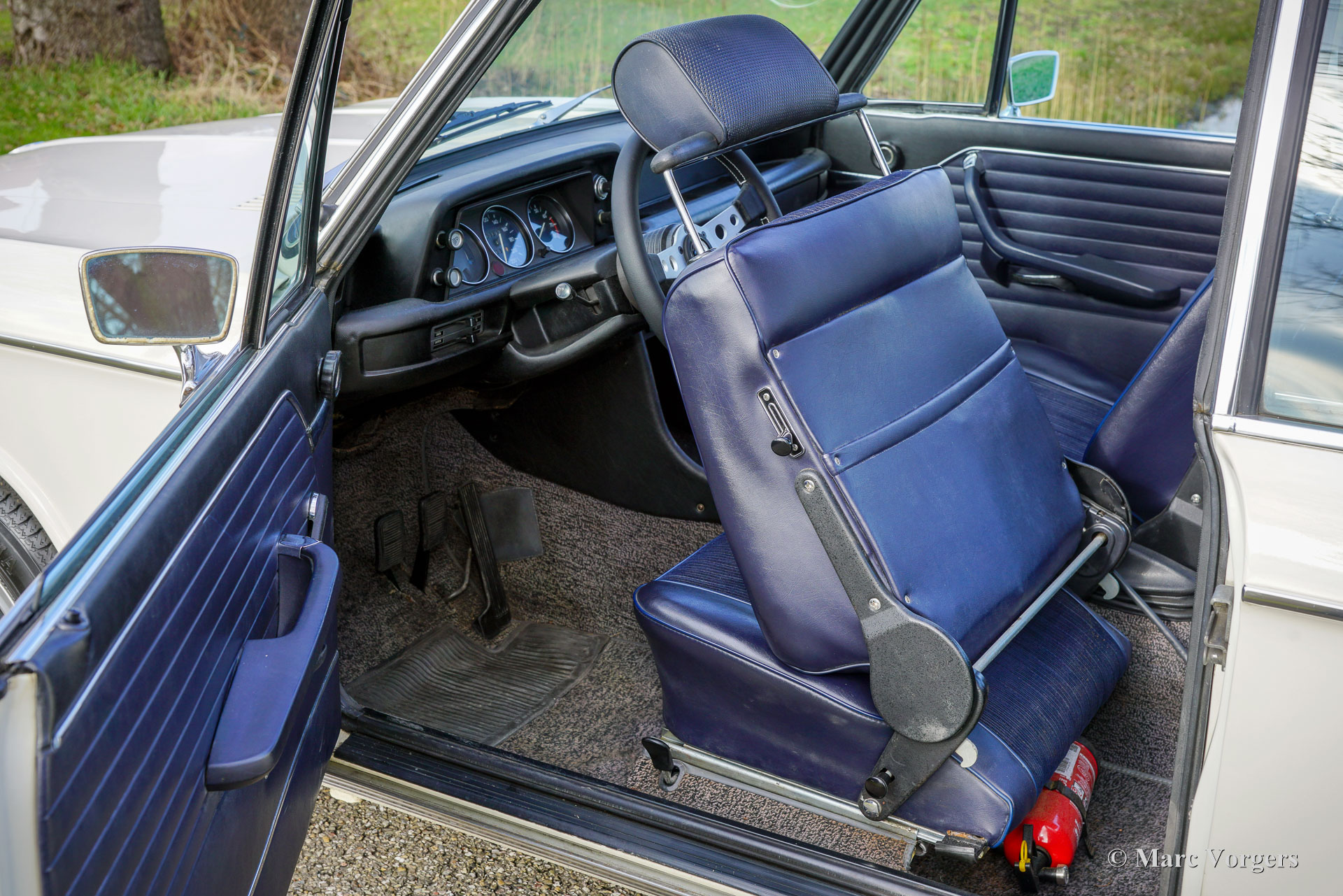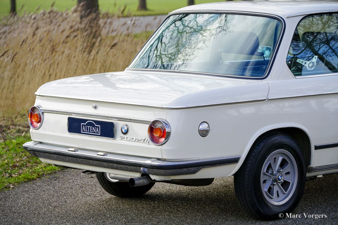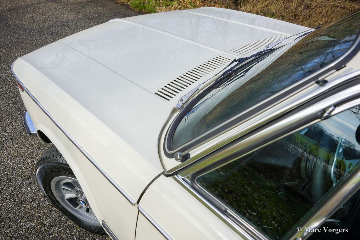 BMW 2002 Tii, 1973. Chassisnummer 2718830, motornummer 2718830. Deze auto heeft ‘matching numbers’ en matching kleuren en is uitzonderlijk origineel! De auto is uitgevoerd in de originele kleur ‘Chamonix Weiss’, gecombineerd met een blauw/grijs interieur met stoelen bekleed met stof en kunstleer en grijs tapijt op de vloer. Dit is een zeer gewild origineel BMW E10 2002 TII-model uit het overgangsjaar 1973, met de ronde achterlichten! In Engelstalige landen wordt deze versie ‘roundie’ genoemd. De 2002 Tii staat qua begeerlijkheid (en binnen het BMW-modellengamma) direct onder de 2002 Turbo. Dit prachtige exemplaar werd nieuw verkocht in Italië door BMW-dealer Mariani Motors in Monza. Alle originele fabriek stickers en de Mariani-dealersticker op de achterruit zijn aanwezig, evenals de originele boekjes! Deze BMW 2002 Tii verkeert in een unieke, zeer goede, roestvrije en super originele conditie! De carrosserie is zo'n 20 jaar geleden buitenom opnieuw gespoten in de originele kleur. Binnenin de motoruimte, motorkap, binnen de portieren en in de kofferbak, is de originele lak nog aanwezig! Het is nauwelijks te zien dat de auto opnieuw gespoten is, een vakkundig uitgevoerde klus! Een bijzonder kenmerk is de aanwezigheid van een exclusieve fabrieksoptie: een perfect functionerend elektrisch schuifdak! Een uniek kenmerk van de BMW 2002 Tii is het Kugelfisher benzine injectiesysteem dat uitstekend functioneert en de 2,0-liter viercilindermotor krachtig laat presteren. Dit vermogen wordt, geheel in BMW-traditie, via een handgeschakelde vijfversnellingsbak naar de achterwielen overgebracht. De Italiaanse oorsprong van deze BMW 2002 is duidelijk te zien aan de prachtige 13-inch MOMO ‘Cloverleaf’ lichtmetalen wielen (inclusief reservewiel), die in Italië alleen als dealeroptie verkrijgbaar waren. Bovendien is deze prachtige BMW 2002 Tii voorzien van de originele hoofdsteunen en wordt de auto geleverd met het originele gereedschap en de bijbehorende boekjes. De eigenaar heeft een MOMO-sportstuur gemonteerd; het originele stuurwiel wordt meegeleverd. Als kers op de taart heeft de auto in 2024 een grote onderhoudsbeurt gehad, waarbij alles voor € 9.500 ‘up to date’ is gebracht. De factuur met een gedetailleerde beschrijving van de uitgevoerde werkzaamheden is bijgevoegd: revisie van de Kugelfisher injectie, revisie van het koelsysteem inclusief radiateur (en vervanging van slangen, thermostaat en waterpomp), revisie van het remsysteem, nieuwe uitlaat, nieuwe ontsteking, enzovoort. Dit zeldzame, originele exemplaar is een ‘heilige graal’ voor de BMW E10 2002 liefhebber/verzamelaar. Deze super originele auto kan wereldwijd worden geïmporteerd en geregistreerd.