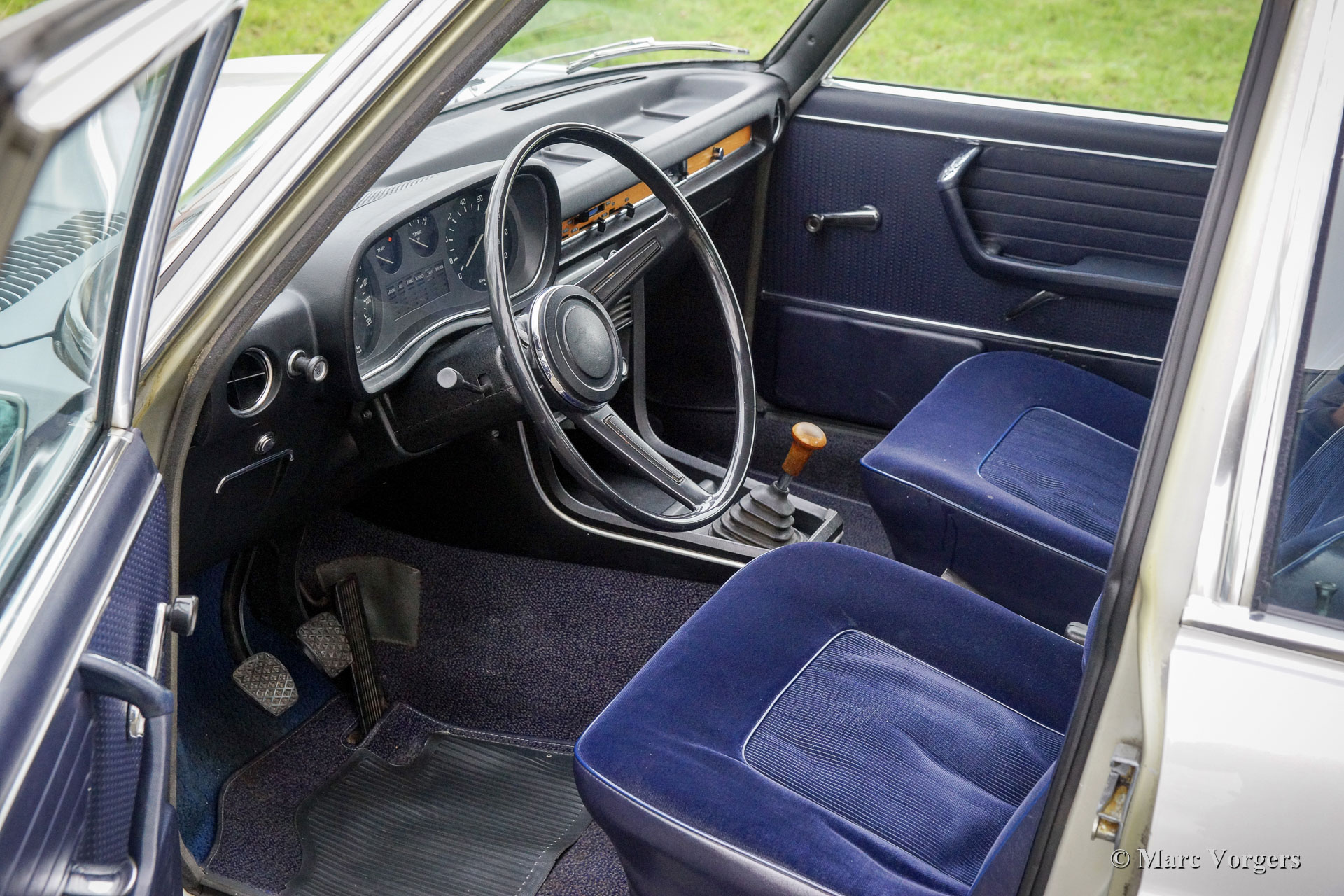 BMW 2500 (E3), jaar 1972. Kleur Polaris zilver metallic gecombineerd met een donkerblauw velours/ vinyl interieur met blauw tapijt. Deze prachtige BMW 2500 uit de E3-modelserie is nieuw verkocht in Italië. De automobiel is in 2012 door een oldtimerliefhebber naar Nederland geïmporteerd. Vanaf nieuw heeft de auto slechts 128.000 kilometer gereden. In het verleden is de auto voorzien van nieuwe lak in de originele kleur, het lakwerk is perfect gedaan. De auto verkeert in een super originele, zeer goede en roestvrije conditie; alle originele details zijn aanwezig! De carrosserie heeft een volledige anticorrosiebehandeling gekregen bij een specialist. De carrosserie vertoont een uitstekende passing van de plaatwerkdelen en slechts lichte sporen van leeftijd en gebruik aan een aantal chroomdelen. Het originele interieur vertoont lichte tot normale sporen van gebruik maar is nog in een goede en mooie staat, dit inclusief de hemelbekleding! In de middenconsole vindt u de fabriek originele Blaupunkt Frankfurt autoradio uit 1971/72. De 2500 cc zescilinder motor loopt prachtig, de handgeschakelde versnellingsbak schakelt perfect, de besturing is spelingvrij en nauwkeurig en de bekrachtigde remmen zijn zeer effectief! De auto is uitgerust met de originele lichtmetalen velgen met Dunlop 195/70 banden. Dit is een zeer originele BMW E3 2500 ‘shark nose’ in een zeer goede staat. Aangeboden aan een BMW-liefhebber voor een realistische prijs.