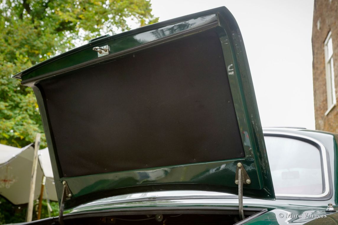 Bristol 411, bouwjaar 1970. Chassisnummer 411 7530, motornummer D383 232620. Carrosseriekleur Dark British Racing Green gecombineerd met een roodlederen interieur afgewerkt met rood wollen tapijt. Deze superzeldzame Bristol 411 werd in 2022 door de huidige eigenaar in het Verenigd Koninkrijk gekocht. Vervolgens werd de auto gerestaureerd en waar nodig gereviseerd, omgebouwd naar een links gestuurde besturing en up-to-date gebracht door Bridge Classic Cars & Restorations in Woodbridge, VK. De werkzaamheden werden uitgevoerd in de periode van maart tot en met oktober 2022. De ombouw van rechts gestuurd naar links gestuurd omvatte het uitbouwen van de motor, nieuwe bedrading, nieuwe bevestigingsbeugels voor de besturing, een nieuw stuurhuis, een nieuwe stuurbekrachtigingspomp, een complete links gestuurde make-over van het dashboard, de pedalenbak, het schutbord, de vloerbedekking, enzovoort. Delen van het chassis, de accubak en de vloer werden gerepareerd/gerestaureerd en opnieuw gespoten/gecoat. De motor werd volledig nagekeken, de remmen werden gereviseerd, het koelsysteem en de slangen werden vernieuwd en er werden Europese koplampen gemonteerd. Het totale investeringsbedrag bedroeg 30.000 pond (€ 35.000). Op 16 mei 2023 werd deze exclusieve Bristol 411 in Nederland geregistreerd. Als vliegtuigbouwer begon Bristol vlak na de Tweede Wereldoorlog met de productie van auto's. Het eerste model, de 400, werd in 1946 gepresenteerd. Bristol verkocht alleen aan een zeer selecte klantenkring. Exclusiviteit was eigenlijk altijd Bristols handelsmerk: ze produceerden nooit auto's in grote aantallen, maar gaven de voorkeur aan vakmanschap en individualiteit boven volume. De Bristol 411 werd geproduceerd tussen 1969 en 1976, en er werden slechts 287 exemplaren gebouwd in vijf series. Die extreem beperkte productie is een deel van wat de 411 vandaag de dag zo begeerlijk maakt. De auto werd met de hand gebouwd in een beperkte oplage, was luxueus en uitgerust met een grote Chrysler V8-motor. Dit exemplaar is voorzien van de Chrysler B-serie 6,3-liter V8 met een vermogen van 340 pk en een maximumkoppel van 576 Nm! Het vermogen wordt via een Chrysler Torqueflite 3-traps automatische transmissie naar de achterwielen overgebracht, wat zorgde voor een acceleratie van 0 naar 100 km/u in slechts 7 seconden en een topsnelheid van 230 km/u! Deze klassieke ‘supercar’ verkeert in een zeer goede staat en de auto rijdt zeer goed. Deze Bristol 411 kan worden gebruikt tijdens merk-/klassiekerclubdagen en -uitjes, weekendtrips en als een uniek stuk Brits erfgoed in een autocollectie. Deze auto is alleen op afspraak beschikbaar voor bezichtiging en een testrit.