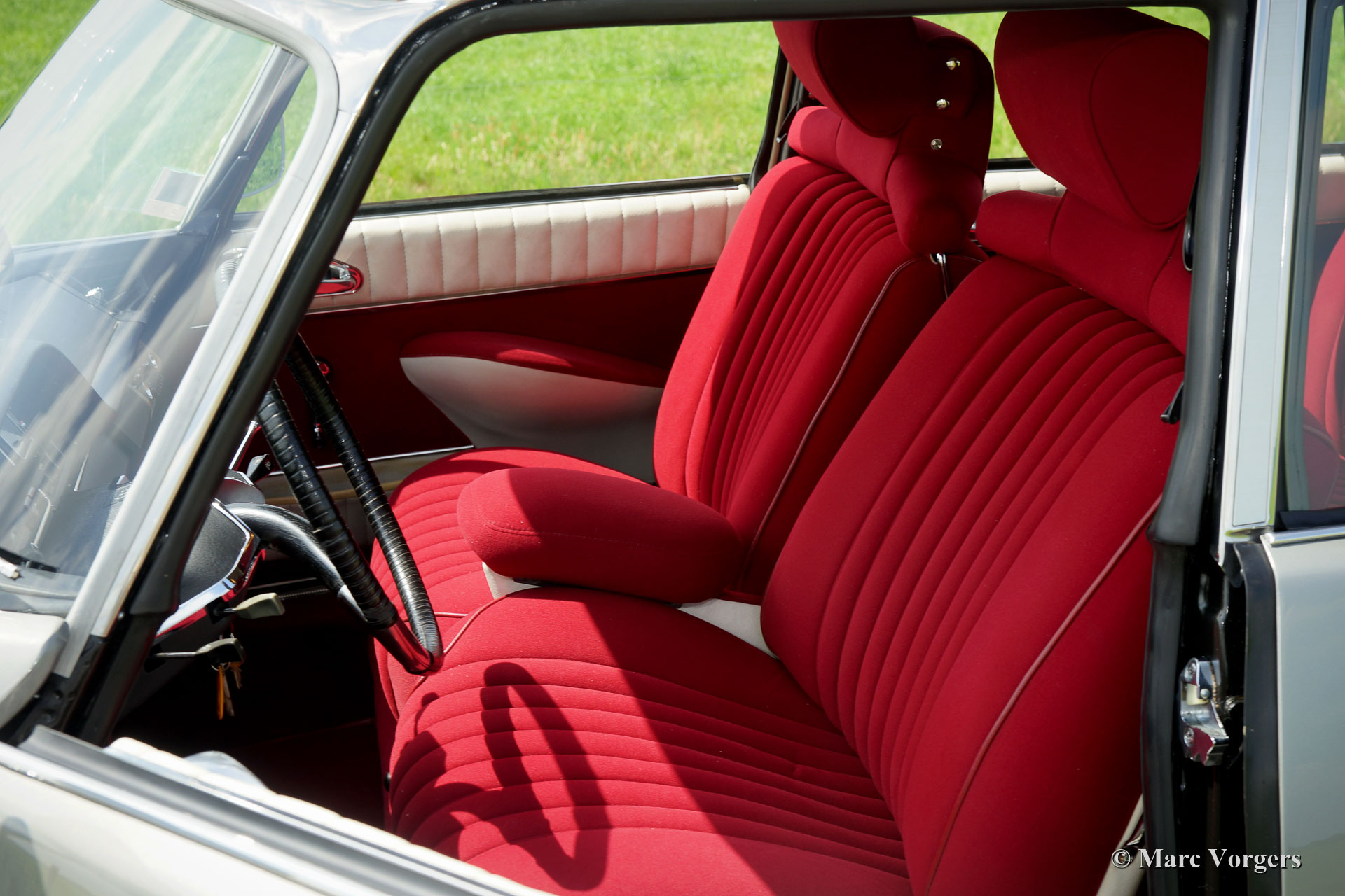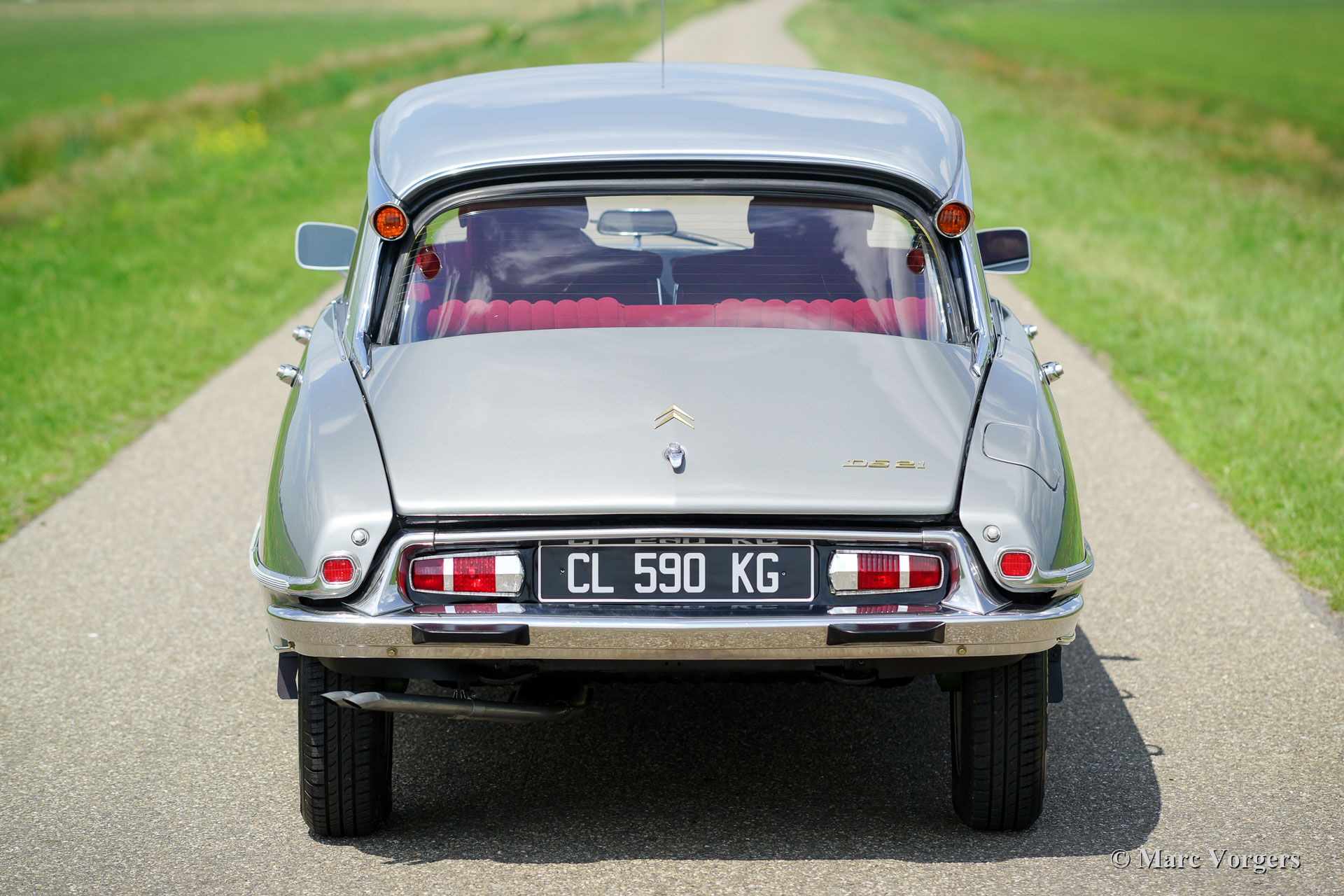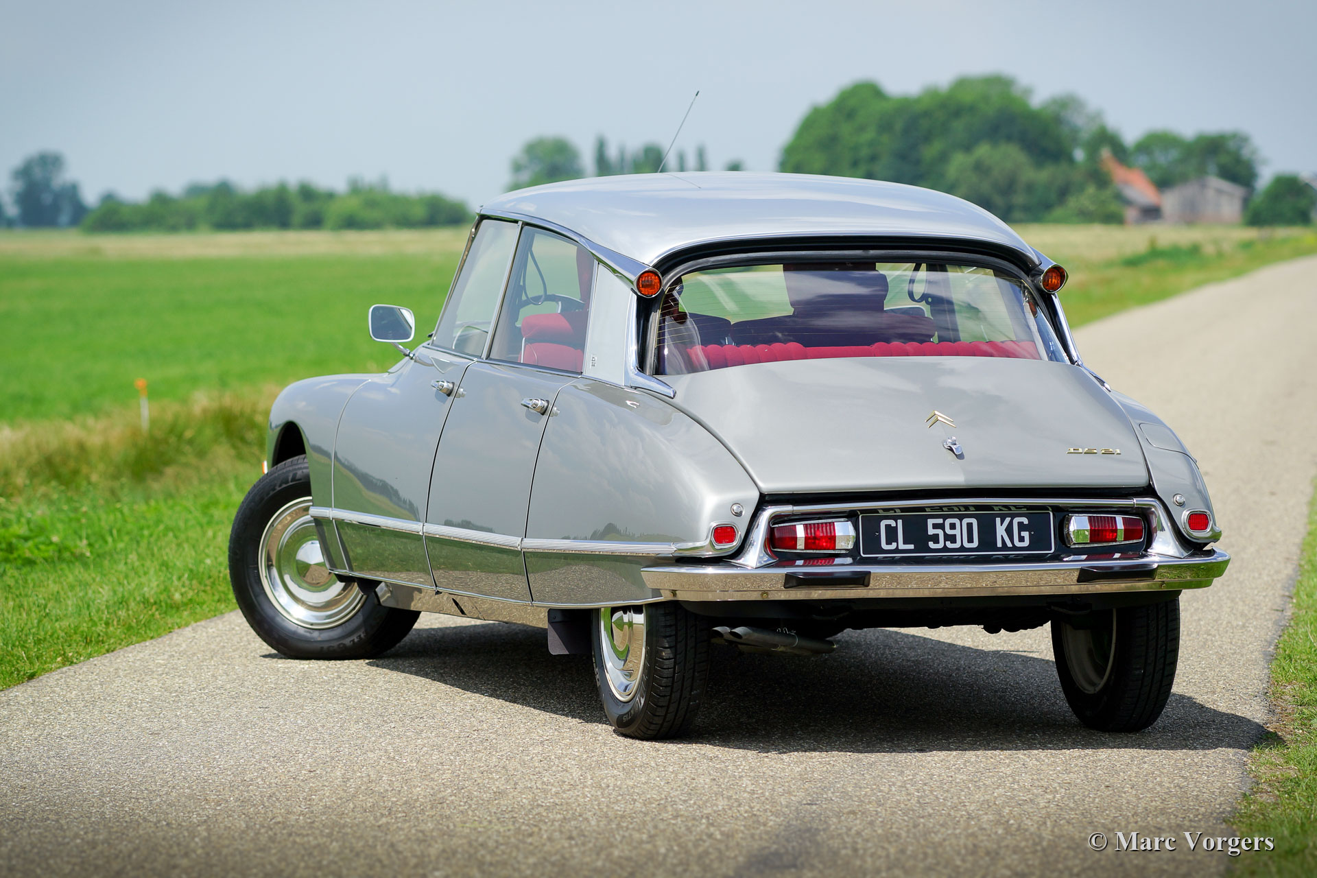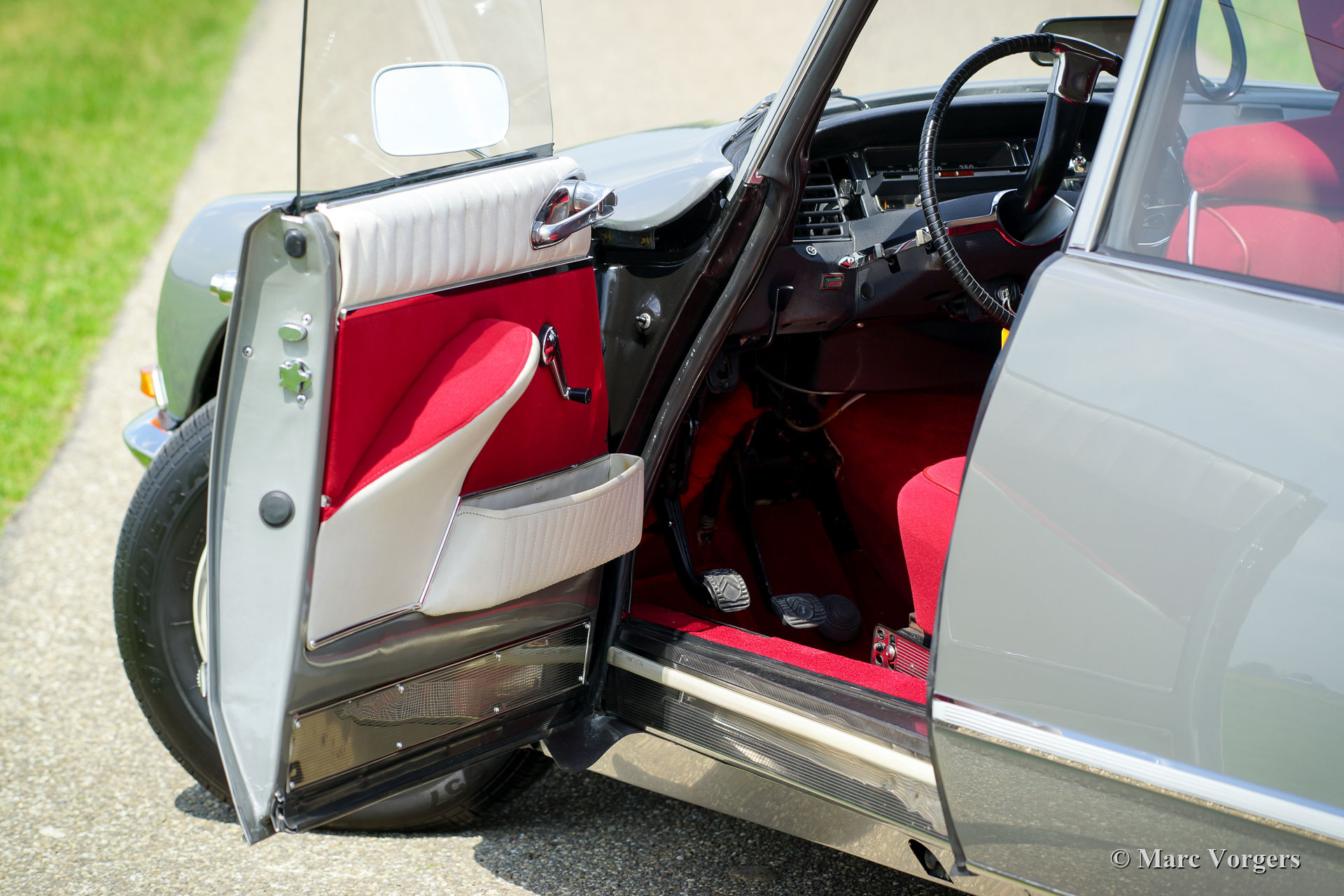 Citroën DS 21 M Pallas, jaar 1969. Kleur 'Gris Palladium' met een zilver metallic dak. Rood stoffen interieur met witte details. Deze fantastische Citroën DS 21 Pallas is een van de meest gewilde DS-modellen, de auto heeft de laatste ‘snoek’-voorkant, gecombineerd met het interieur en dashboard in oude stijl. Deze DS 21 Pallas is een 'M-Mechanique'-model uitgerust met een handgeschakelde vijf-versnellingsbak. Deze prachtige Citroën DS 21 M Pallas verkeert in sublieme topstaat, concours! De auto werd volledig gerestaureerd door een Franse DS-specialist, de restauratie werd uitgevoerd met oog op perfectie, alle originele details zijn aanwezig. Een uitgebreide fotoreportage van de restauratie is aanwezig. De carrosserie toont een perfecte passing van de plaatwerkdelen, lakwerk strak als glas, prachtige chroom en een interieur in onberispelijke staat! Ook de onderkant van de auto is prachtig gedetailleerd. Deze DS Pallas is voorzien van een klassieke autoradio. Deze Citroën DS 21 Pallas is een zeldzame vondst in absolute topconditie. De auto rijdt perfect; letterlijk als een 'vliegend tapijt'! De auto is momenteel geregistreerd in Frankrijk. Alle documenten zijn aanwezig voor wereldwijde export. Dit is uw kans om in het bezit te komen van een perfecte Citroën DS 21 M Pallas uit 1969!