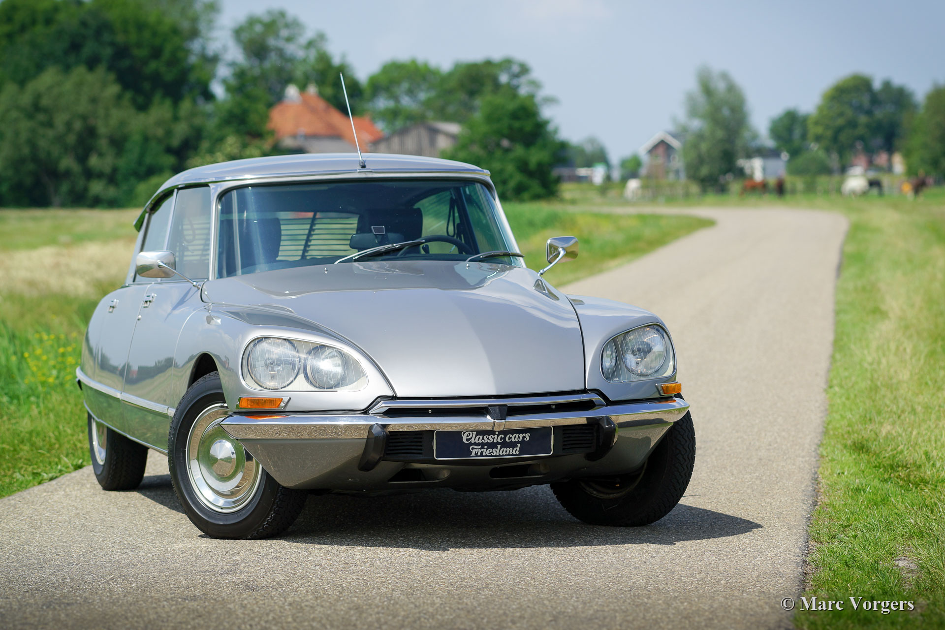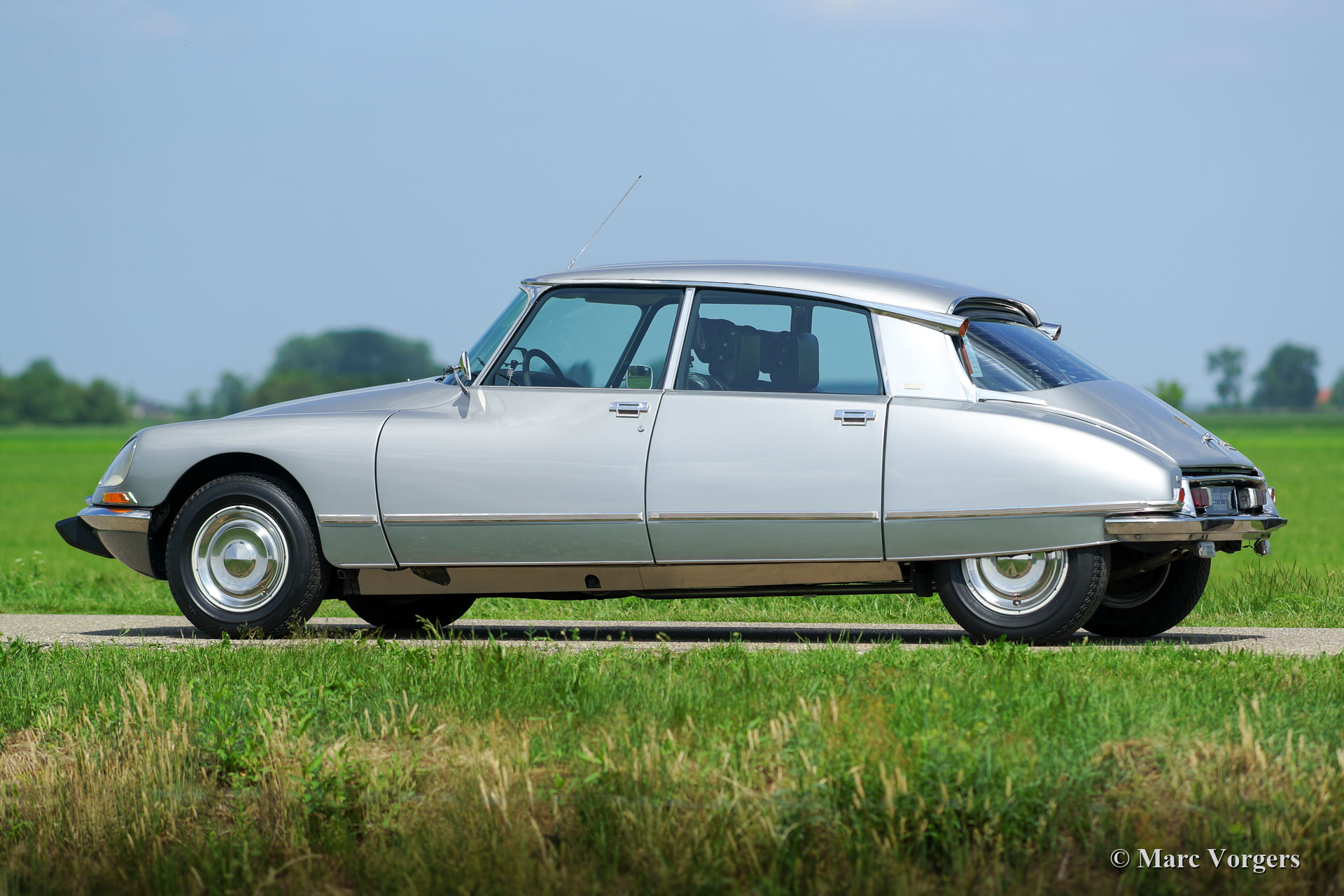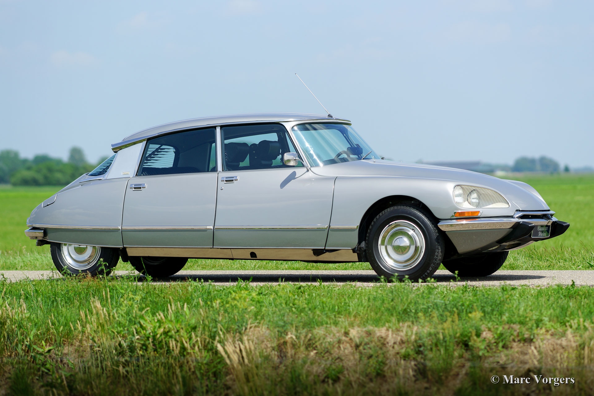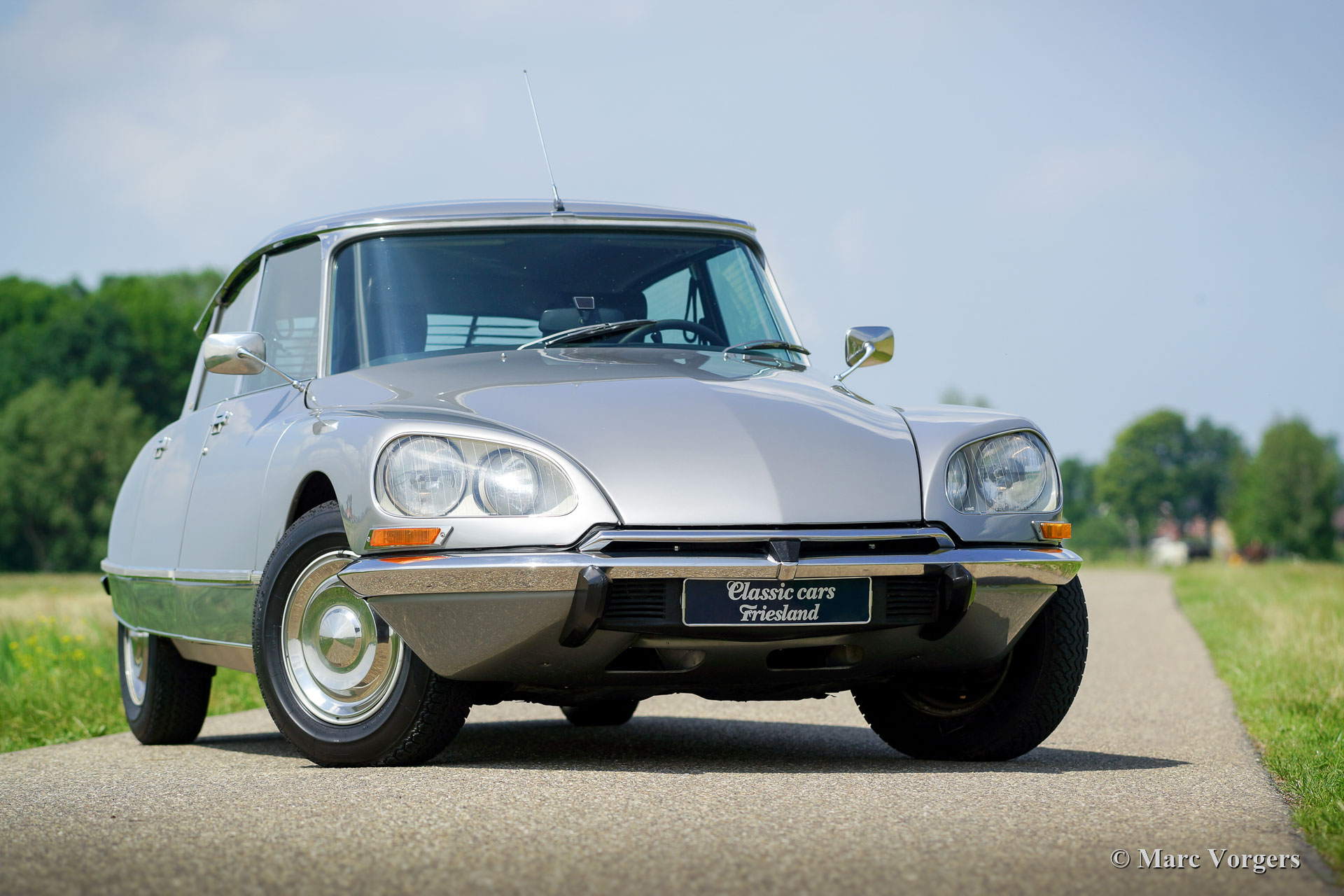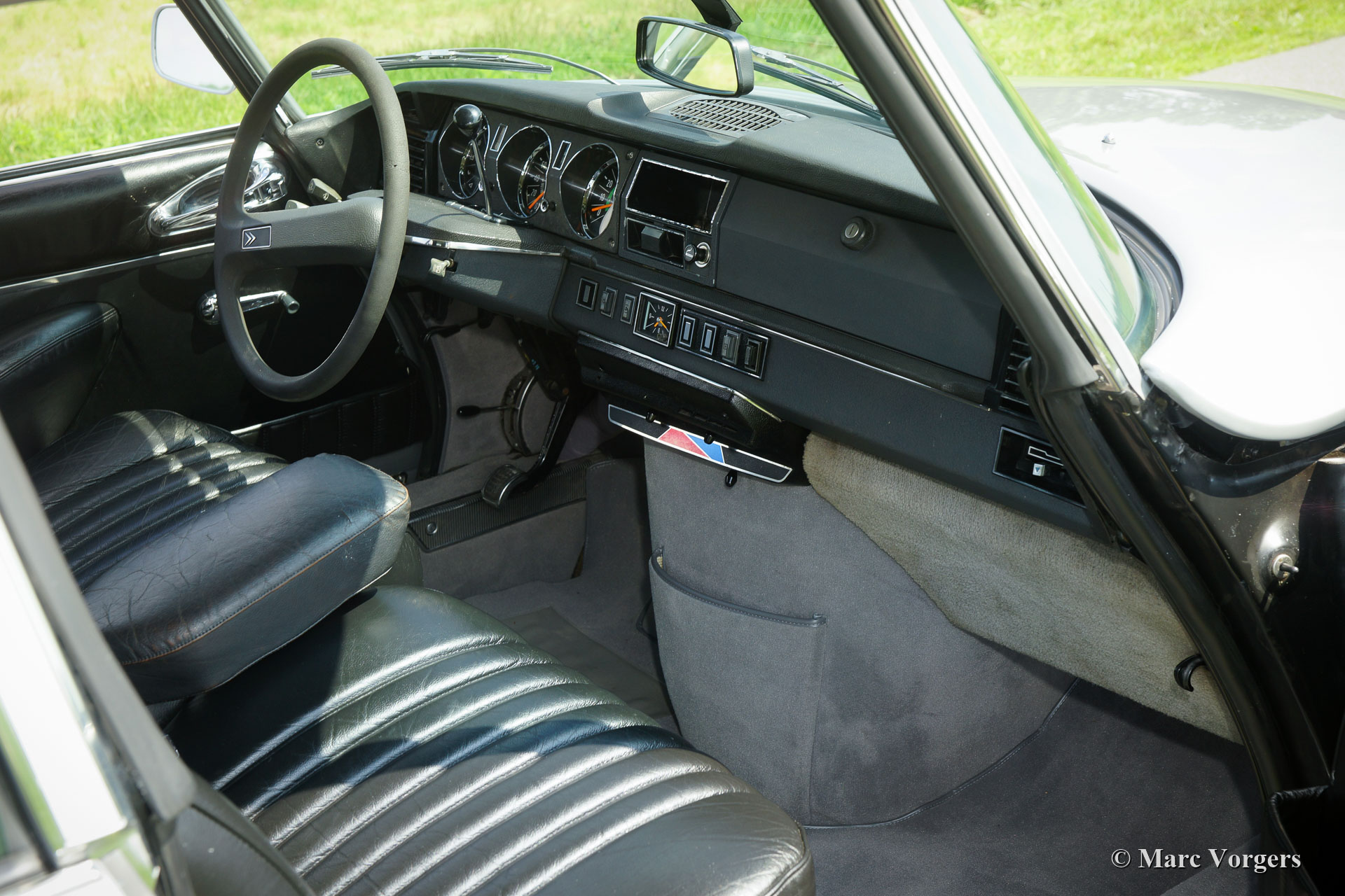 Citroën DS 23 H Pallas 'Injection Electronique', jaar 1973. Kleur Gris Noir (AC 095) gecombineerd met een zwartleren interieur. Deze prachtige Citroën DS 23 H Pallas is het topmodel in de Citroën DS-modellijn; een DS Pallas voorzien van de krachtigste motor met brandstofinjectie. Dit laatste model heeft de indrukwekkende 'haaienneus' met meesturende vérstralers, het modernere dashboard en het laatste model deurgrepen. De aanduiding 'H' staat voor 'Hydraulique'; de wielophanging, remmen EN de versnellingsbak worden hydraulisch bediend. De 'H' versnellingsbak is een semiautomatische eenheid met 4 versnellingen, je kunt versnellingen selecteren zonder een koppeling te hoeven bedienen. De auto is de afgelopen jaren uitgebreid gerestaureerd en in 2016 is de motor gereviseerd. Deze zeer fijne DS 23 Pallas verkeert in sublieme topstaat! De auto is uitgerust met Pallas luxe zoals hoofdsteunen, armsteunen, speciale vloerbedekking, supercomfortabele leren stoelen, groen getint glas en een Gradulux zonnescherm bij de achterruit. De auto rijdt perfect en uiterst comfortabel; letterlijk als een ‘vliegend tapijt’! De 140 pk sterke motor kan de DS 23 Pallas naar een topsnelheid van 188 km/u brengen. Dit is een moeilijk te vinden DS 23 H Pallas 'Injection Electronique' in sublieme topstaat!