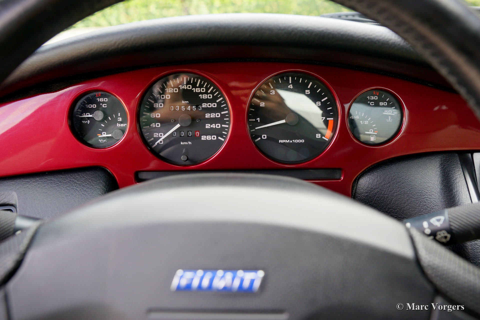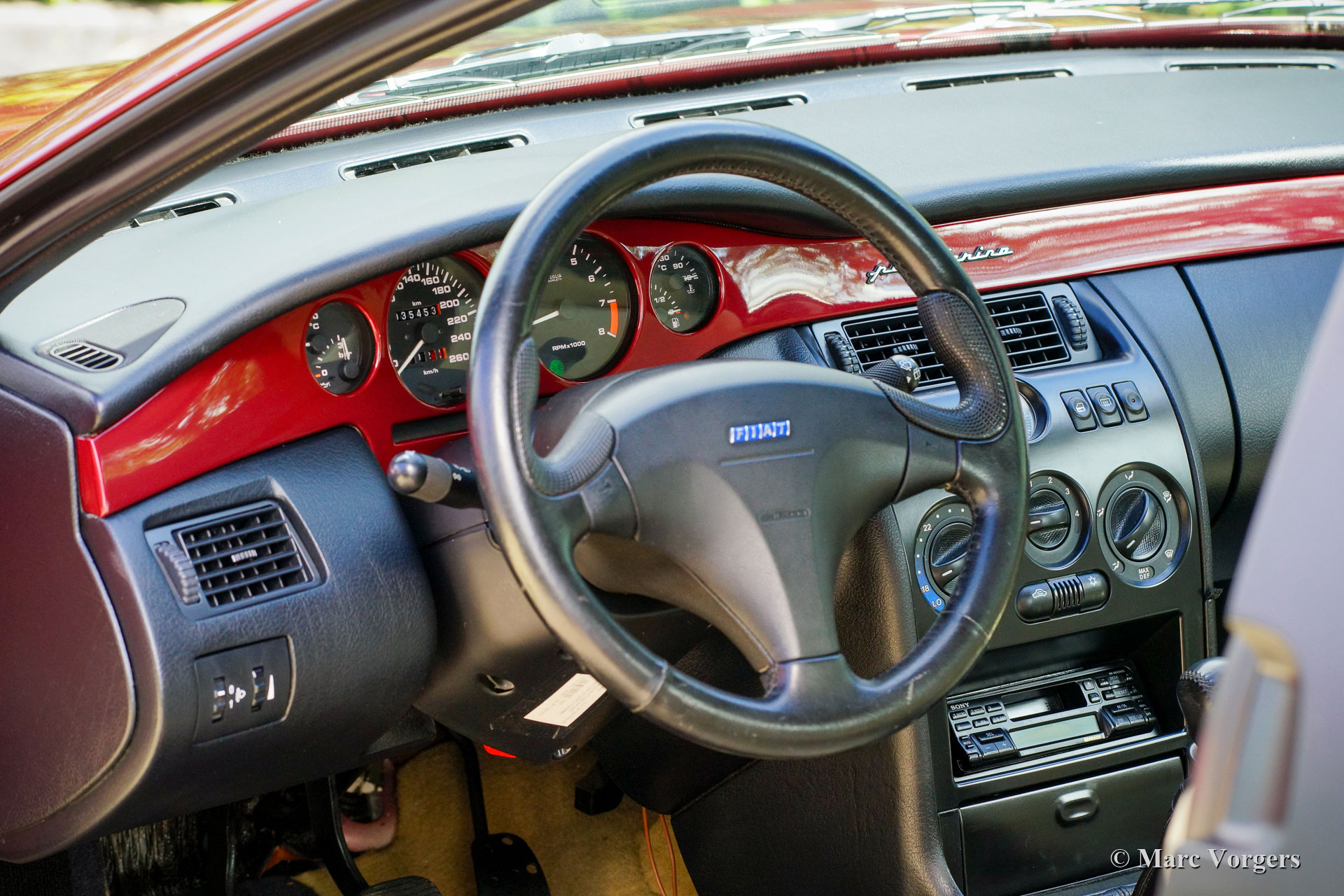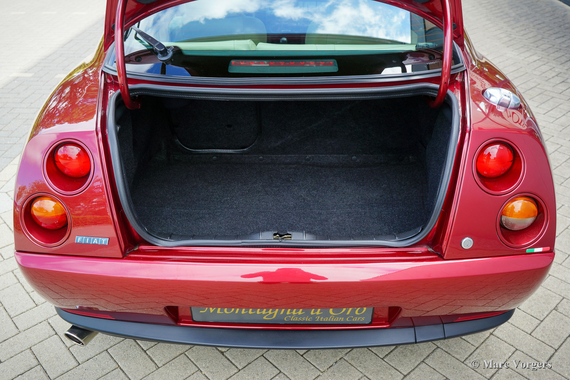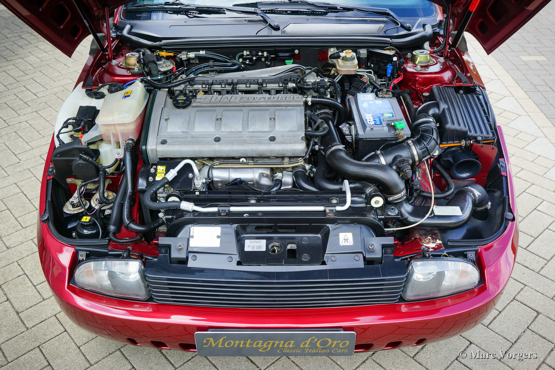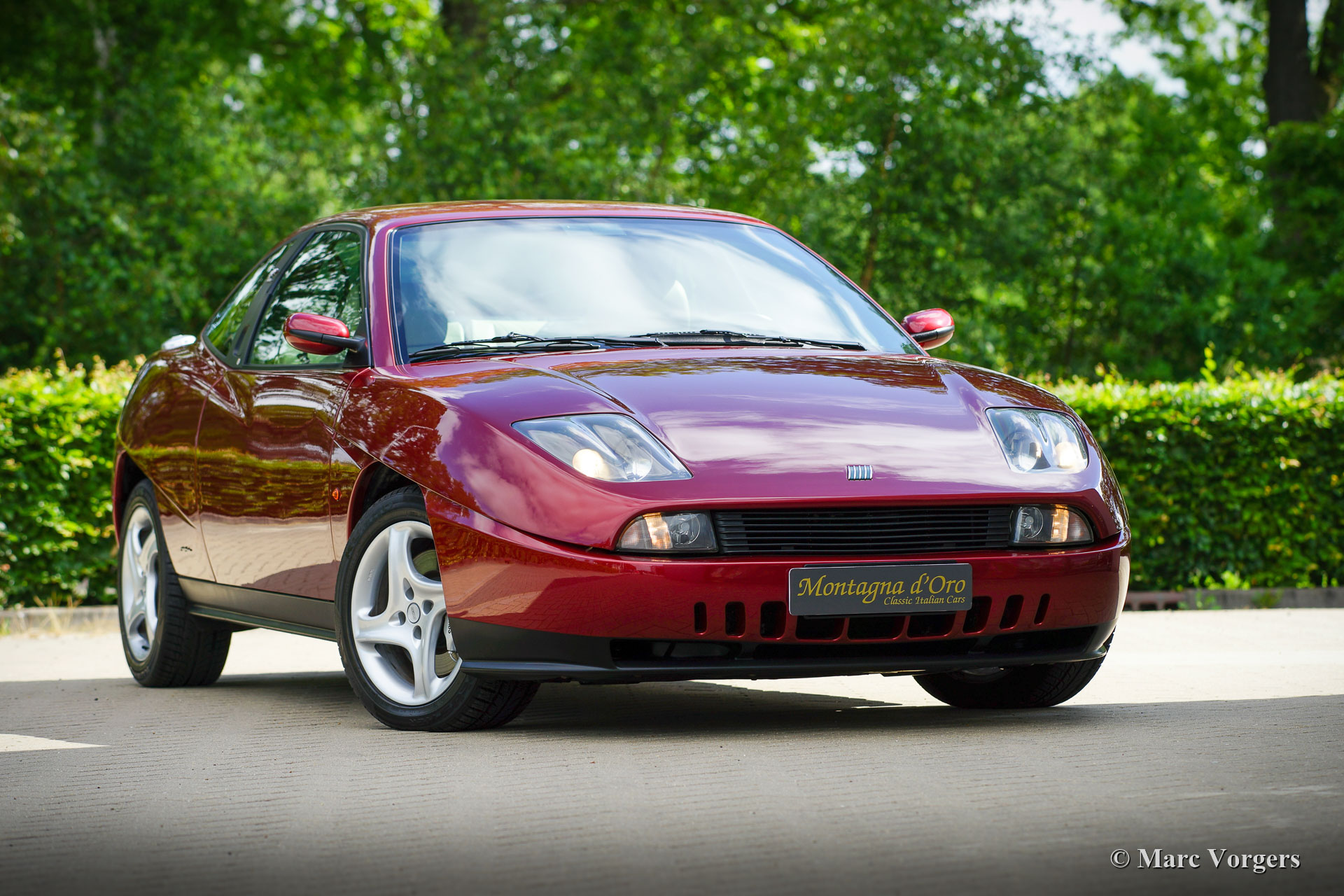 Coupé Fiat 2.0 20V Turbo, jaar 1997 (28-3-1997). Kleur donkerrood metallic gecombineerd met een beige lederen interieur, beige tapijt en zwarte beschermmatten. Deze prachtige Coupé Fiat 20V Turbo werd nieuw verkocht in Italië. Onze Italiaanse contactpersoon heeft deze schoonheid gekocht van de 1e eigenaar, dhr. Compasso uit Frattomaggione. Deze prachtige Coupé Fiat heeft vanaf nieuw slechts 38.792 kilometer gereden! Bij 35.342 km heeft de auto een onderhoudsbeurt gehad bij een Italiaanse Fiat dealer en is de distributieriem vernieuwd. In december 2021, bij 35794 km, is de auto in Nederland naar technische en optische topstaat gebracht: er werd ruim € 8000,- geïnvesteerd om perfectie te bereiken. De service-intervallen zijn vastgelegd in het serviceboekje en facturen zijn aanwezig. Deze Coupé Fiat 2.0 20V Turbo verkeert in een schitterende conditie; als nieuw! U zult slechts minieme gebruikssporen vinden en de auto rijdt, voelt en stuurt perfect. De auto wordt compleet geleverd met alle originele boekjes en drie originele sleutels. Het zal moeilijk zijn om een mooier en beter exemplaar te vinden van deze begeerlijke Italiaanse sportwagen.