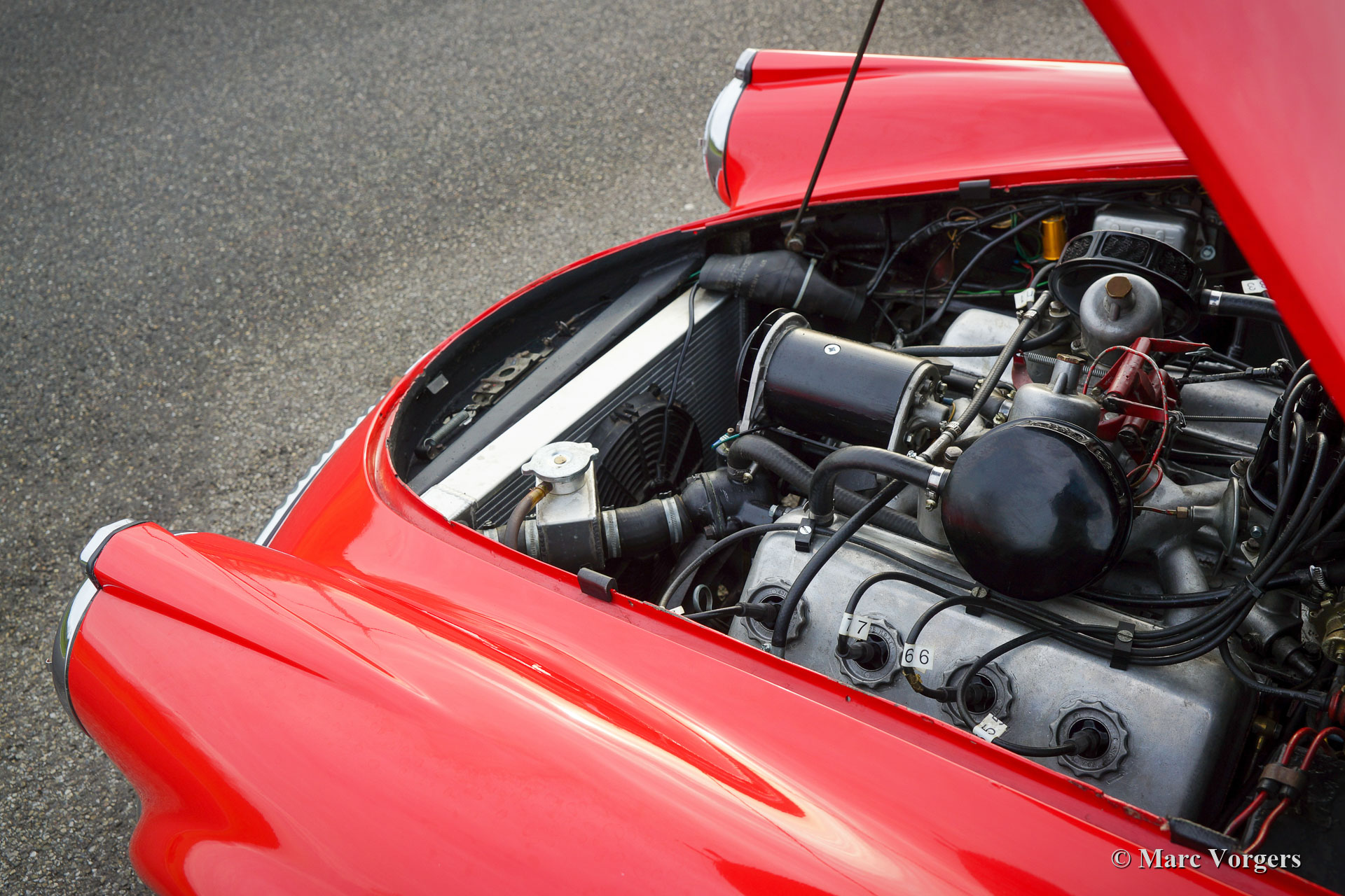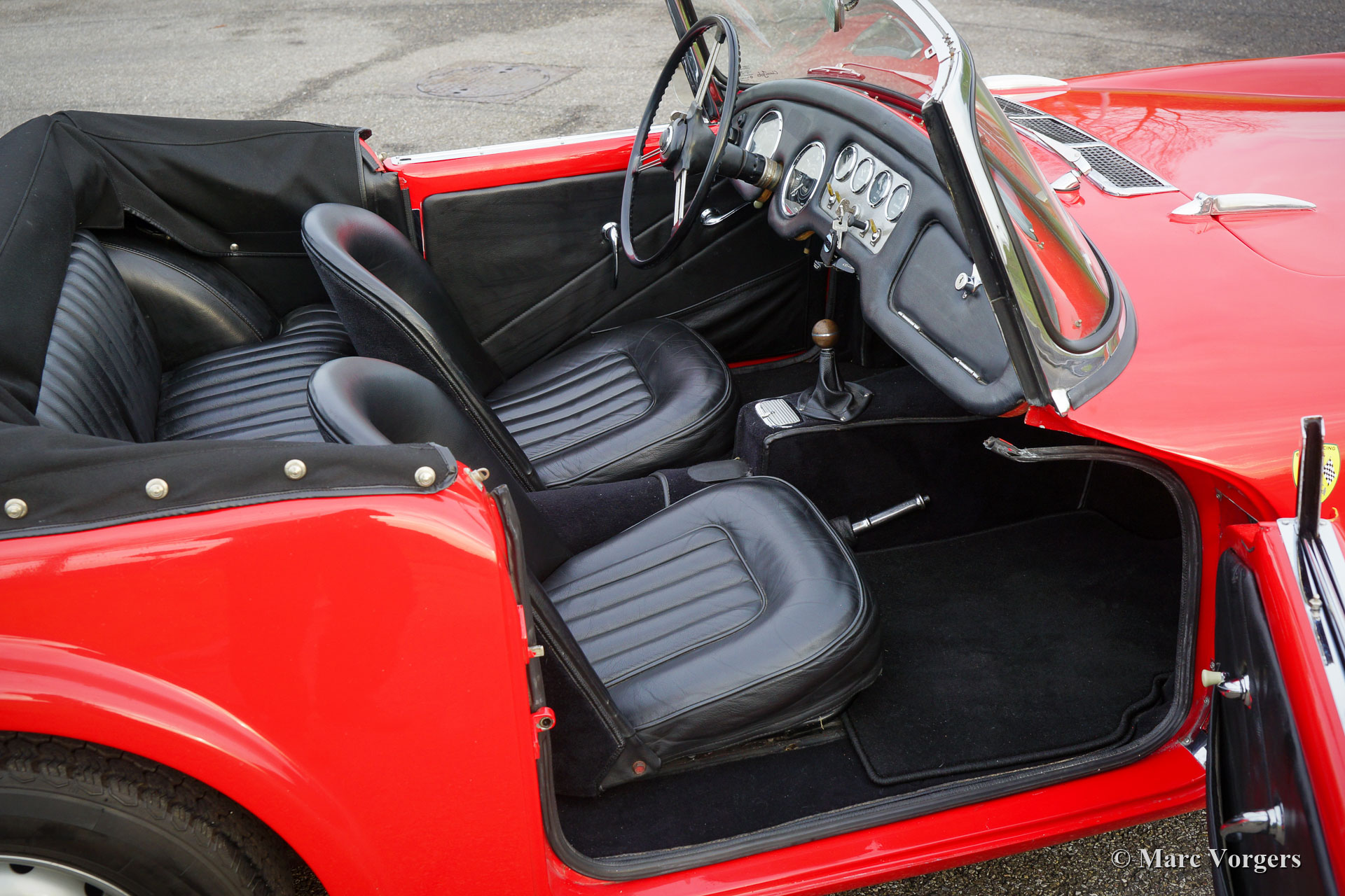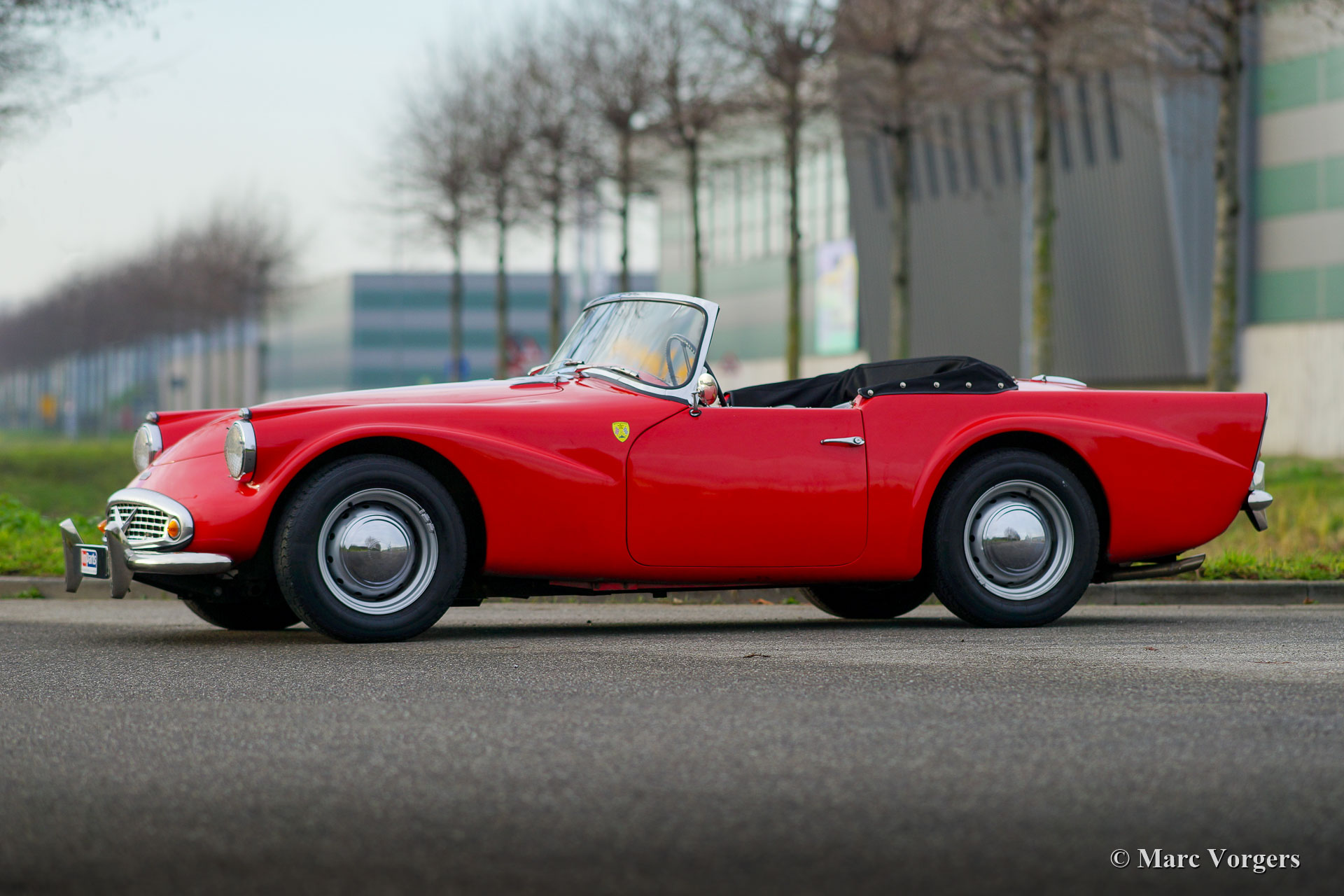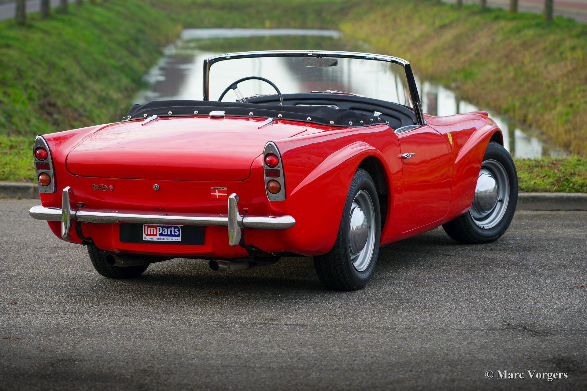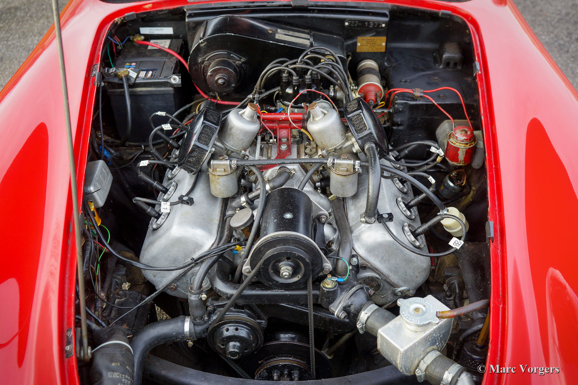 Daimler SP 250 ‘Dart’, jaar 1962. Kleur rood gecombineerd met een zwartlederen interieur en zwart tapijt. De Daimler SP250 ‘Dart’ is een zeldzame auto, er zijn slechts 2645 exemplaren van dit type gebouwd. Dit is een nog zeldzamer exemplaar met het stuur links. De Daimler SP250 is gebouwd met een glasvezelversterkte polyester carrosserie op een stalen chassis. De automobiel verkeert in goede staat en de auto rijdt, klinkt, schakelt en remt uitstekend. De V8 Daimler-motor klinkt erg inspirerend en levert 142 pk die via een handgeschakelde 4-versnellingsbak op de achterwielen wordt overgebracht. De Daimler SP250 is rondom voorzien van schijfremmen. Deze prachtige Daimler SP250 ‘Dart’ is voorzien van een aluminium radiator, een elektrische koelventilator, een mohair soft-top en een mohair tonneau cover. De is compleet met historie en de originele handleiding. Dit is een zeldzame Daimler SP250 ‘Dart’, een van de meest opvallende Britse sportwagens ooit gebouwd!