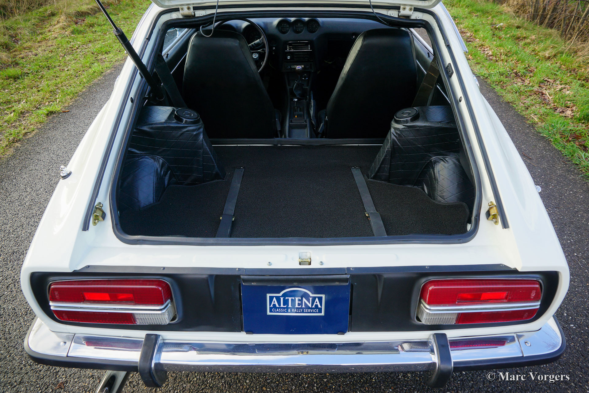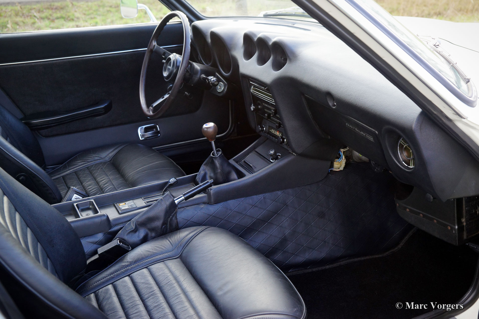 Datsun 240Z, jaar 1971. Kleur crème wit (Datsun kleurnummer 904) gecombineerd met een zwart kunstlederen interieur en zwarte vloerbedekking. “Matching Numbers & Colours”! Deze prachtige Datsun 240Z uit de eerste serie werd nieuw verkocht aan een zekere meneer James in Sacramento, Californië, USA. De auto werd in het jaar 2016 naar Nederland verscheept. In de jaren 2016 - 2019 werd de volledig roestvrije Californische auto gestript, gerestaureerd en weer in de originele kleur gelakt. Alle originele puntlassen zijn nog zichtbaar! Een uitgebreid fotoverslag van de uitgevoerde werkzaamheden is aanwezig. De motor en de versnellingsbak zijn geïnspecteerd. Deze bevonden zich in uitstekende conditie waardoor revisie niet nodig was. Alle mechanische delen werden geïnspecteerd, gerestaureerd/ geserviced en de carburateurs zijn gereviseerd. De auto ziet er van binnen en van buiten uit als nieuw, inclusief de onderkant! Deze fantastische Datsun 240Z verkeert in sublieme topstaat (concours). De auto wordt geleverd met een volledig gedocumenteerde (service) geschiedenis vanaf DAG 1! Twee ordners bevatten alle originele (instructie) boekjes, garantiekaart, garantiepas, radio (instructie) boekje, service/ restauratie facturen, historische documenten en de fotoreportage van de restauratie. De Amerikaanse titel is nog steeds aanwezig. Deze prachtige Datsun 240Z is voorzien van de originele AM-radio en prachtige 14-inch Z-lichtmetalen velgen met 195/70 14-banden. Dit is een schaars topexemplaar!