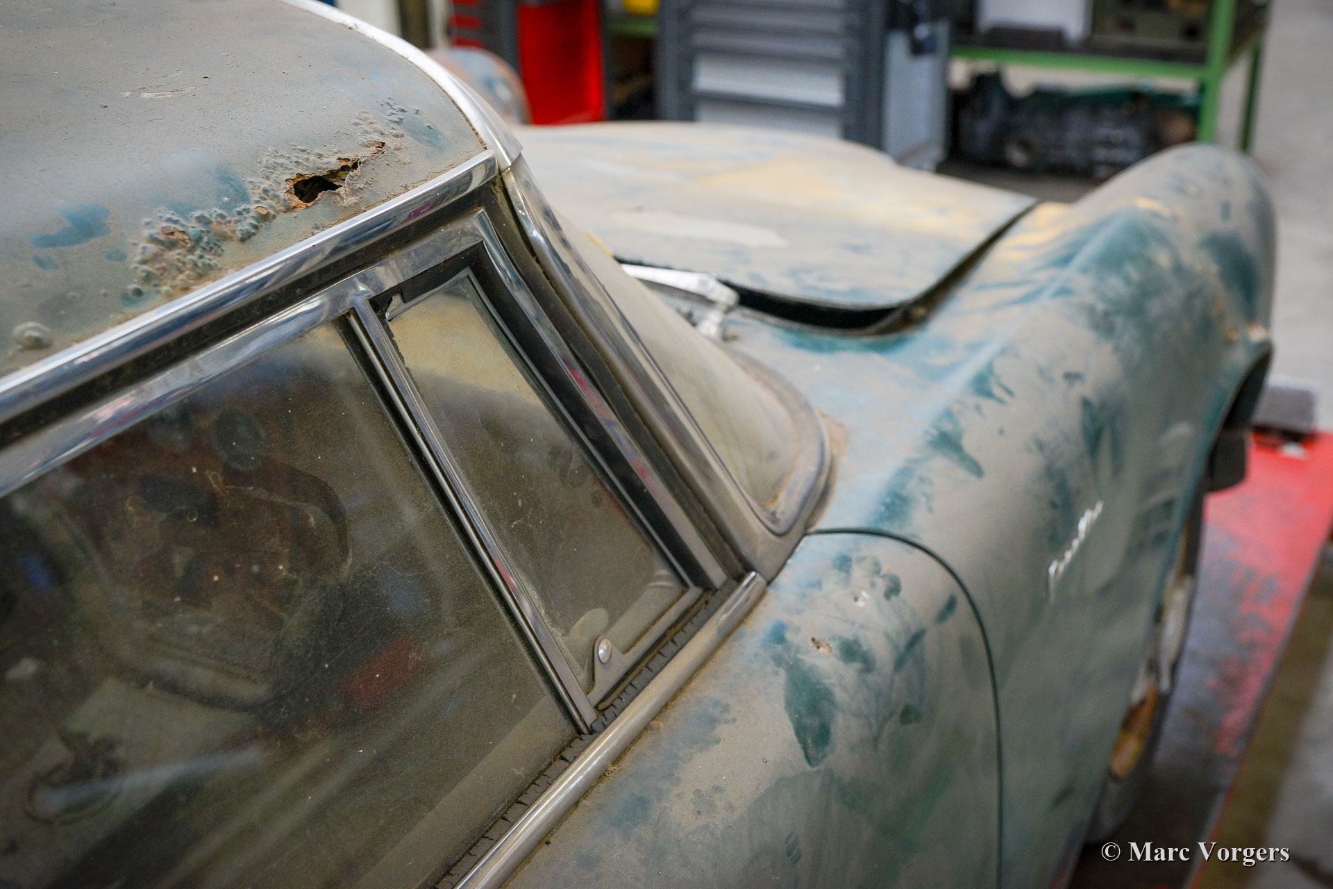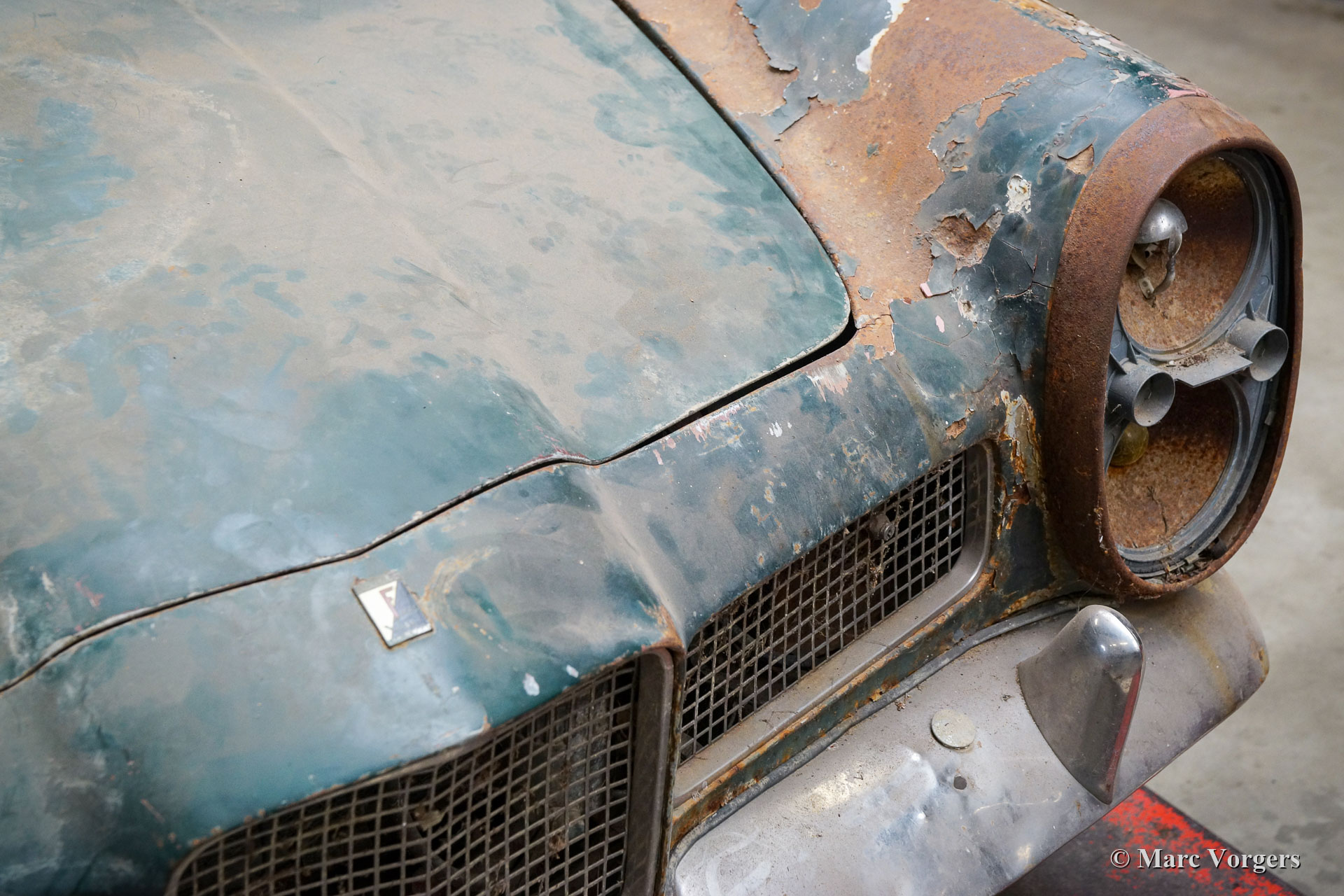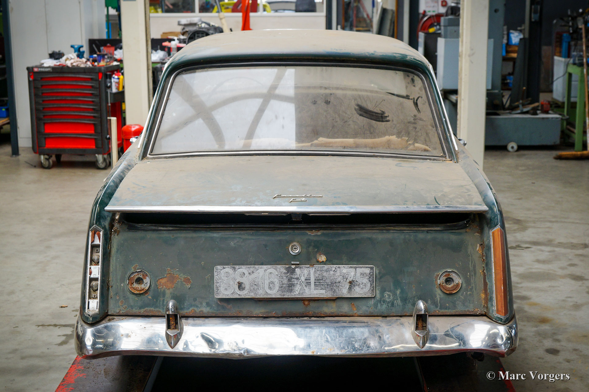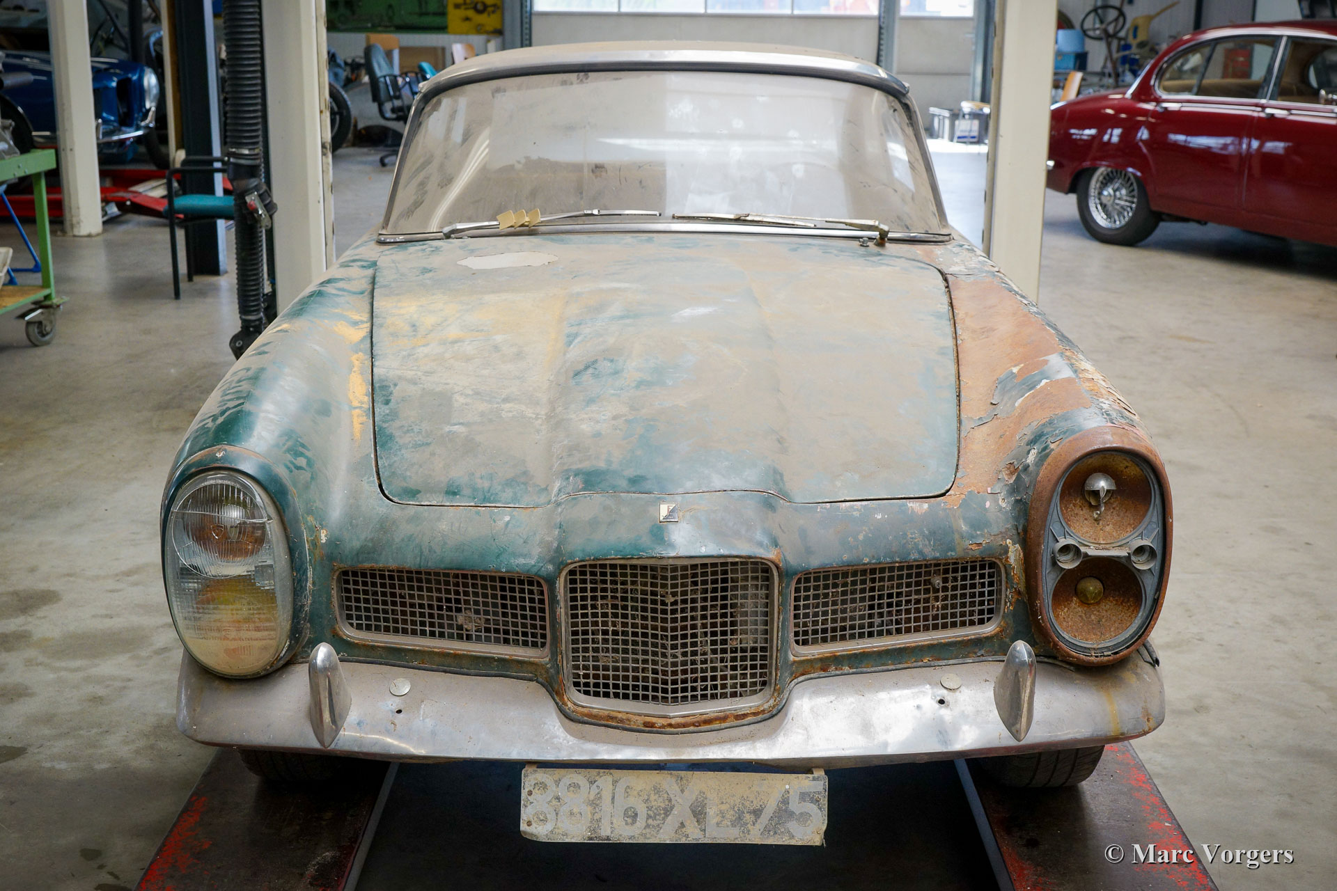 Facel Vega Facellia F2 Coupé, jaar 1962. (13-10-1962). Restauratieproject. Kleur donkergroen gecombineerd met een zwartlederen interieur. Dit zeldzame Facellia F2 Coupé restauratieproject is in de conditie zoals gevonden, klaar om volledig gerestaureerd te worden. De auto kan in de huidige staat worden gekocht, maar bij voorkeur met de opdracht om door Amicale Facel Holland volledig naar topconditie te worden gerestaureerd. Deze Facellia F2 is voorzien van de opgewaardeerde Pont-a-Mousson viercilinder twin-cam motor die speciaal ontwikkeld is voor de Facel Vega Facellia. De motor is uitgerust met een dubbele Solex carburateur gekoppeld aan een handgeschakelde Pont-à-Mousson 4-versnellingsbak. Deze zeldzame Facellia F2 Coupé kan volledig naar uw wensen worden gerestaureerd.