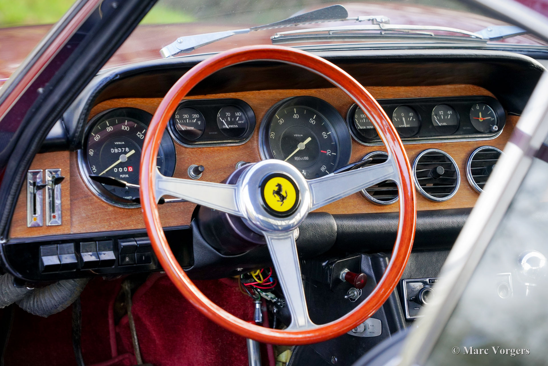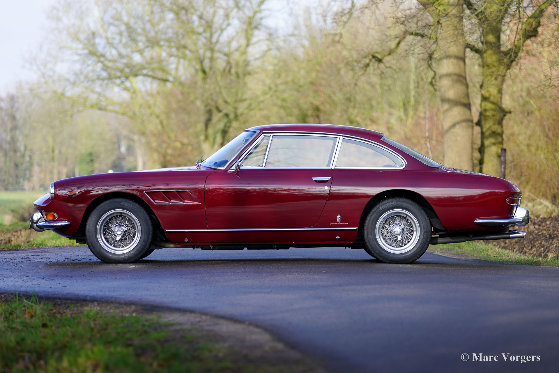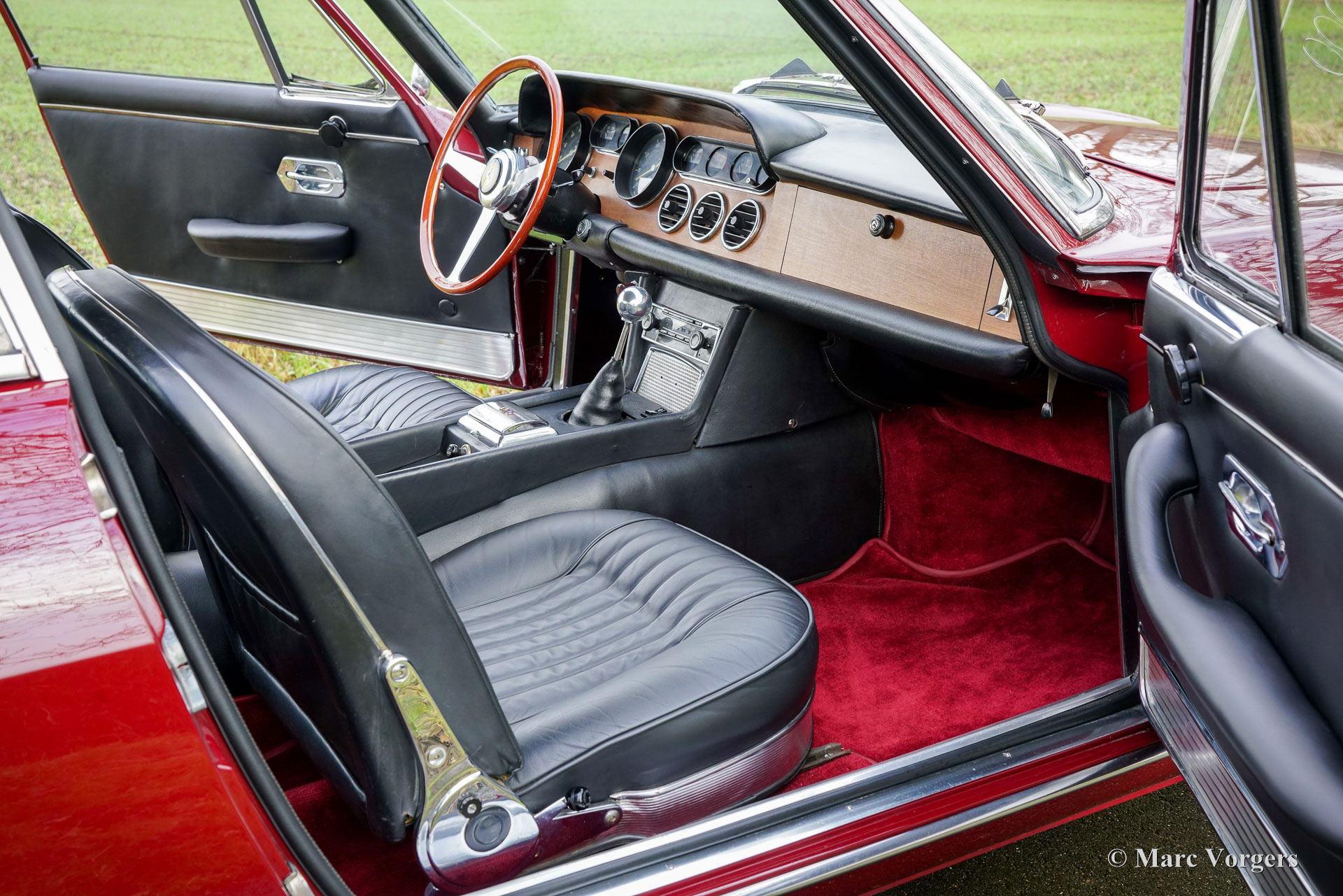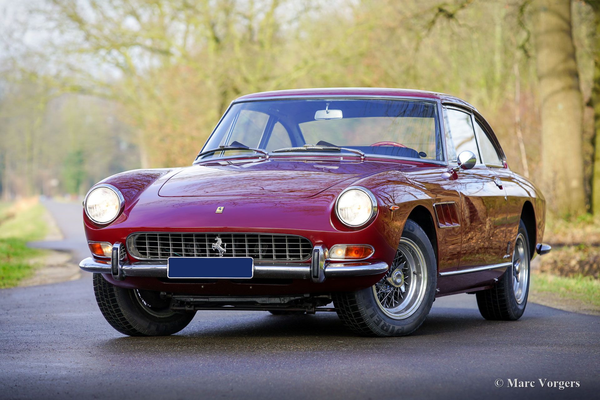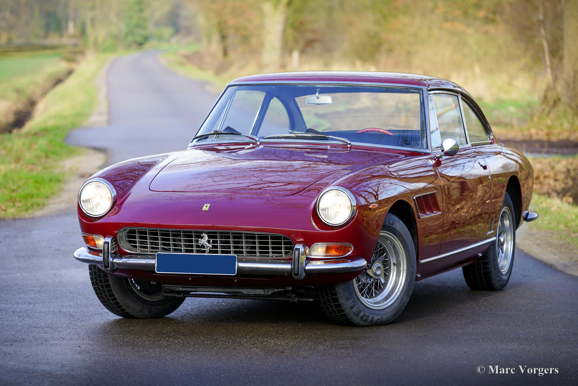 Ferrari 330GT 2+2 serie 2, jaar 1966. Kleur donkerrood gecombineerd met een zwartlederen interieur afgewerkt met donkerrood tapijt. Deze prachtige Ferrari 330 GT 2+2 serie 2 werd nieuw afgeleverd in Italië in de kleur zilver metallic (Argento 2509A) gecombineerd met een beige lederen interieur (Beige Scuro VM846). Van december 1988 tot augustus 1995 was de Ferrari eigendom van de heer N Cutrera in het Verenigd Koninkrijk. Daarna werd deze prachtige machine elf jaar gekoesterd door de heer K.F Sondermann in Duitsland. Sondermann nam met de Ferrari deel aan vele evenementen zoals de Nürburgring Oldtimer Grand Prix, Ferrari Racing Days en de Michael Schumacher Fan-Day. In 2006 is de auto naar Nederland geïmporteerd. Momenteel is de auto in het bezit van de tweede Nederlandse eigenaar die sinds juni 2013 met volle teugen geniet van de 330 GT. In de periode 2008-2013 is de auto voorzien van perfecte nieuwe lak en is het interieur opnieuw bekleed met het fijnste zwarte leer. De Ferrari 330 GT 2+2 is een van de zeer gewilde Ferrari's uit de jaren 60, uitgerust met de legendarische Colombo V12-motor. Gebouwd tussen 1964 en 1967, zijn er ongeveer 1000 exemplaren van de 330 GT gebouwd, waarvan slechts 455 exemplaren van het gewilde serie 2-model, dat een meer verfijnd uiterlijk heeft met twee koplampen. De 4 liter V12-motor produceert ongeveer 300 pk en het vermogen wordt via een handgeschakelde 5-versnellingsbak naar de achterwielen overgebracht. Deze prachtige Ferrari 330 GT 2+2 Serie 2 verkeert in een excellente conditie en de auto rijdt geweldig. De auto is de afgelopen jaren zeer goed onderhouden door S2 Classic Cars en onlangs is er wat mechanisch onderhoud uitgevoerd om alles up-to-date te brengen. Deze prachtige Ferrari 330 GT 2+2 serie 2 is een gewilde verzamelauto en de auto is compleet met uitgebreide documentatie, origineel gereedschap en een Becker Mexico Cassette Stereo radio in het dashboard. Deze magnifieke Ferrari 330 GT 2+2 kan worden geïmporteerd naar (en geregistreerd in) elk land ter wereld.