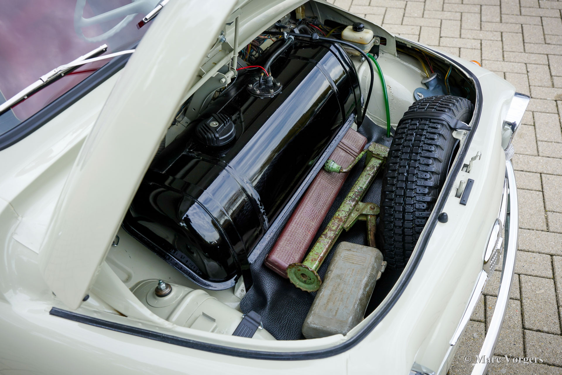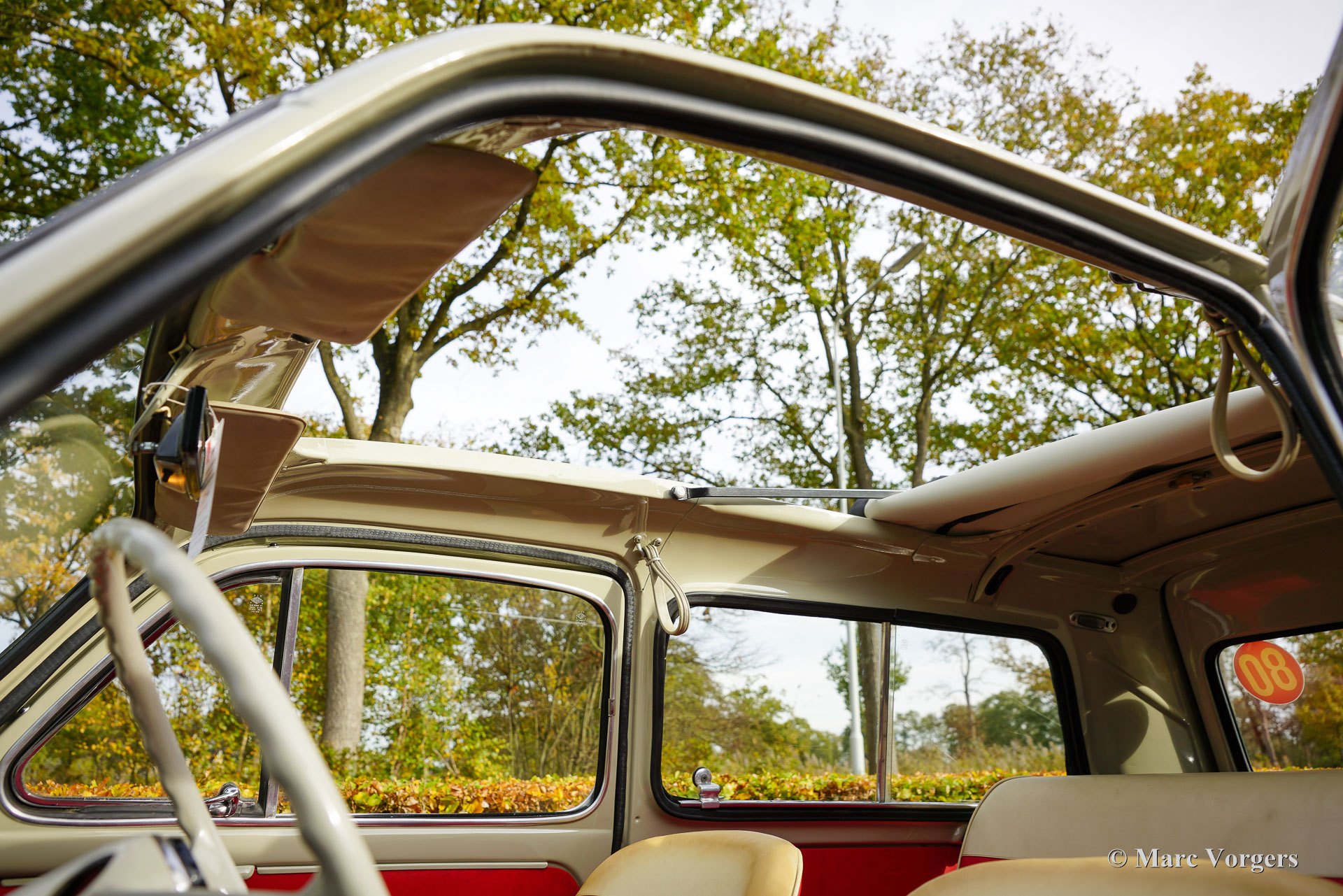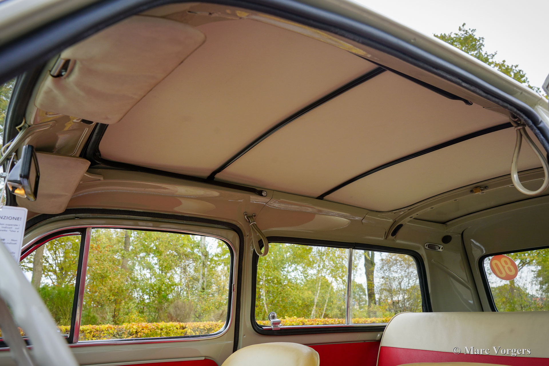Fiat 120 Nuova 500 Giardiniera, jaar 1965. Chassisnummer Fiat120*144869*, motornummer 120000*243877*. Carrosseriekleur warm grijs (beige) gecombineerd met een rood/crème kunstlederen (vinyl) interieur afgewerkt met zwart rubberen tapijt. Deze prachtige Fiat 120 Nuova 500 Giardiniera is nieuw verkocht in Zuid-Italië, waar hij tot voor kort verbleef. Na een uitgebreide onderhoudsbeurt in Italië, inclusief een remmenservice, is de auto naar Nederland verkocht. Deze Fiat Nuova 500 Giardiniera verkeert in een excellente conditie! De kilometerteller staat op 82.796 kilometer. De carrosserie ziet er gloednieuw uit en is in het verleden prachtig gerestaureerd/ overgespoten; het interieur verkeert in een prachtige en uitstekende staat. De motorruimte ziet eruit alsof de auto twee jaar geleden de fabriek heeft verlaten. Deze prachtige Fiat 500 Giardiniera toont alle originele details en de auto rijdt en stuurt voortreffelijk. De rijervaring is een tijdreis naar zoetere tijden, toen bescheidenheid en vriendelijkheid deugden waren. Wanneer je dichtbij zijnde stadjes en dorpen bezoekt terwijl je in deze prachtige droomauto rijdt, word je overladen met complimenten, opgestoken duimen, glimlachen, en is er geen gebrek aan conversatie. Als je daar niet van houdt, blijf dan uit de buurt van deze schat! Deze Fiat 120 Nuova 500 Giardiniera is een fantastisch verzamelobject. Sommigen zouden hem graag tentoonstellen in hun ruime huis als een statement van Italiaans design, anderen zouden hem koesteren in hun schuur of garage. Hoe dan ook, plezier is gegarandeerd!