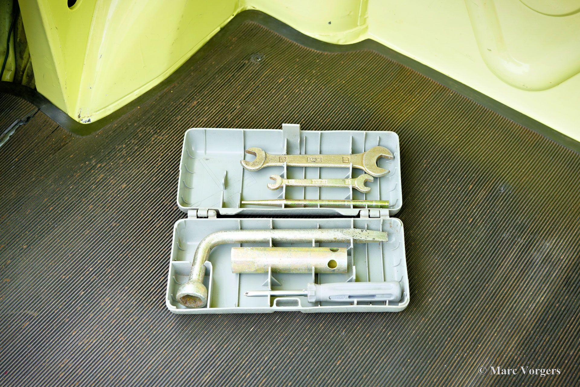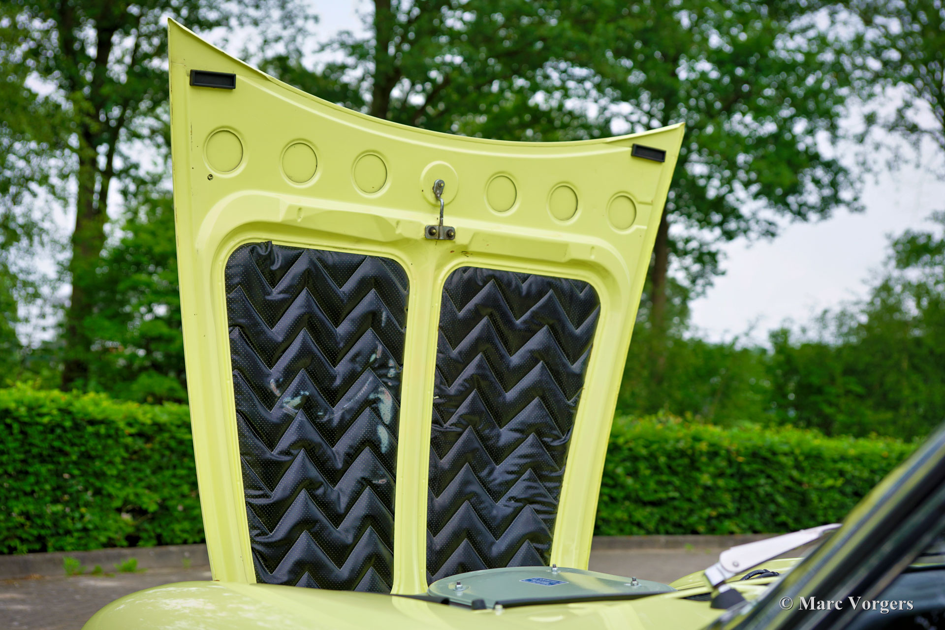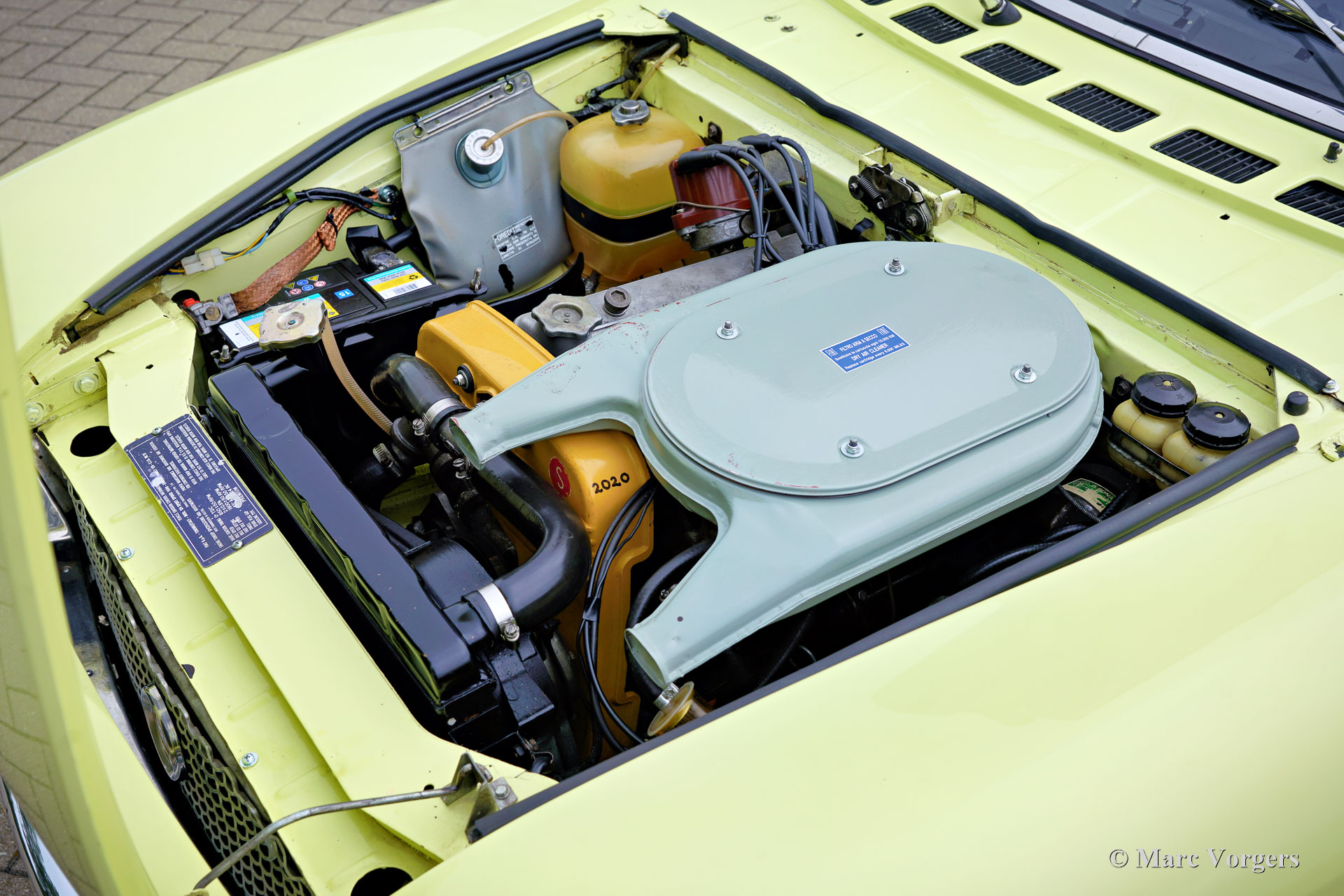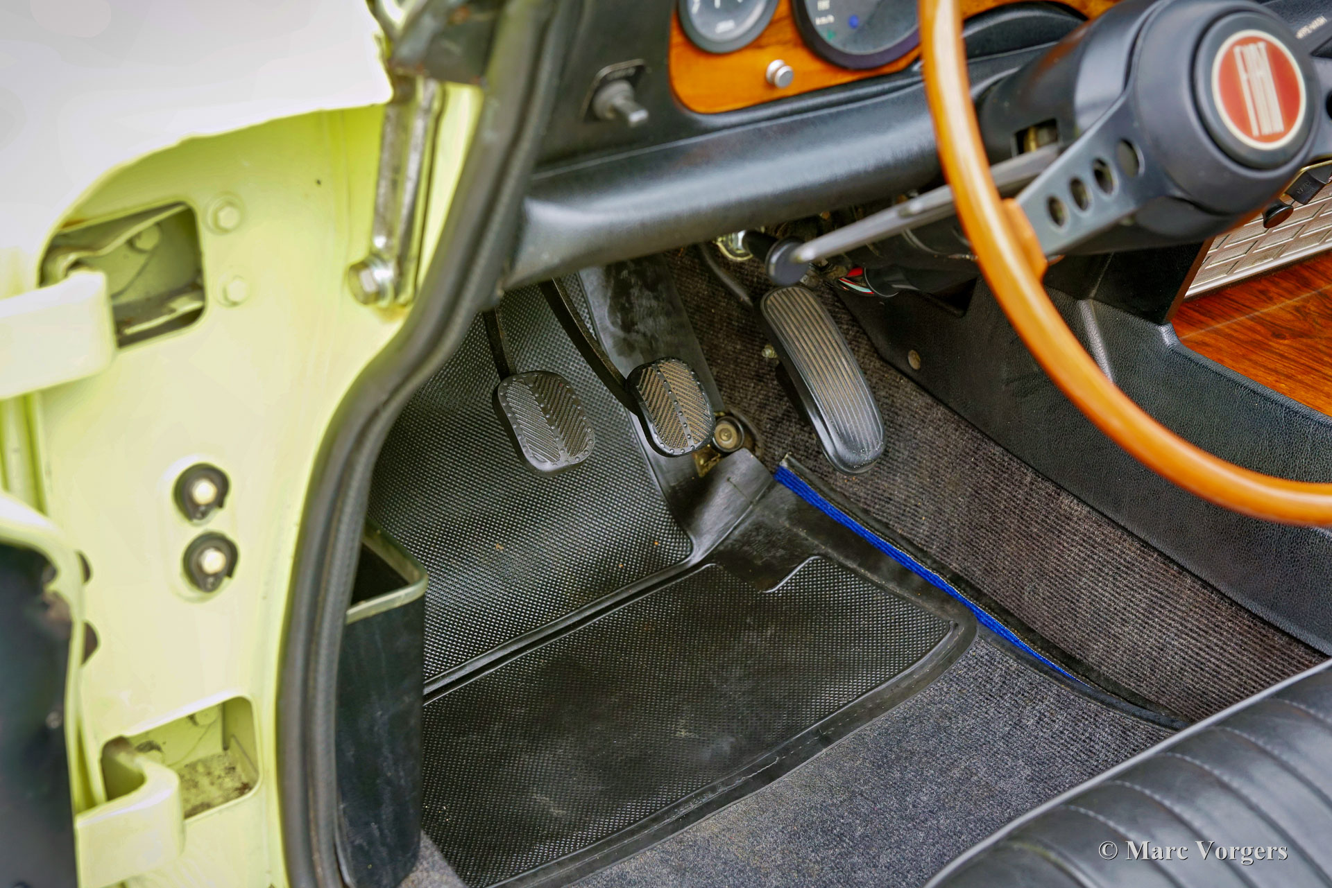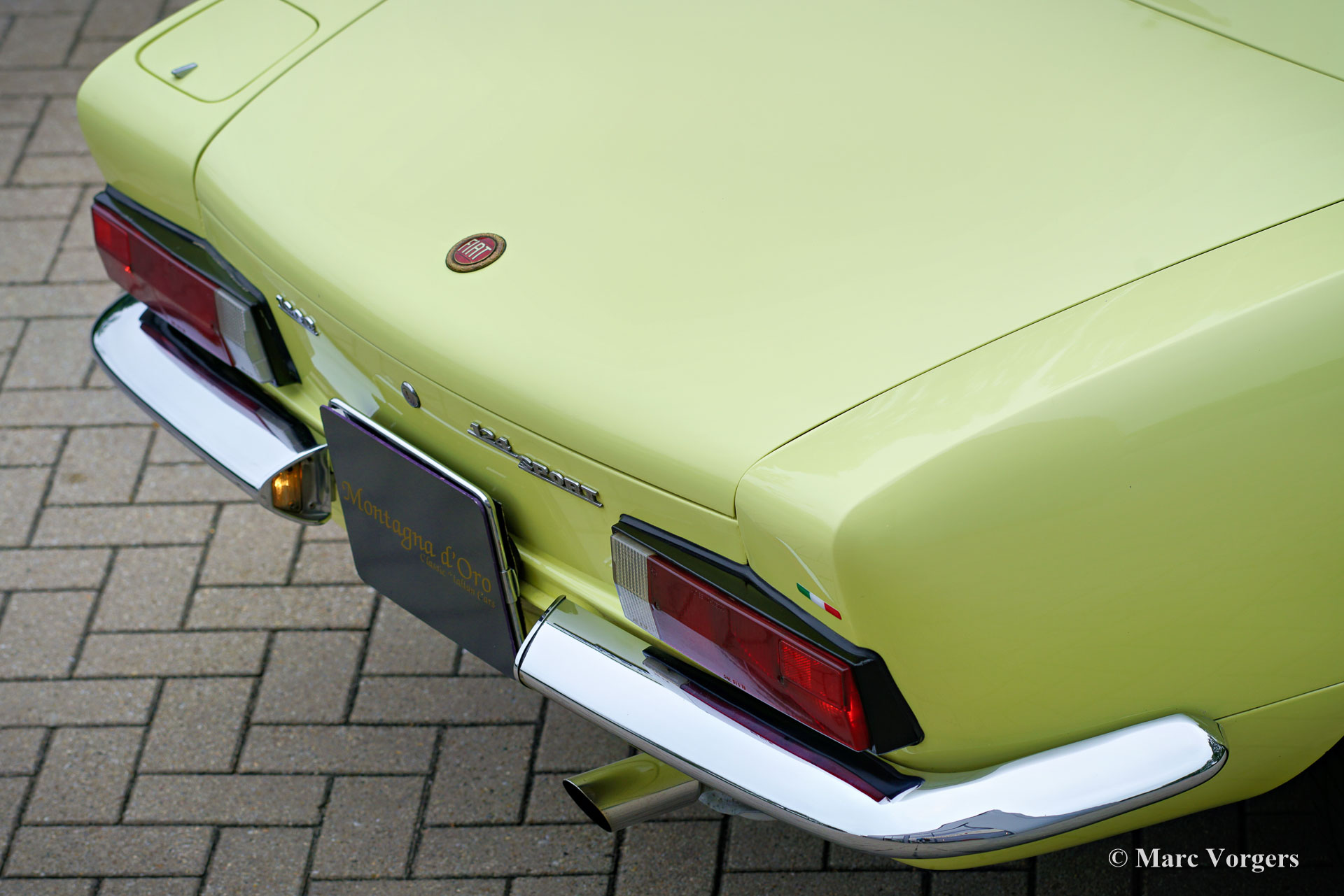 Fiat 124 Sport Spider 1600 (BS1), 1972. Kleur geel (Colorado Yellow 241) gecombineerd met een zwart kunstleren interieur afgewerkt met antraciet tapijt. Zwart mohair soft-top en een zwart vinyl afdekhoes. Deze prachtige Fiat 124 Sport Spider is nieuw verkocht in de USA en in juni 1993 in Nederland geïmporteerd. De volledige Amerikaanse historie inclusief servicefacturen is aanwezig tot 1992. Na aankomst in Nederland is de Fiat omgebouwd naar Europese specificaties met onder andere de montage van chromen bumpers, Europese koplampunits en een snelheidsmeter/teller in km/u in plaats van mijlen. Rekeningen van de ombouw en wat ander werk bedragen samen 17.000 Nederlandse guldens (€ 15.500 vandaag via geïndexeerde berekening). Latere onderhoudsfacturen zijn ook aanwezig, zelden hebben wij een auto zo goed gedocumenteerd gezien! Deze Fiat 124 Sport Spider verkeert in een zeer goede tot excellente staat en de auto rijdt perfect. De auto beschikt over een 1592 cc viercilindermotor met dubbele bovenliggende nokkenassen en een vermogen van 108 DIN pk. Met een vijfversnellingsbak, een gewicht van net geen 1.000 kg en een topsnelheid van 185 km/u zal de Fiat 124 Sport Spider zich comfortabel in het moderne verkeer mengen. De fantastisch uitziende carrosserie is getekend door Pininfarina. Het interieur toont de overgang naar de jaren zeventig met een van de laatste met hout gefineerde dashboards en sportieve “blacked out” chromen sierdelen (randen van de klokken/ meters en het middendeel van het stuur in matzwart) om hinderlijke schitteringen en verblinding door (zon)licht tegen te gaan. Dit was een nieuw inzicht overgenomen van rally- en raceauto’s dat toen in de mode raakte. Deze prachtige Fiat 124 Sport Spider is in deze kleuren beeldschoon en de fraaie originele lichtmetalen velgen maken het plaatje helemaal af!