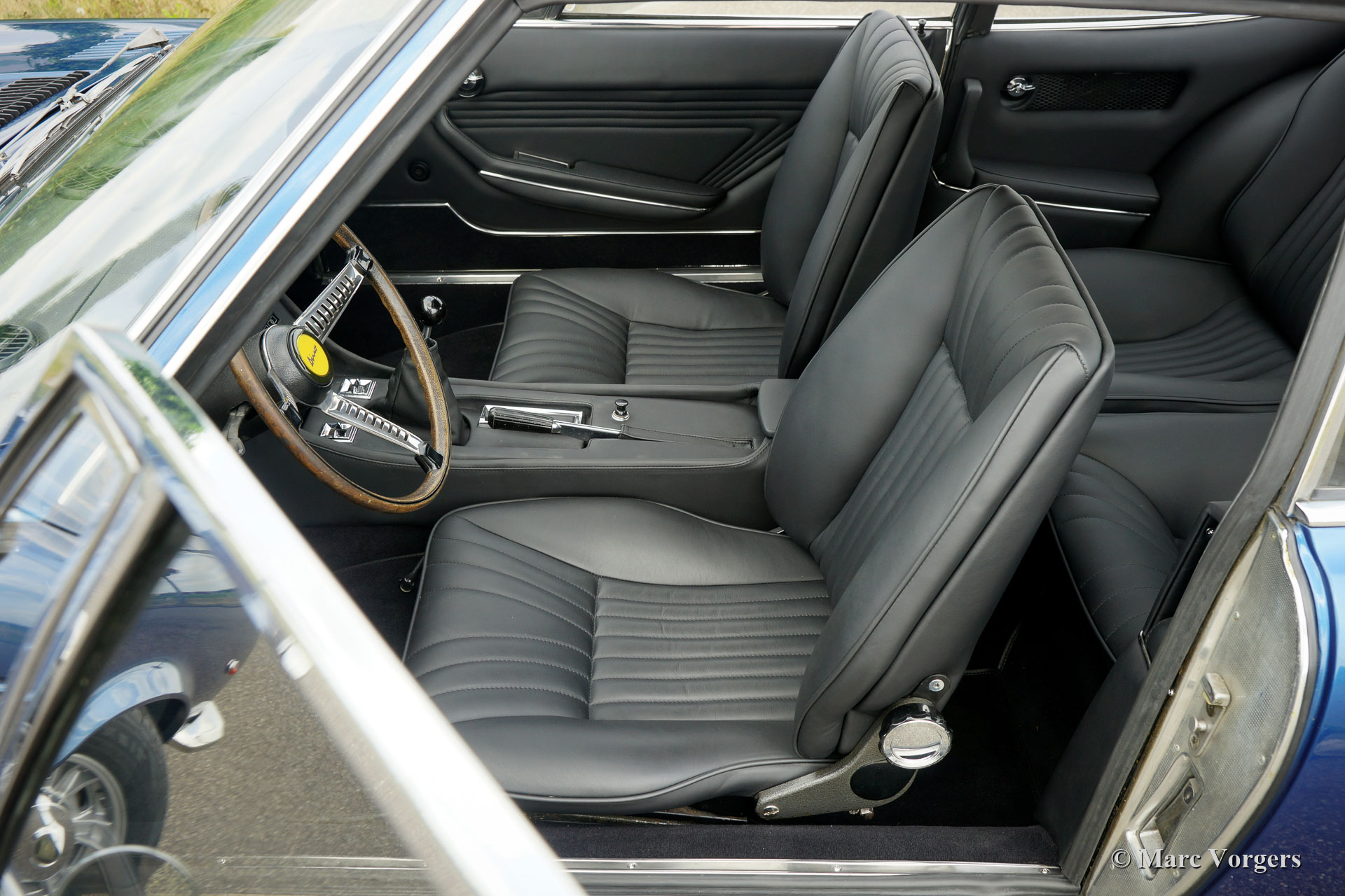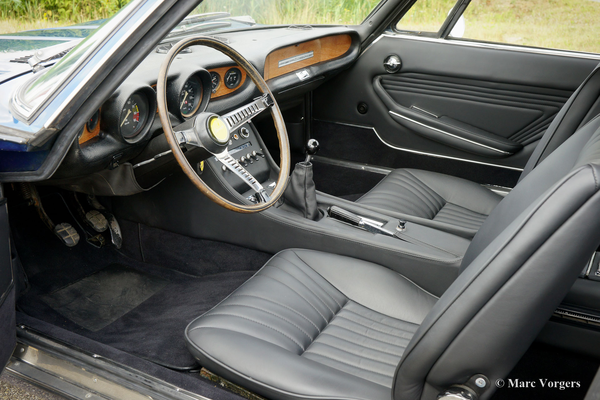 Fiat Dino 2000 coupé, jaar 1967. Kleur Azurro Mexico Blue metallic met een zwartleren interieur en zwart tapijt. Deze prachtige Fiat Dino 2000 coupé is nummer 128 van 3600 exemplaren die van 1967 tot en met 1969 gebouwd zijn. De auto heeft een uitgebreide carrosserierestauratie ondergaan (fotoreportage aanwezig) en het interieur (tapijt en de leren bekleding) zijn vernieuwd. Mechanisch is de auto grotendeels origineel en uitstekend onderhouden. Er is een compressie-testgrafiek van de motor aanwezig met gezonde resultaten! Deze Fiat Dino verkeert in zeer goede tot excellente staat en de auto rijdt geweldig! De 2-liter Ferrari (Dino) V6-motor levert 165 pk en het geluid is fantastisch! De 5-traps handgeschakelde versnellingsbak schakelt perfect. De Dino-coupe is ontworpen door Bertone; een prachtig gevormd meesterwerk met prachtige details!