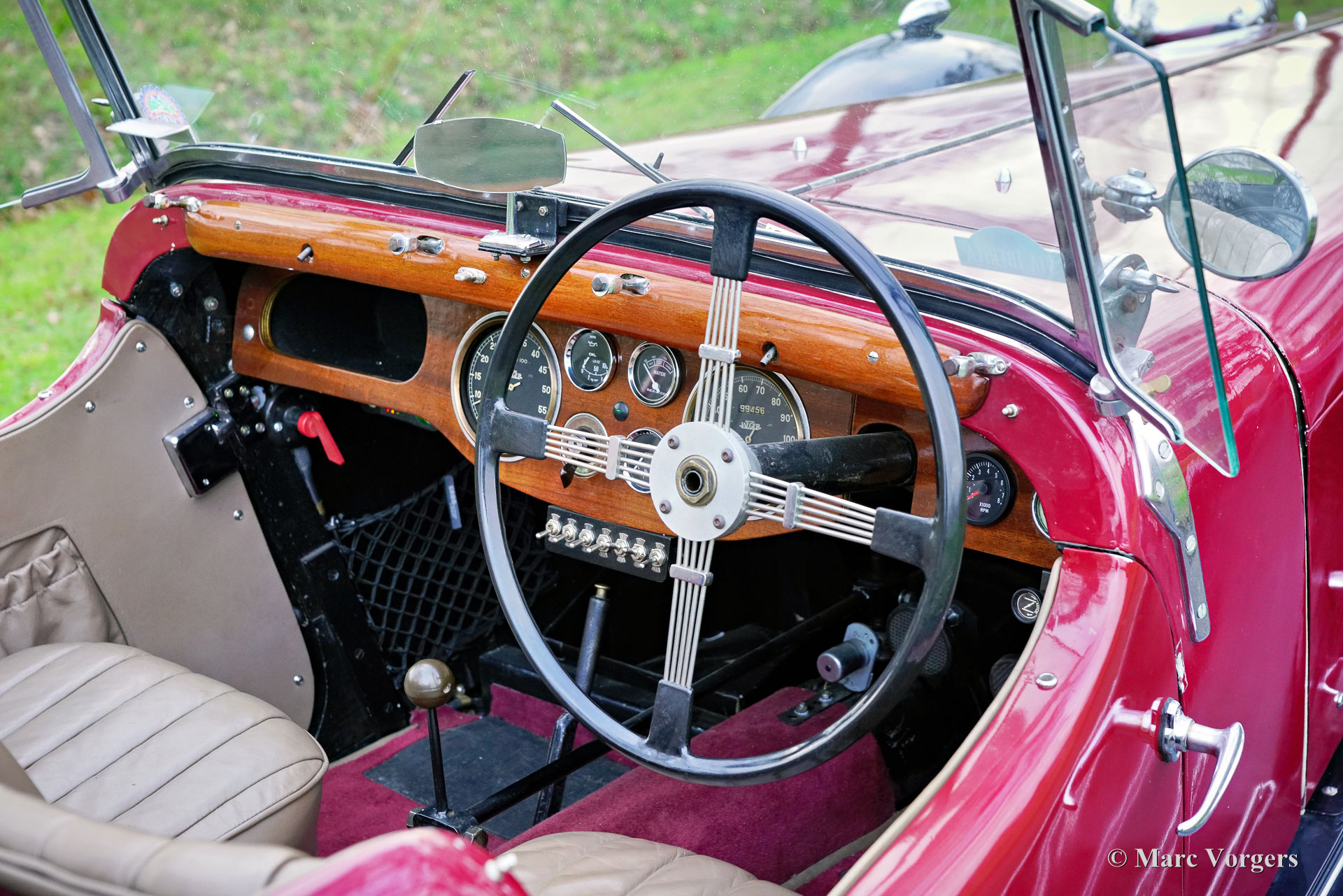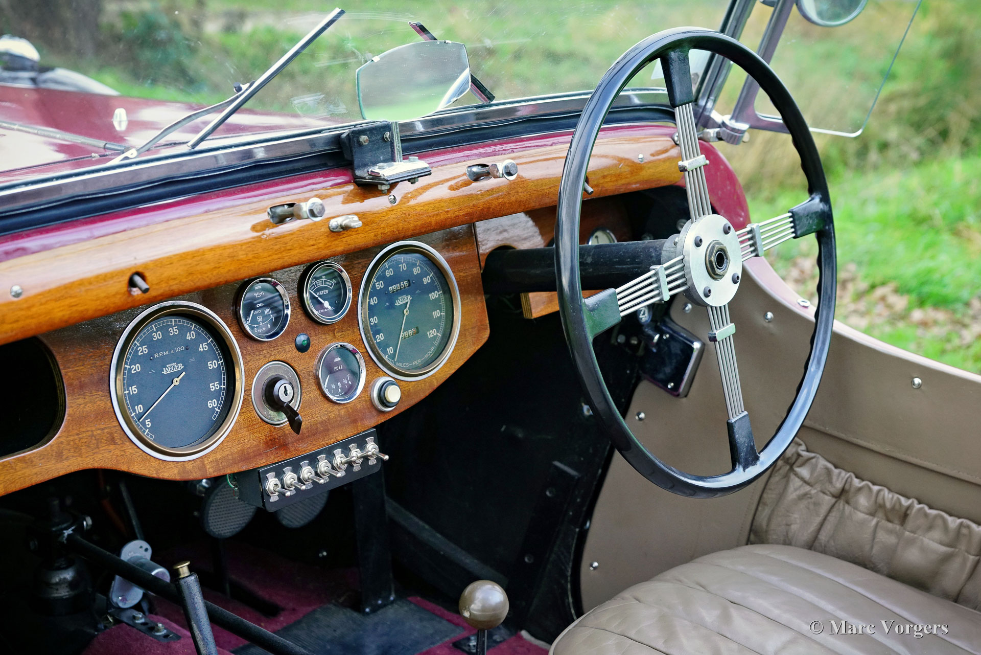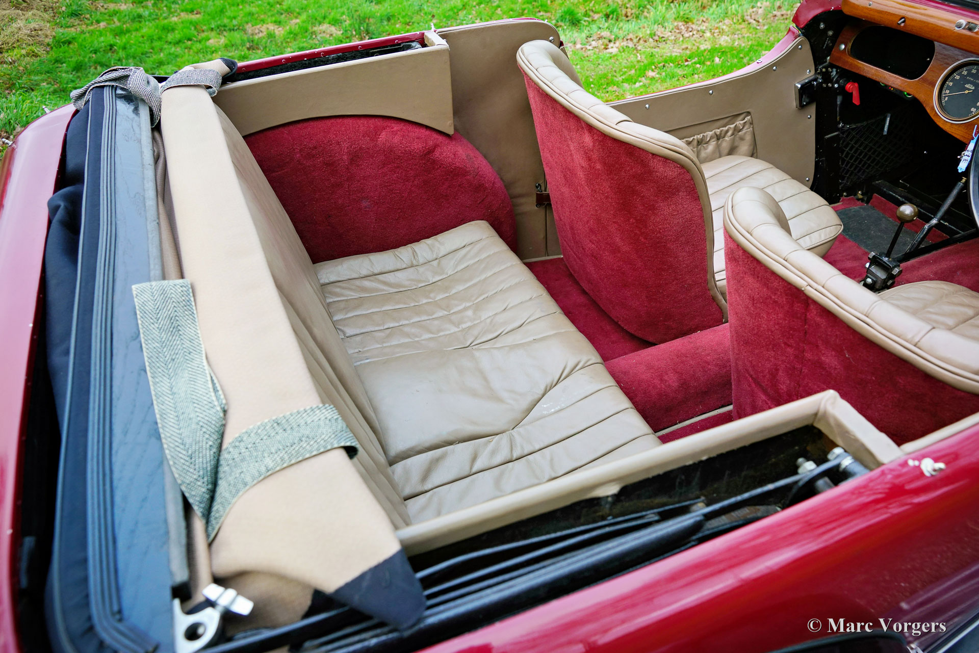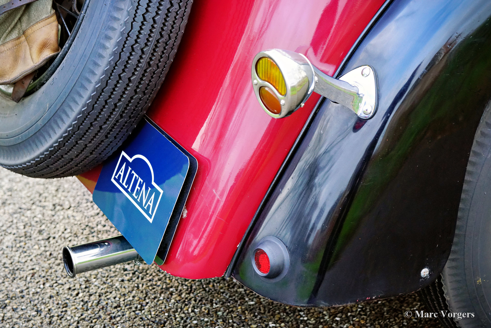 HE (Herbert Engineering) ‘Nelson’ V8 special, bouwjaar 1931. Kleur donkerrood boven zwart gecombineerd met een beige lederen interieur en een zwarte kap. Herbert Engineering is een van de vele kleine Britse autofabrikanten van voor de Tweede Wereldoorlog die al tientallen jaren vergeten zijn. De firma HE sloot kort na de introductie van dit model. HE-auto's zijn erg, erg zeldzaam, dus we zijn er trots op om u deze zeer interessante special te presenteren. De auto heeft een gedocumenteerde geschiedenis van 90 jaar! Het meest interessante is het feit dat de tweede eigenaar, een heer Nelson, de originele zescilinder-lijnmotor in 1934 verruilde voor een Amerikaanse V8-krachtbron! Niet de eerste Britse auto met een Amerikaanse 8-cilindermotor, die eer gaat naar de Railton Terraplane uit 1933. Maar wel een van de eerste Britse auto's (en specials) met een Amerikaanse V8-motor! De motor is een 3,6 liter Ford ‘flat head’ V8 die heel laag in het chassis is gemonteerd. Dit chassis is aan de achterzijde al ‘underslung’ (as boven het chassis gemonteerd). Ook de eindoverbrenging is opgewaardeerd met een hogere ratio en de mechanische kabelbediende remmen zijn vervangen door een hydraulisch systeem. Zes jaar geleden is de motor voorzien van nieuwe hoge compressie cilinderkoppen en elektronische ontsteking. De afgelopen vijf jaar is de auto onderhouden bij Altena Classic Service en is er veel geld geïnvesteerd om de auto mechanisch en technisch up-to-date te brengen en te houden. De eigenaar heeft zonder problemen deelgenomen aan geweldige historische rij-evenementen zoals de Via Iberica 2022 en de Herzberger Trophy 2023. Deze HE Nelson V8 special ziet er doelbewust uit, de motorkap beslaat bijna de helft van de lengte van de auto! Dit is een zeer opmerkelijke en unieke special met een prachtig vintage patina. De auto is momenteel geregistreerd in Nederland en kan naar elk land worden geëxporteerd en geregistreerd.
