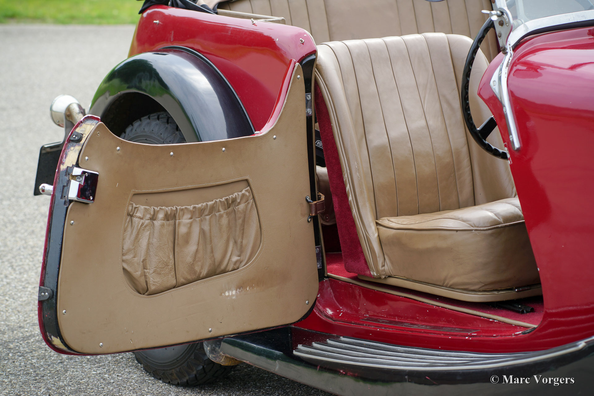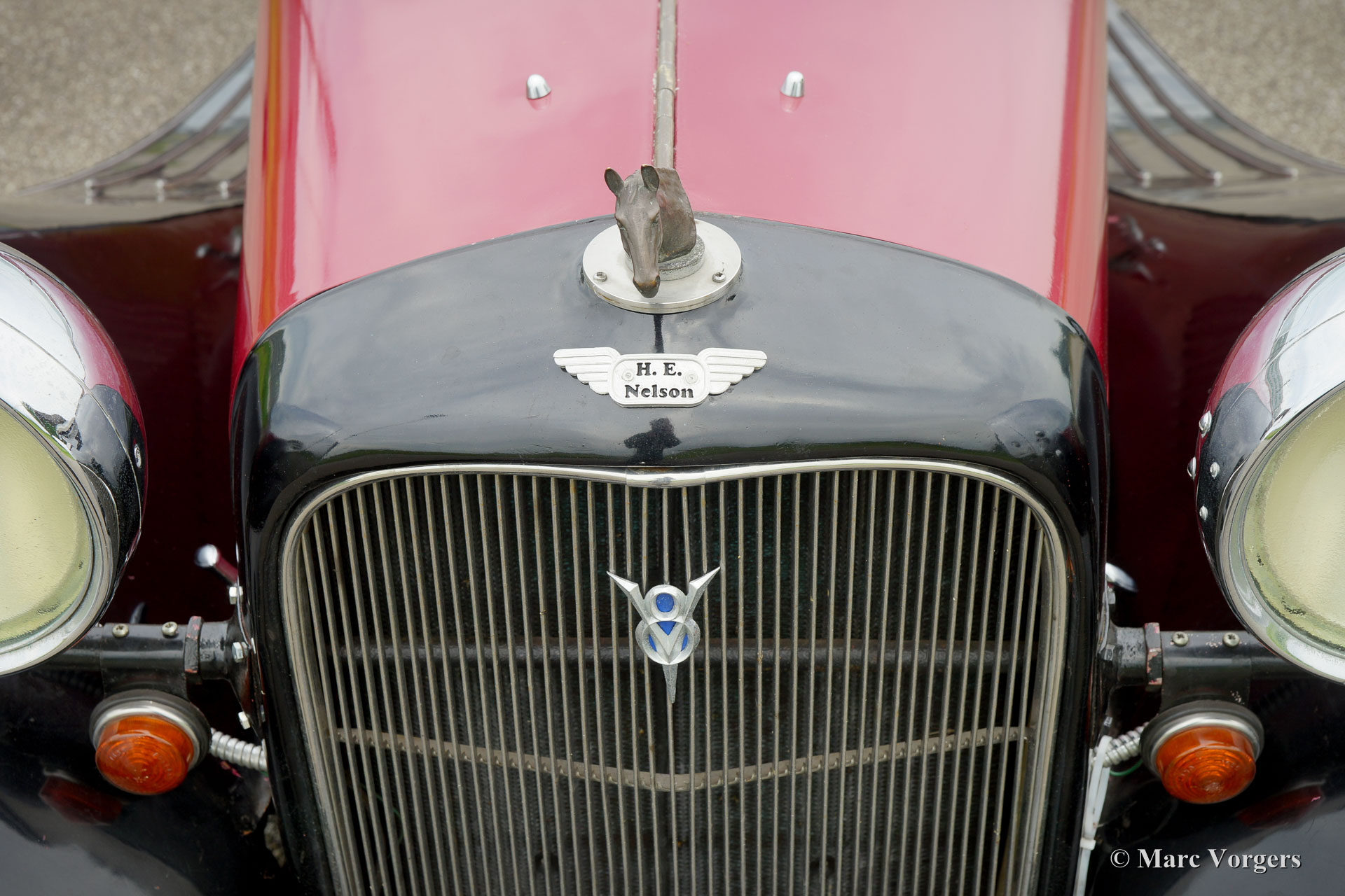 Herbert Engineering (H.E.) Nelson V8 open-tourer special, jaar 1931. Kleur donkerrood (bordeaux) boven zwart gecombineerd met een beige leren interieur en een zwarte kap. Herbert Engineering is een van de vele kleine Britse autofabrikanten van voor de tweede Wereldoorlog die al tientallen jaren vergeten zijn. Herbert Engineering slot de fabrieksdeuren kort na de introductie van dit model. De H.E.-automobielen zijn extreem zeldzaam, we zijn trots om u deze zeer interessante en wat ruige special te kunnen presenteren. De auto wordt geleverd met een perfect gedocumenteerde historie van meer dan 85 jaar! Naast de zeldzaamheid is het buitengewoon interessant dat de tweede eigenaar, een Mr. Nelson, in 1934 de originele zescilinder-lijnmotor verving door een Amerikaanse V8 motor! Niet de eerste Britse auto met een Amerikaanse 8-cilindermotor, die eer gaat naar de Railton Terraplane uit 1933. Maar een van de eerste Britse auto's (en specials) uitgerust met een Amerikaanse V8-motor! De motor is een 3,6-liter Ford 'flat-head' V8 die zeer laag in het chassis is gemonteerd! Dit chassis is aan de achterzijde al ‘underslung’ (de achteras is boven het chassis gemonteerd). De eindaandrijving werd ook verbeterd met een hogere ratio en de mechanische kabelbediende remmen werden vervangen door een hydraulisch systeem. Onlangs is de motor uitgerust met nieuwe cilinderkoppen met hoge compressie en elektronische ontsteking. Deze H.C. Nelson V8 special toont stoer en krachtig, zelfs met de kap omhoog! Dit komt deels dor de lengte van de motorkap die ongeveer de helft van de wagenlengte in beslag neemt! Dit is een zeer opmerkelijke special, wat ruw in detail, maar een geweldig project voor de liefhebber! De auto is momenteel geregistreerd in het Verenigd Koninkrjk.