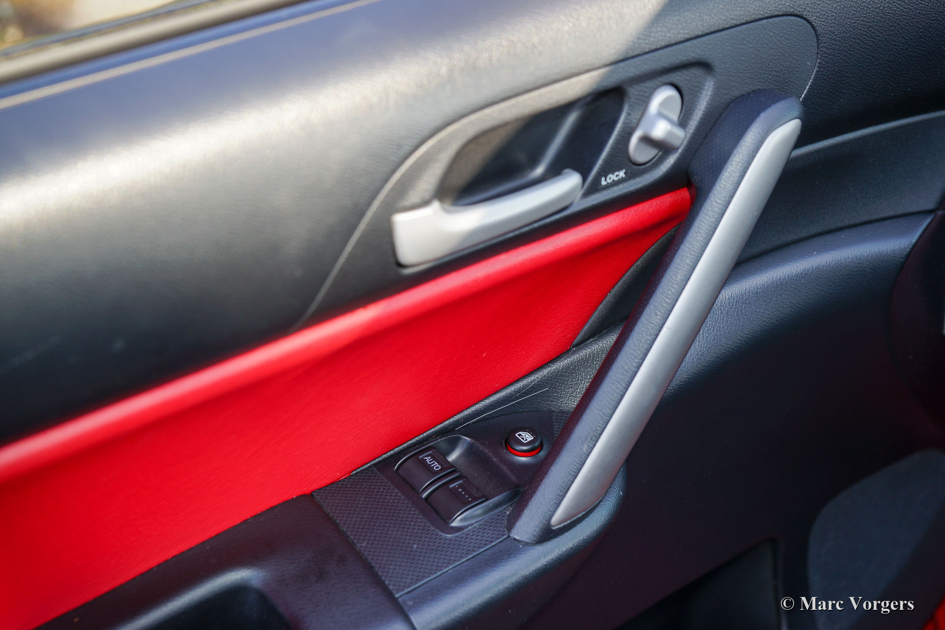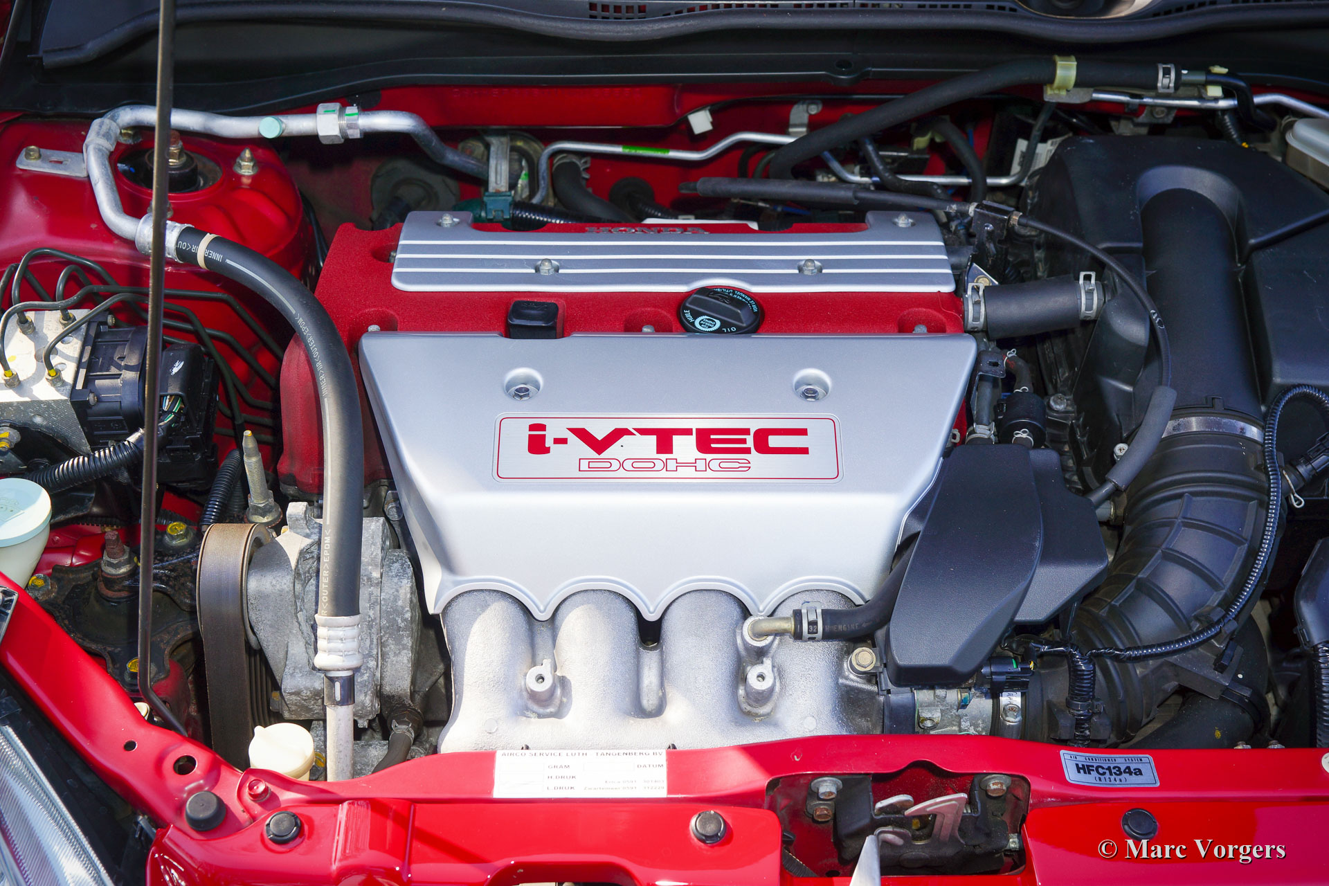 Honda Civic, Type R, jaar 2002. (Type R EP3). Exterieurkleur rood gecombineerd met een donkergrijs suède/ stoffen interieur met rode stiksels en rode accenten. Deze fantastische Honda Civic Type R is nieuw verkocht in Zwitserland. In 2017 is de auto in Nederland geïmporteerd met 66.000 originele kilometers op de teller. Nu staat er 83.000 kilometer op de teller. Deze Type R is door de jaren heen perfect onderhouden en gekoesterd door een liefhebber. De auto verkeert in een sublieme originele staat en rijdt en schakelt perfect! Het onderhoudsboekje toont stipte dealerservice-intervallen en bevestigt de kilometerstand. De auto wordt compleet geleverd met alle originele boekjes en onderhoudsfacturen. Deze Honda Civic type R toont het nummer R-09830 op een aluminium badge op de middenconsole. Het interieur is onberispelijk. De carrosserie is ook onberispelijk en toont nog steeds 100% perfecte originele lak.