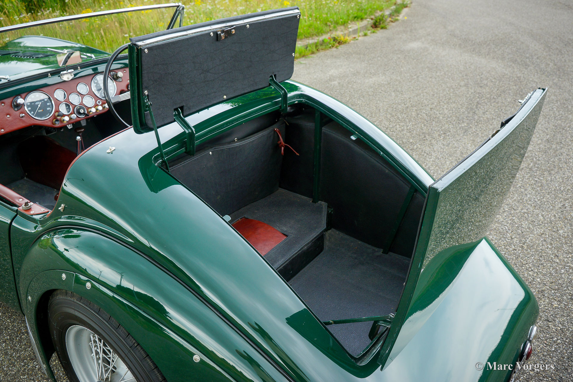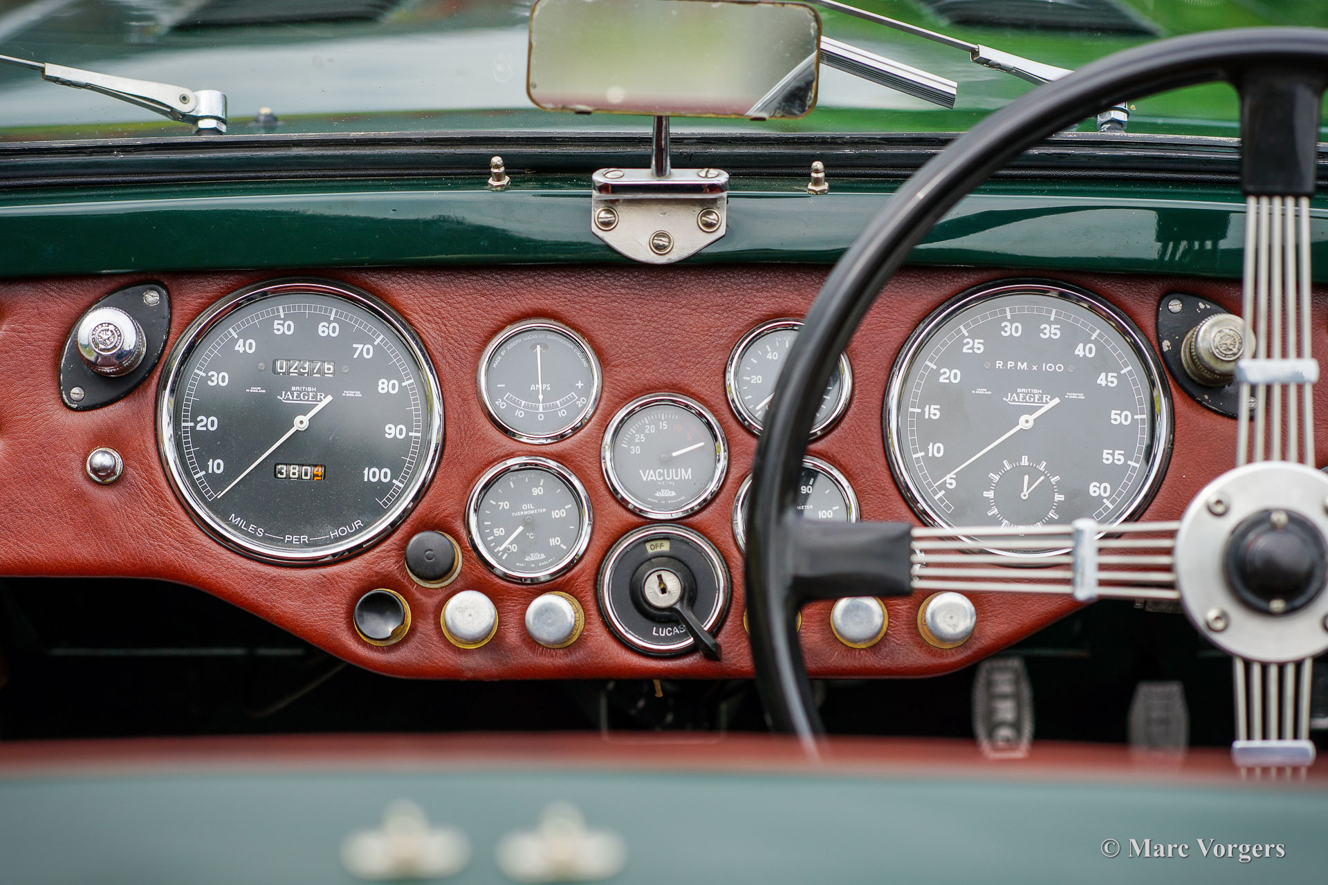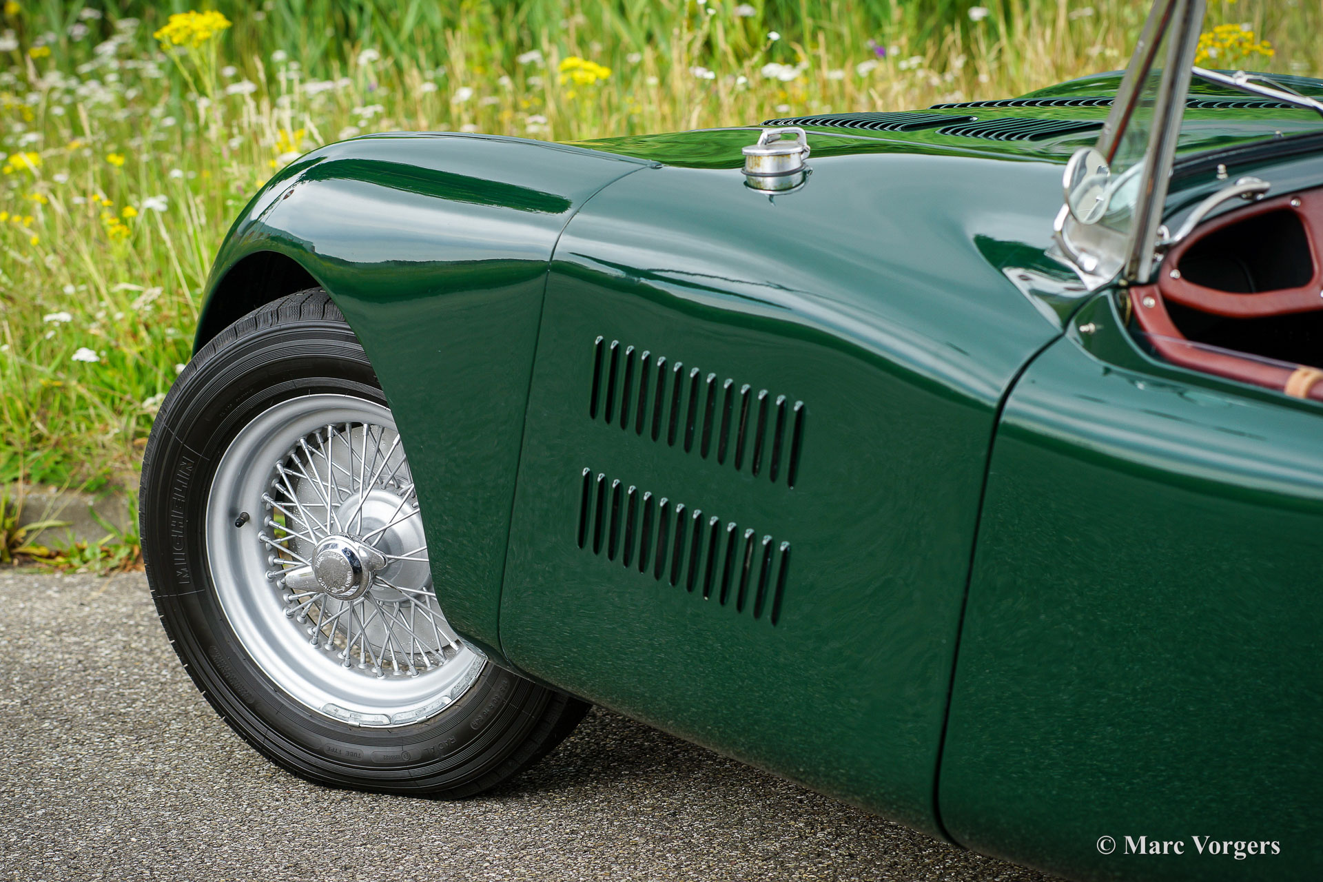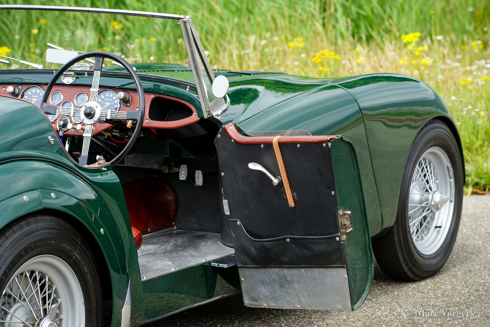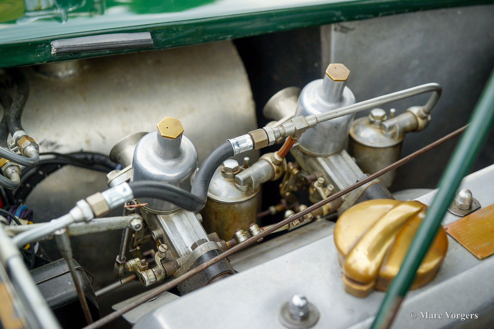HRG 1500 Aerodynamic, jaar 1947. Kleur donker British Racing Green. Interieur met bruin lederen stoelen. Deze zeldzame en prachtige HRG 1500 Aerodynamic werd nieuw verkocht in het Verenigd Koninkrijk aan de heer Hartford in Fawley. De volledige geschiedenis van de auto is bekend en gedocumenteerd (geschiedenis gedocumenteerd door Ian Dussek historicus van de HRG Association). In het begin van de jaren 1960 werd de auto gerestaureerd naar originele specificaties. Na de restauratie nam de W106 deel aan evenementen en bijeenkomsten zoals de ‘Griffith Formula for Historic Cars’. In de jaren 1990 werd een tweede restauratie gestart door de 5e eigenaar dhr. Halfpenny. De mechanische componenten (motor, versnellingsbak, achteras, chassis) zijn gereviseerd door Roundwood Ltd in Harpenden UK. De heer Halfpenny verkocht de auto als een onvoltooid project in 2017, de nieuwe eigenaar heeft de restauratie in 2019 voltooid. Deze zeldzame automobiel verkeert in een uitstekende conditie met een fraai vintage patina. Deze HRG toont alle originele details en de auto rijdt en schakelt voortreffelijk! De HRG 1500 Aerodynamic is een bijzondere en zeldzame automobiel, er zijn slechts 45 exemplaren van gebouwd van 1945 tot 1949, er zijn nog 20 auto’s van dit type bekend. Deze automobiel vertoont veel interessante technische en stylingdetails. De benzinetank bevindt zich onder het linker voorspatbord en het reservewiel heeft een prominente plaats onder het openklappende rechter voorspatbord. Het met leer beklede dashboard ziet er zeer indrukwekkend uit met een vierspaaks stuur in Brooklands-stijl, zeven meters met chromen ringen en een reeks schakelaars. De auto is uitgerust met bredere 19-inch spaakwielen met klassieke Michelin-banden.