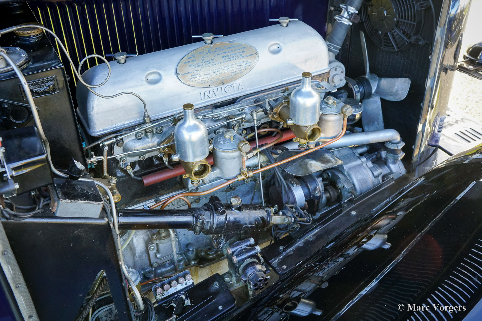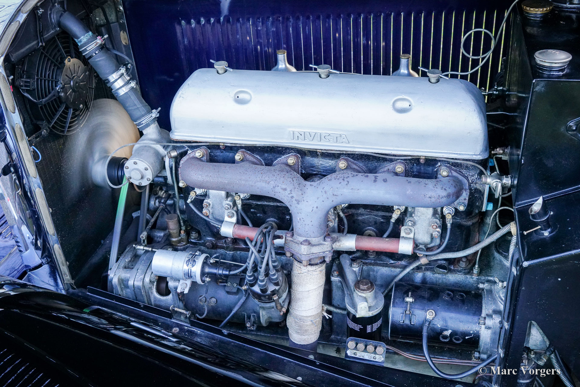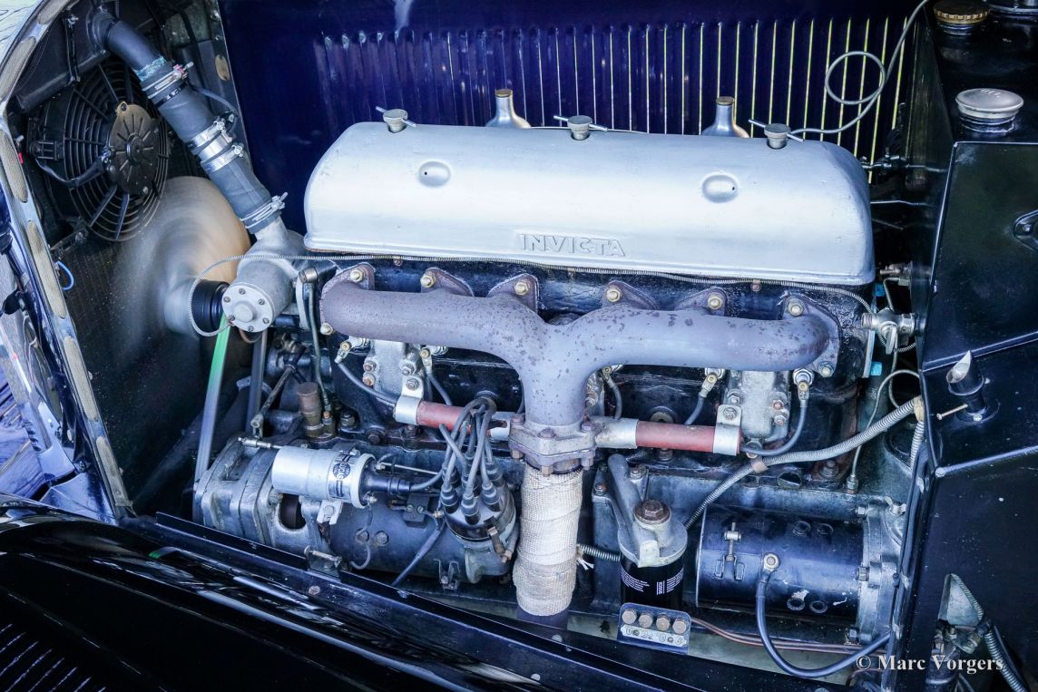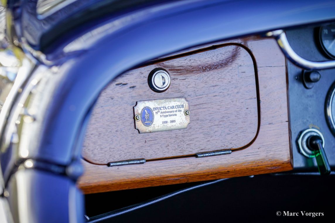 Invicta 4½-liter (serie A), bouwjaar 1931 (eerste registratie 2 januari 1931, bouwjaar 1930). Chassisnummer A204, motornummer 7918. Exterieurkleur Oxfordblauw gecombineerd met een zwart chassis en zwarte spaakwielen. Blauw lederen interieur afgewerkt met blauw tapijt en een zwarte mohair kap. In de jaren 20 verwierf Invicta een reputatie voor prestaties en wegligging. Met de introductie van het 4½-liter model was een legende geboren. Dit zeer dure topmodel stond bekend als een snelle sportwagen met uitzonderlijke acceleratie. De Invicta 4½-liter werd in zeer beperkte aantallen geproduceerd en bewaard gebleven fabrieks- en clubgegevens geven aan dat er in totaal ongeveer 50 auto's zijn gebouwd. De productie vond plaats tussen 1930 en 1933, waarbij het model in verschillende uitvoeringen werd aangeboden, waaronder de Low Chassis en de latere S-Type. De carrosserieën werden geleverd door een reeks hoogwaardige carrosseriebouwers zoals Vanden Plas, Corsica, Lancefield en anderen, wat bijdraagt aan de variatie in de gerapporteerde aantallen. Deze extreem lage productie, gecombineerd met de geavanceerde techniek en sportieve geschiedenis van het model, verklaart de reputatie van de Invicta 4½-Litre als een van de zeldzaamste en meest begeerlijke Britse sportwagens uit de periode vóór de tweede wereldoorlog. De gepresenteerde 4½-Litre, chassis A204, is nog altijd voorzien van de originele open tourer carrosserie met vier zitplaatsen, gebouwd door Corsica uit Londen. De auto is in het verleden gerestaureerd en toont nog nagenoeg alle originele details. Onder de motorkap, waar de krachtige 110 pk sterke Meadows zescilinder-lijnmotor zich bevindt, vindt u ook het originele centrale smeersysteem en een extra koelventilator. De vierversnellingsbak is gekoppeld aan een Tim Payne overdrive. Het dashboard toont een reeks prachtige originele meters (waaronder een zeer bijzondere brandstofmeter) en één meter van een later model. Het interieur is in het verleden opnieuw bekleed en ziet er zeer fraai uit. Deze zeer zeldzame Invicta 4½-liter Corsica Tourer uit de A-serie is afkomstig uit een collectie. De auto rijdt en functioneert uitstekend en wordt geleverd met een uitgebreide historie. Deze Invicta 4½-liter heeft alles wat u zich kunt wensen: prestaties, stijl en zeldzaamheid!