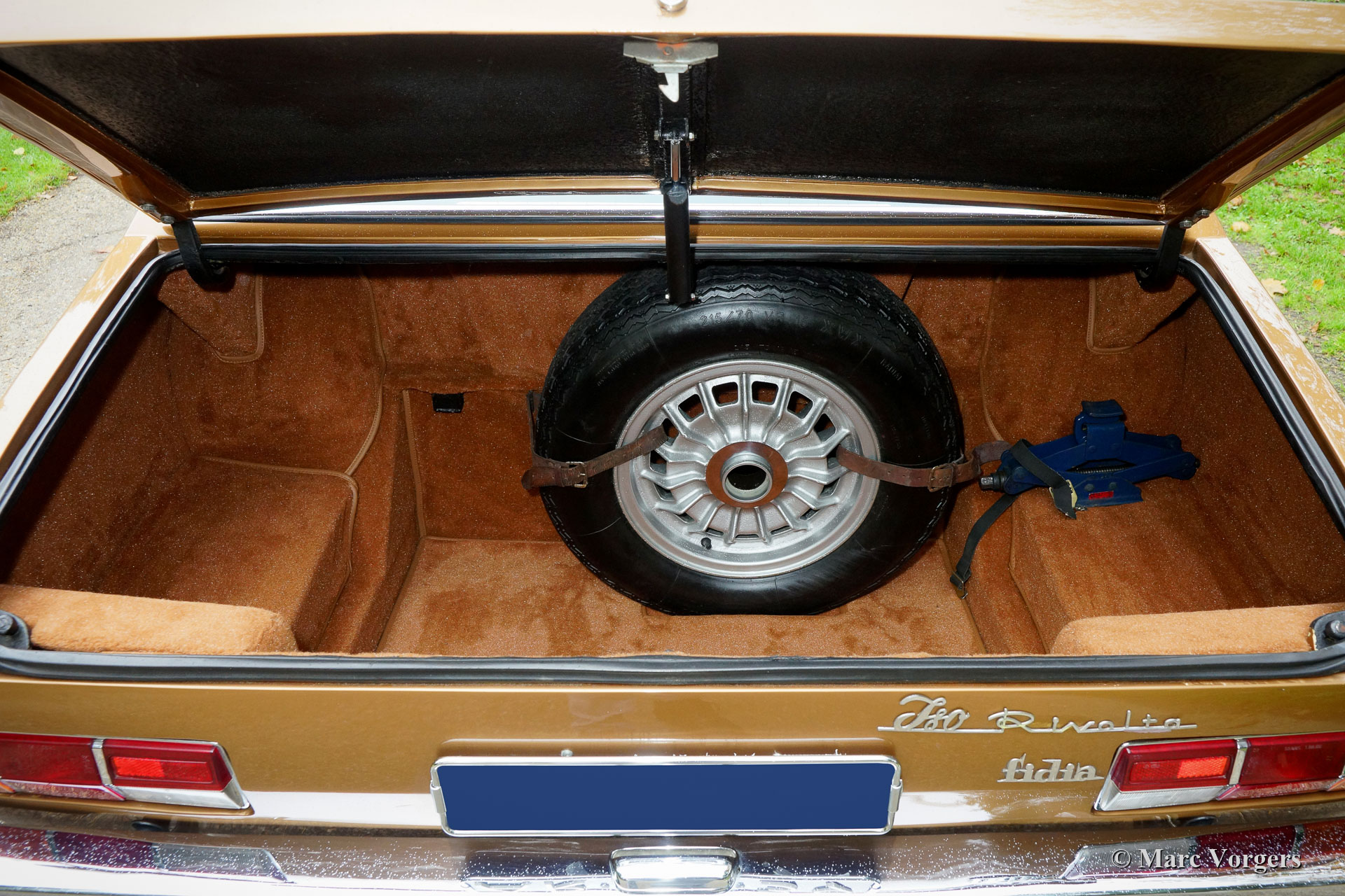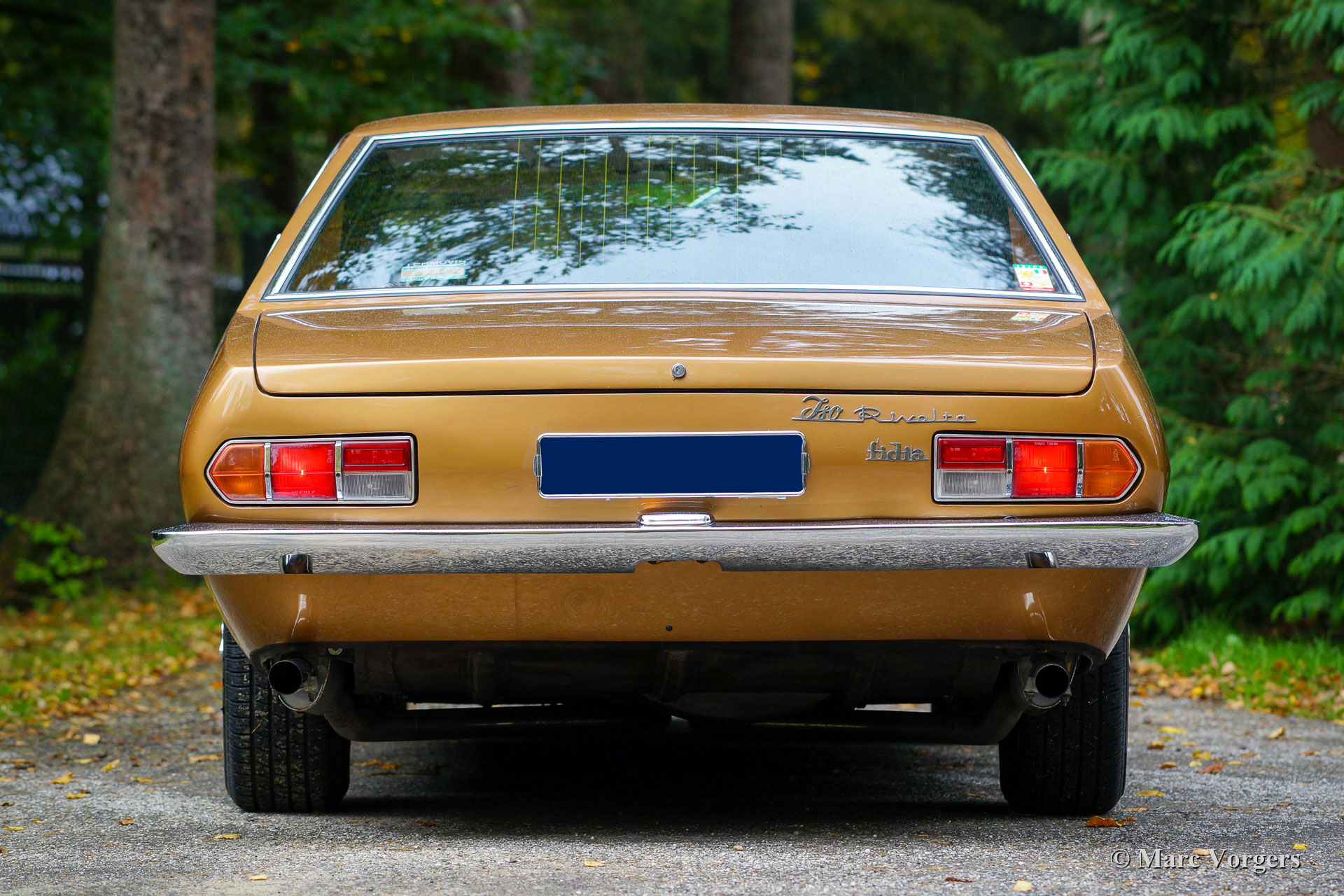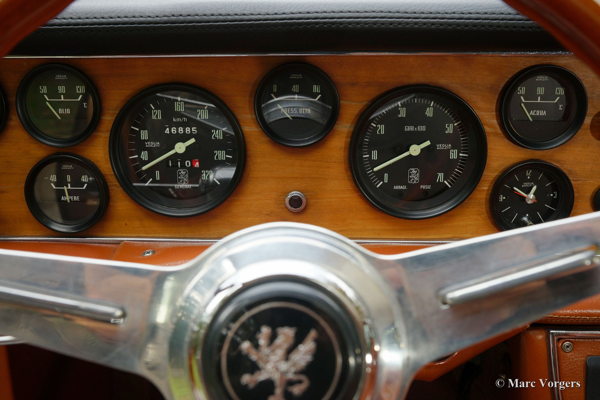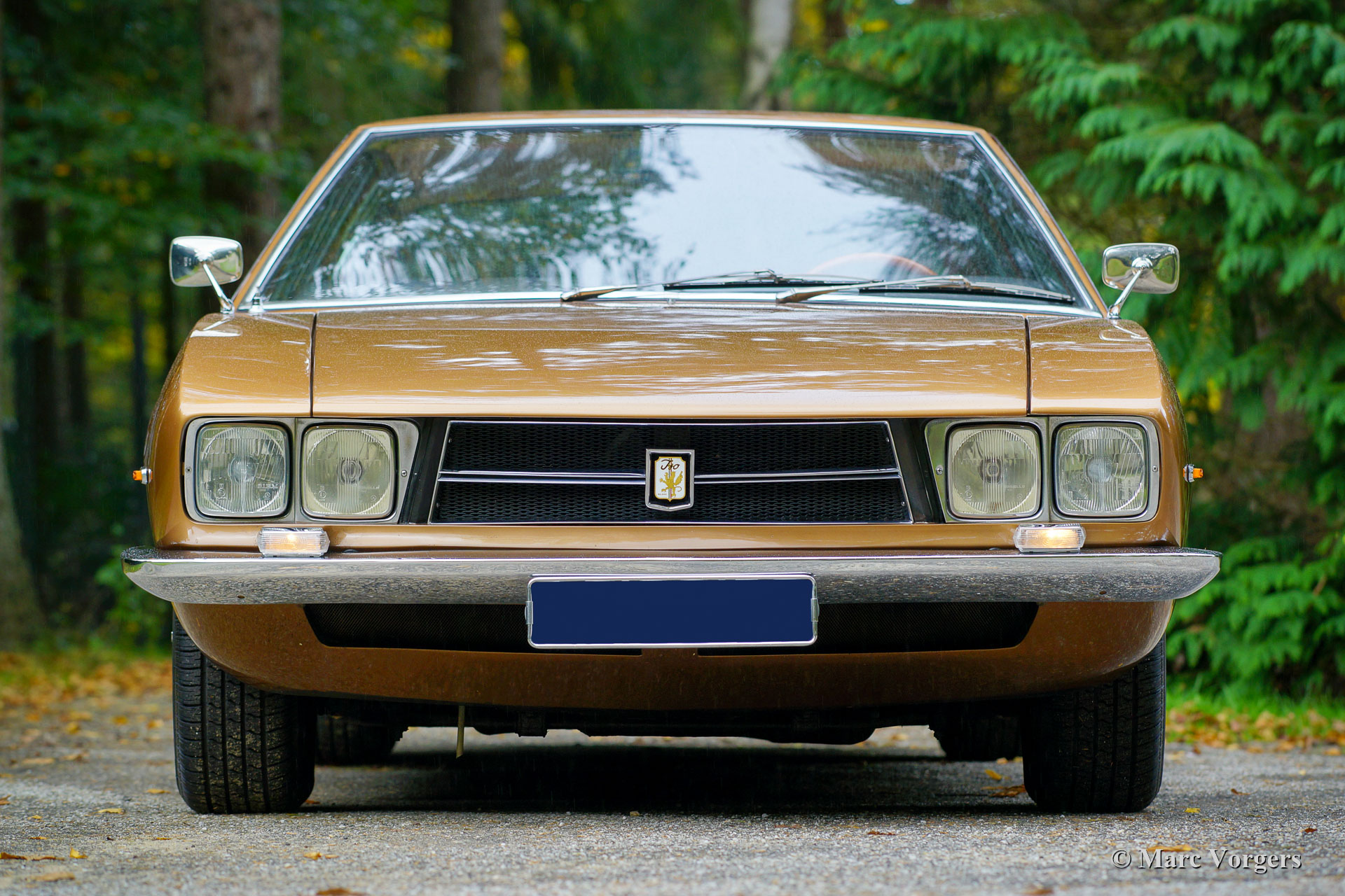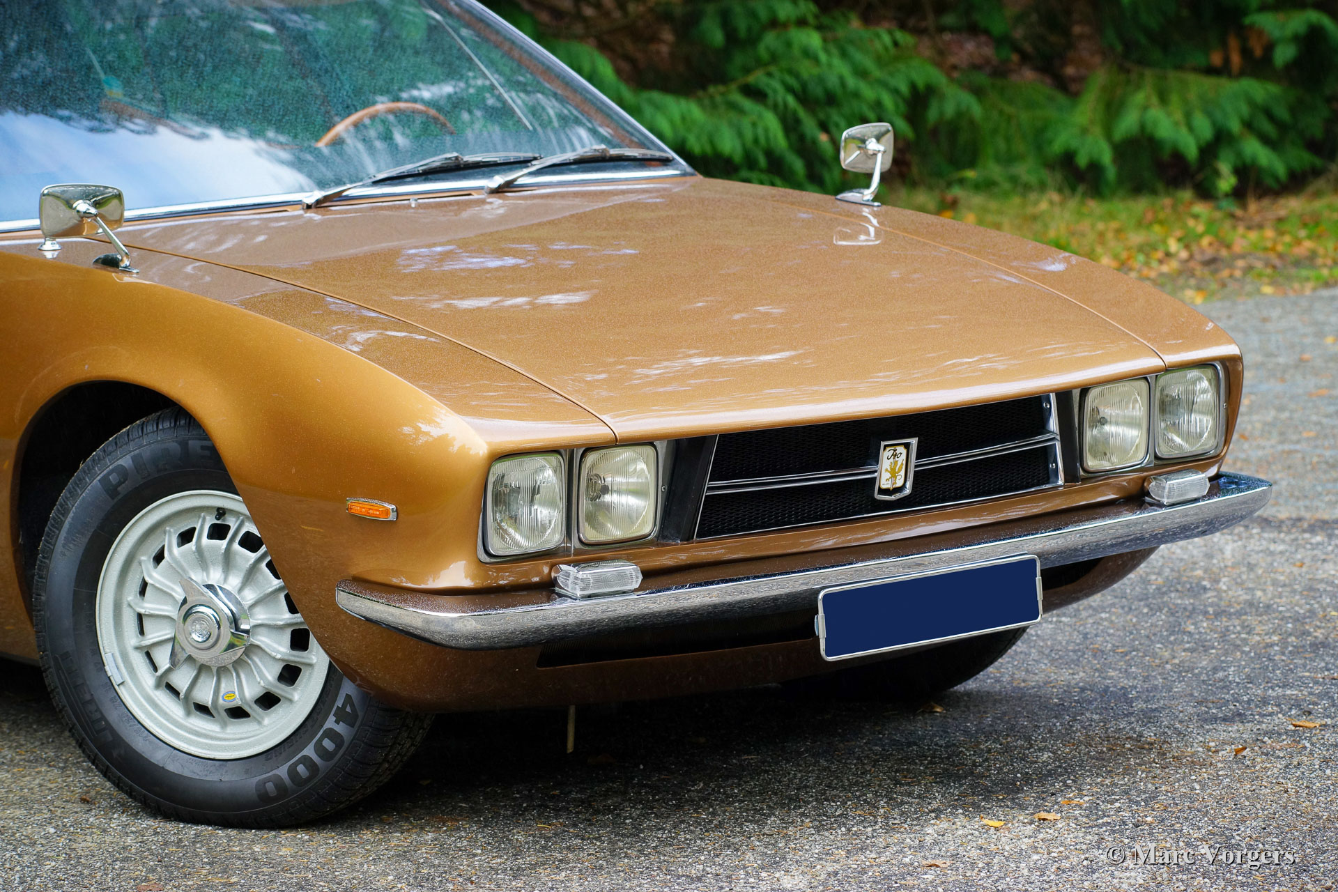 Iso Rivolta Fidia, jaar 1969. Kleur goudbruin metallic gecombineerd met een cognac lederen interieur en lichtbruin tapijt. Deze indrukwekkende en zeer zeldzame Iso Fidia werd nieuw verkocht in Zwitserland. In februari 2015 werd de auto naar Nederland geïmporteerd. De Iso Fidia is zeer zeldzaam, slechts 192 exemplaren werden gebouwd van 1967 tot 1974. De Iso Fidia, ontworpen door Giugiaro bij Ghia, was een van de snelste vierdeurs sedanauto's van de periode. Net als de Iso Rivolta sportwagens werd de Fidia ook aangedreven door robuuste, betrouwbare en zeer krachtige Chevrolet (Corvette) V8-motoren (Ford V8-motoren vanaf 1973). Dit prachtige exemplaar is uitgerust met een Chevrolet 5.4 Liter V8-motor gekoppeld aan een handgeschakelde vierversnellingsbak (volledig gesynchroniseerd). De achteras is voorzien van een sperdifferentieel om de 350 paardenkrachten op de juiste manier op straat te brengen. Deze Iso Fidia verkeert van binnen en van buiten in uitstekende conditie en de auto rijdt geweldig! Het is een heel speciaal gevoel om in een grote Italiaanse luxe sedan met V8 te rijden. Het leren interieur met het houten dashboard ademt pure luxe uit de jaren 1960, de stuurbekrachtiging is een genot en de donder van de prachtige V8-motor op de achtergrond maakt de ervaring compleet. De auto is uitgerust met prachtige originele lichtmetalen velgen, Pirelli P4000-banden en een Becker Mexico stereo cassette radio uit de jaren 1970. Dit is een topexemplaar van de zeer zeldzame Iso Rivolta Fidia.