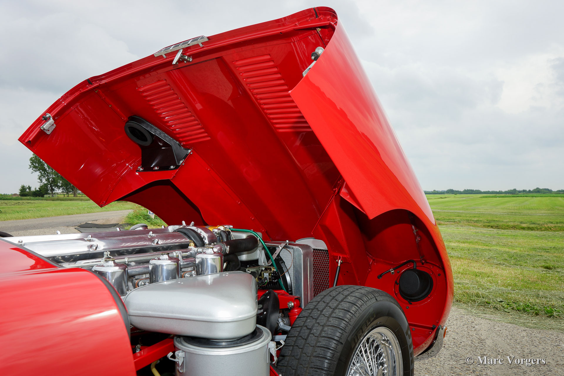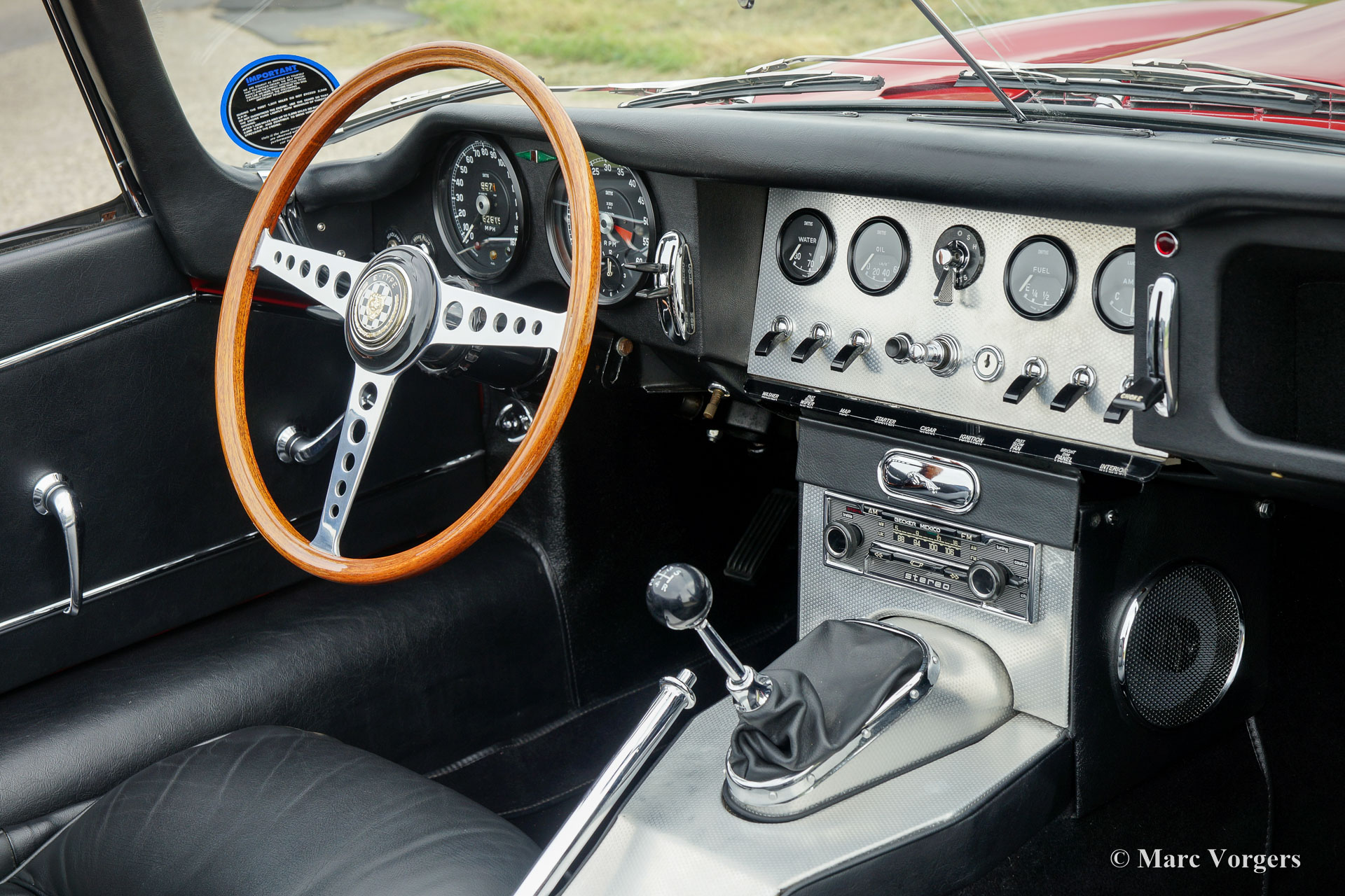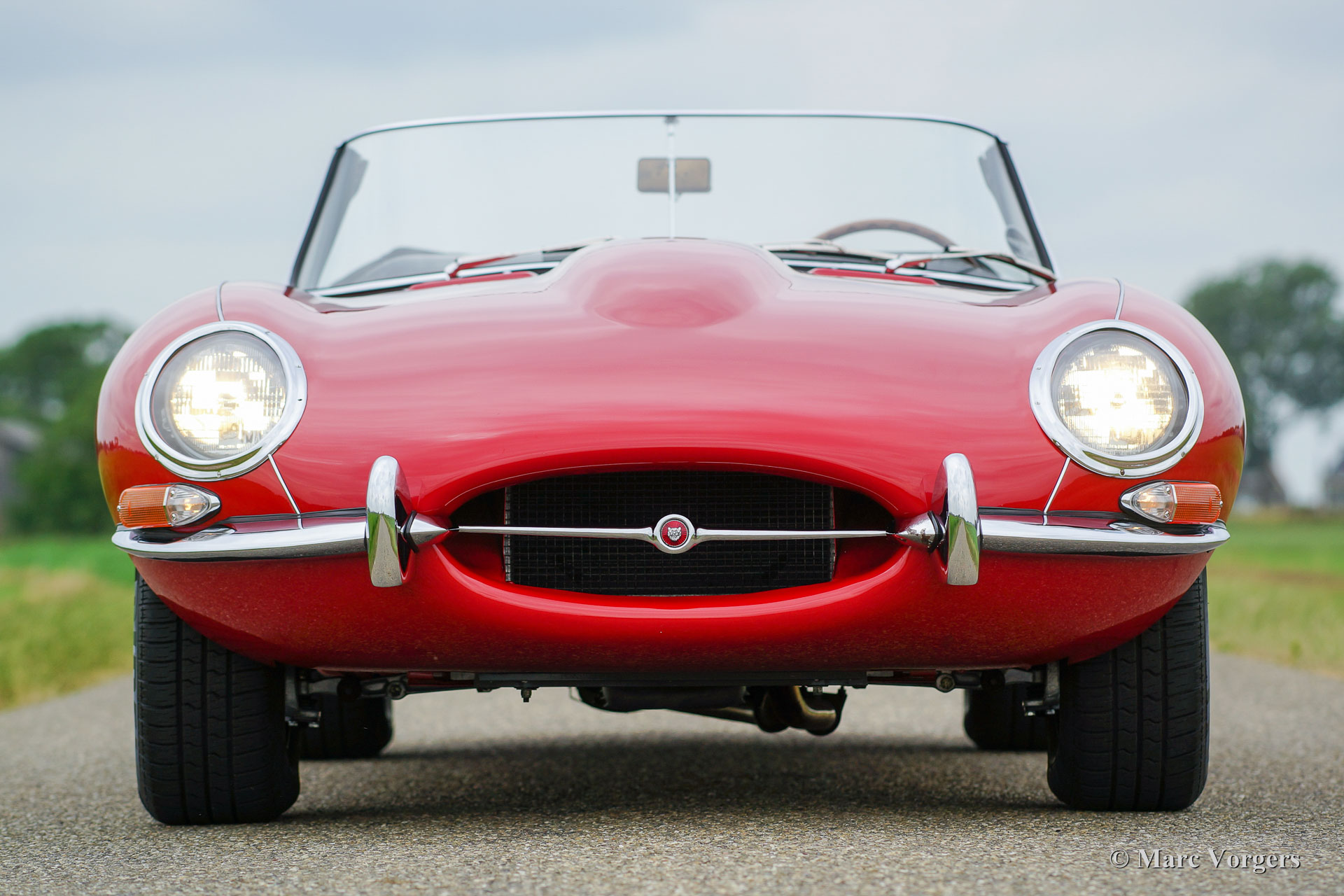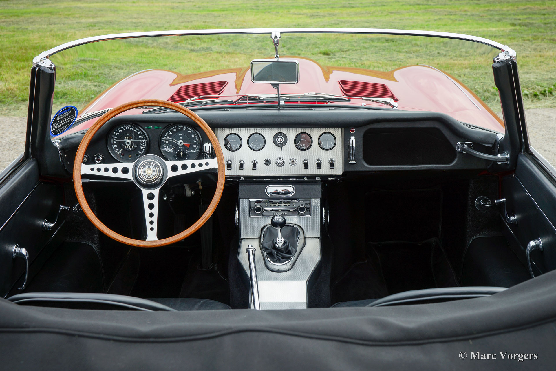 Jaguar E Type 3.8 Litre serie 1 OTS, jaar 1964. Kleur Rood met een zwartleren interieur. Zwarte mohair soft-top en hood cover. Deze fantastische Jaguar E-type roadster uit de eerste serie is uitvoerig en naar zeer hoog niveau gerestaureerd en gereviseerd door een specialist. Deze Jaguar E-type verkeert in topstaat; A1 concours conditie. Werkelijk alles is onder handen genomen en beter dan nieuw. De auto is voorzien van chroom spaakwielen met Pirelli banden. Er is werkelijk niets op deze Jaguar E-type aan te merken vandaar deze korte en bondige beschrijving. Een absoluut TOP-exemplaar!