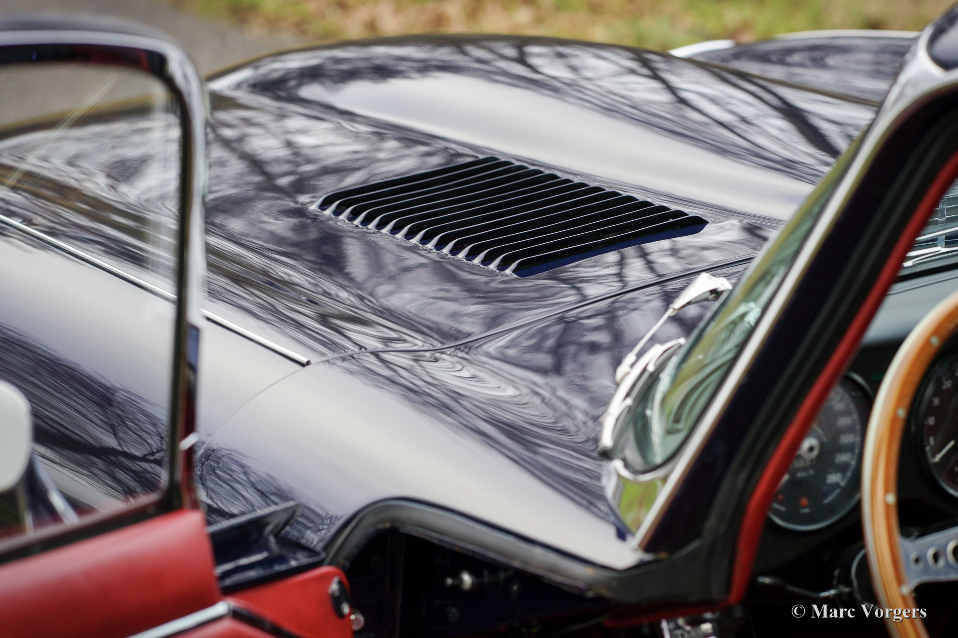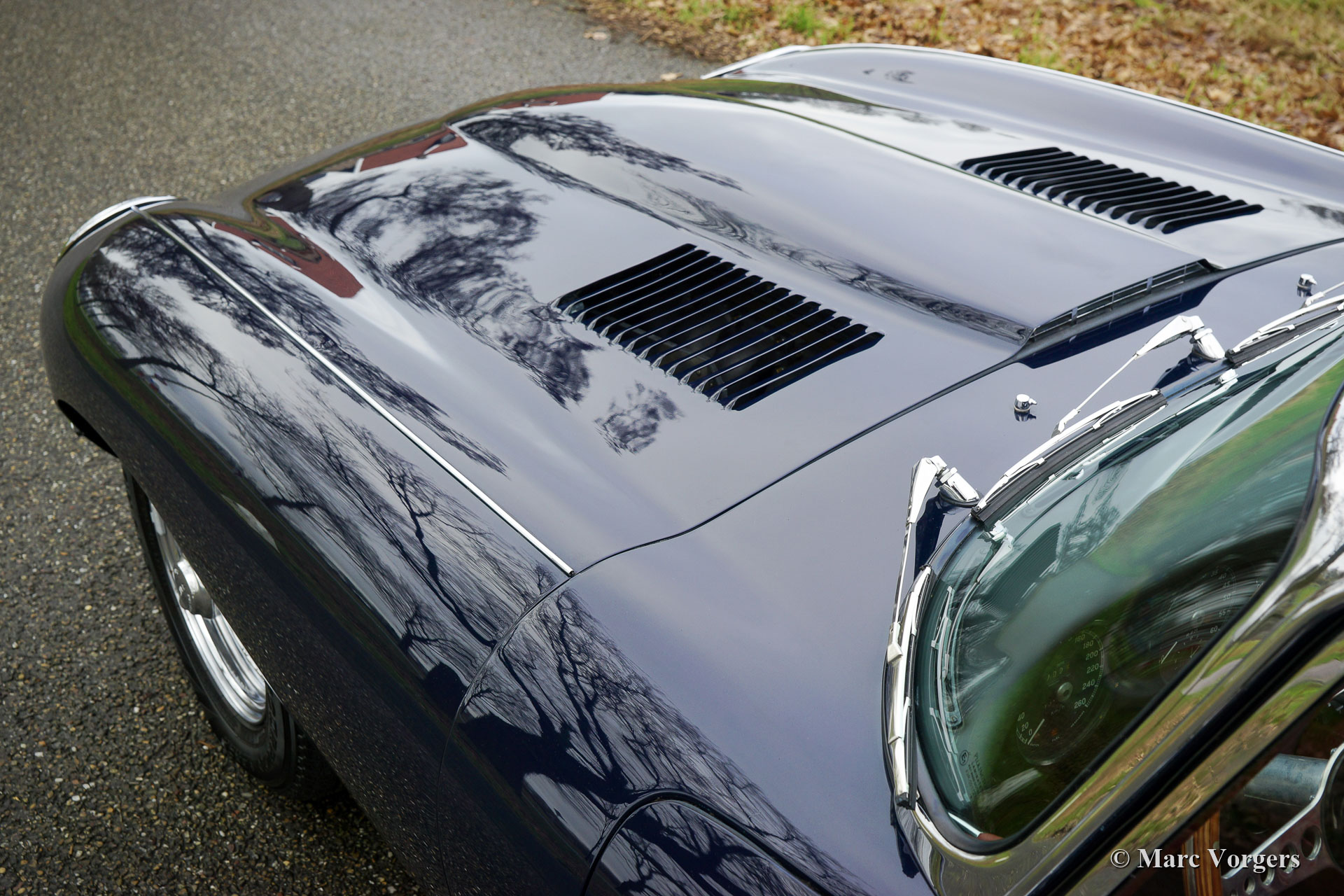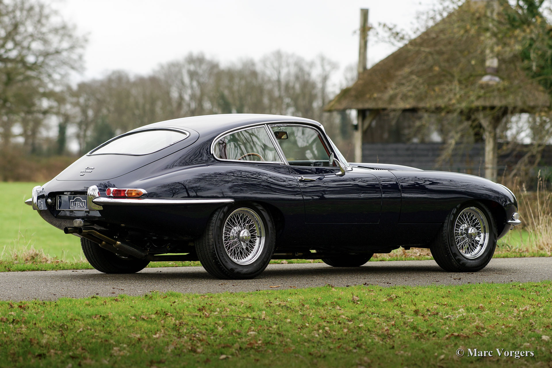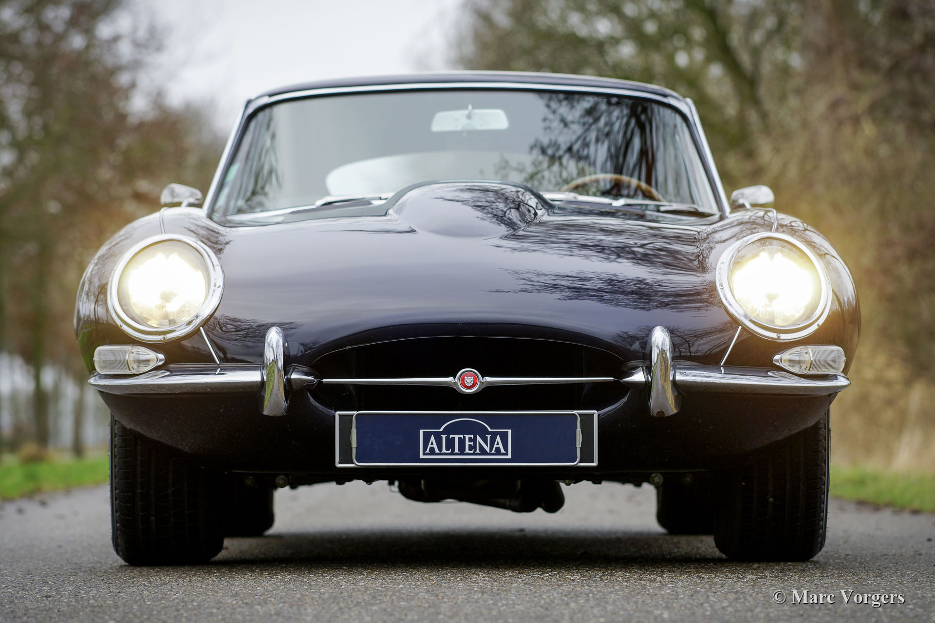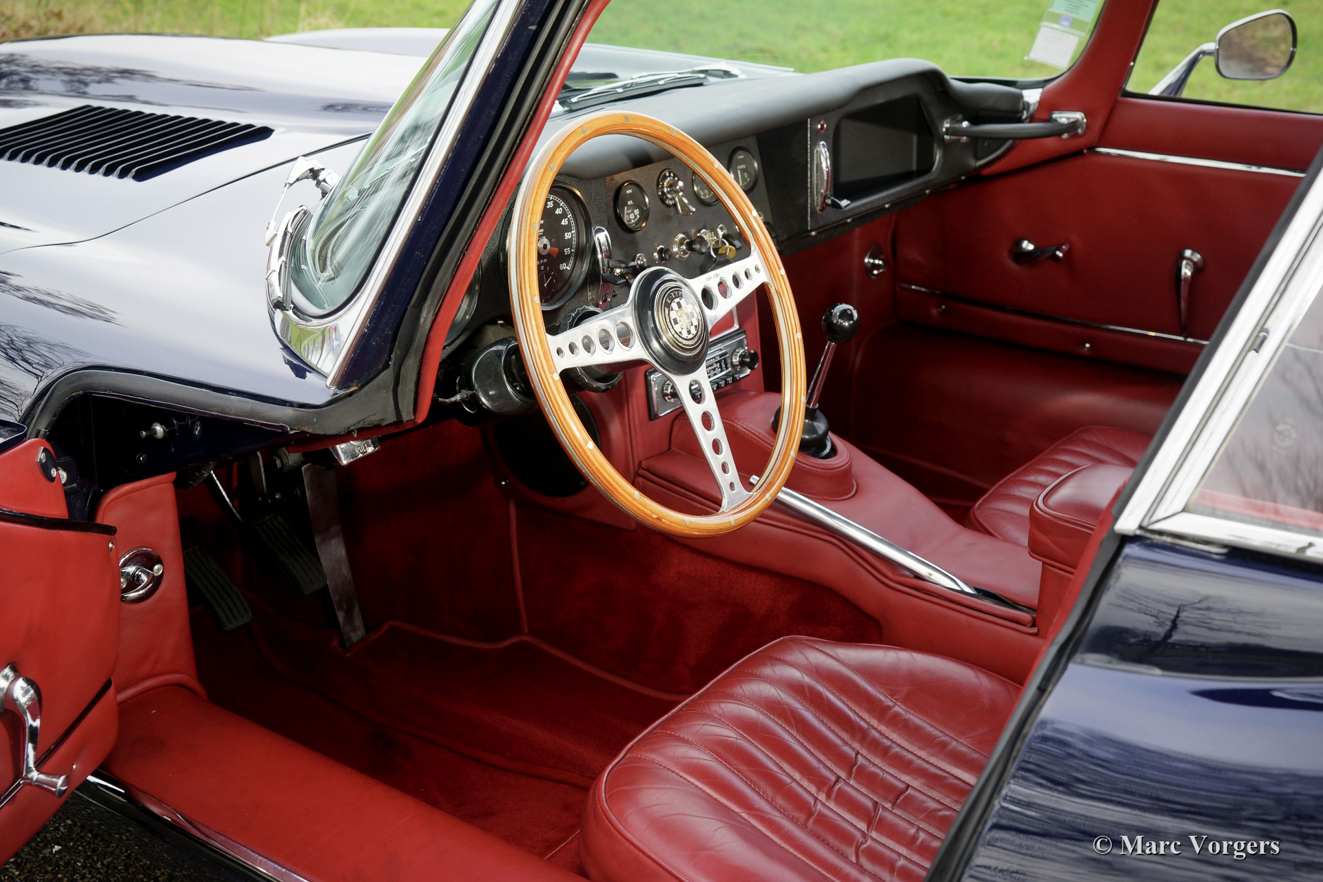 Jaguar E-Type 4.2 Liter Serie 1, 1965. Kleur donkerblauw (Westminster Blue) gecombineerd met een roodlederen interieur (Mulberry) en rood tapijt. Deze fantastische Jaguar E-type Fixed Head Coupé (FHC) werd nieuw verkocht in New York (VS). In 1988 werd de auto geïmporteerd naar Duitsland waar deze tot 2011 door één eigenaar werd gekoesterd. In 2011 werd de auto verkocht aan een Franse verzamelaar. In de jaren 2008-2009 is de auto door een Duitse Jaguar specialist uitgebreid en perfect naar topstaat gerestaureerd. De restauratie is volledig gedocumenteerd met een fotoreportage. Sinds de restauratie is de Jaguar perfect onderhouden en verzorgd; de automobiel verkeert in een sublieme conditie! Deze Jaguar E-type FHC komt uit de zeer gewilde eerste serie voorzien van de 4.2 Liter zescilinder-lijnmotor. Deze E-type toont alle originele details en de auto rijdt perfect! Het is altijd een genot om in een Jaguar E-type FHC te rijden, het uitzicht over de lange motorkap is indrukwekkend en onvergelijkbaar. Deze Jaguar is voorzien van brede chromen spaakwielen met Pirelli 205/70 15 inch banden, een TVD-uitlaatsysteem, een prachtig origineel MotoLita stuur met houten rand en een klassieke Becker Europa autoradio. Deze Jaguar E-type is een prachtig exemplaar voor de veeleisende Jaguar verzamelaar en liefhebber. De auto kan in elk land wereldwijd worden geïmporteerd en geregistreerd.