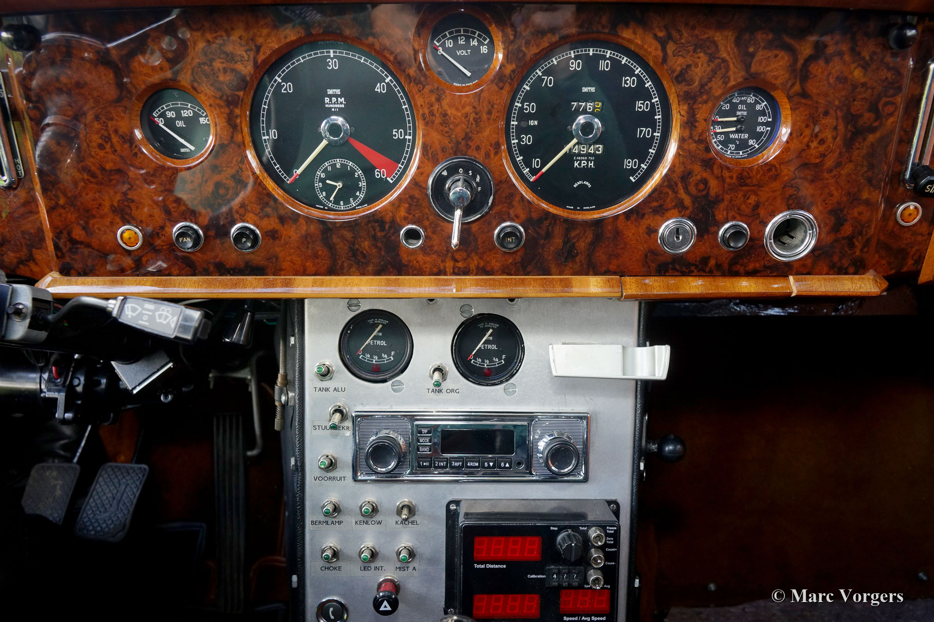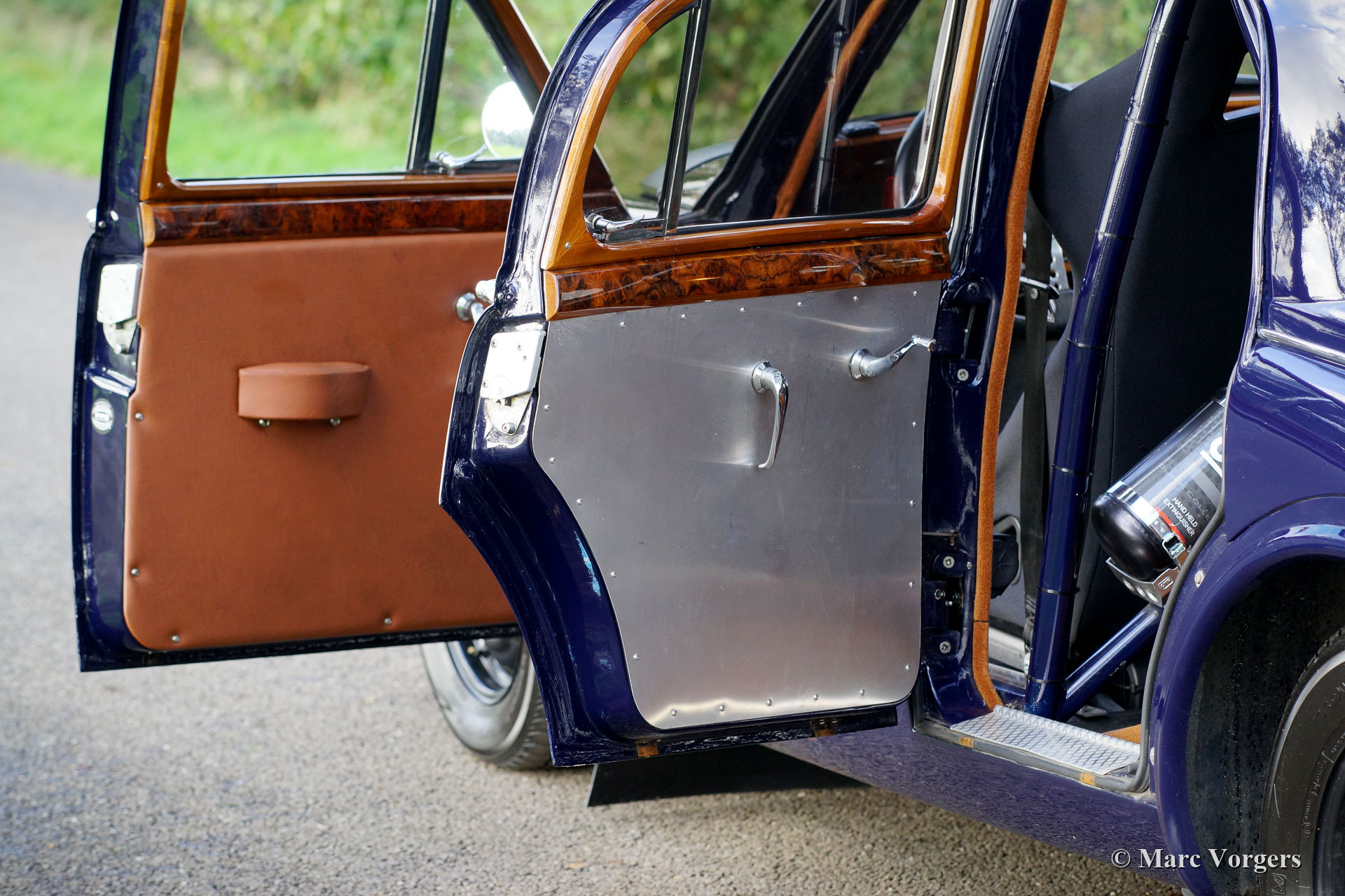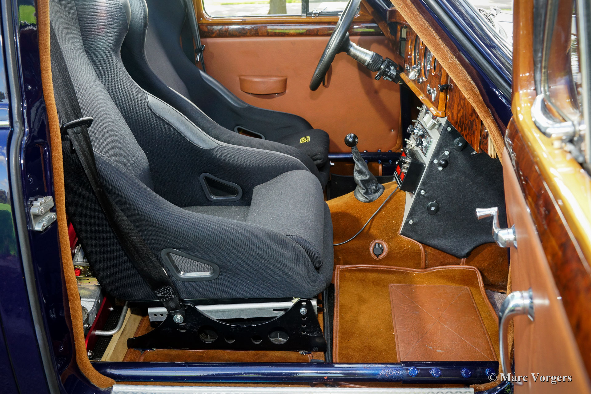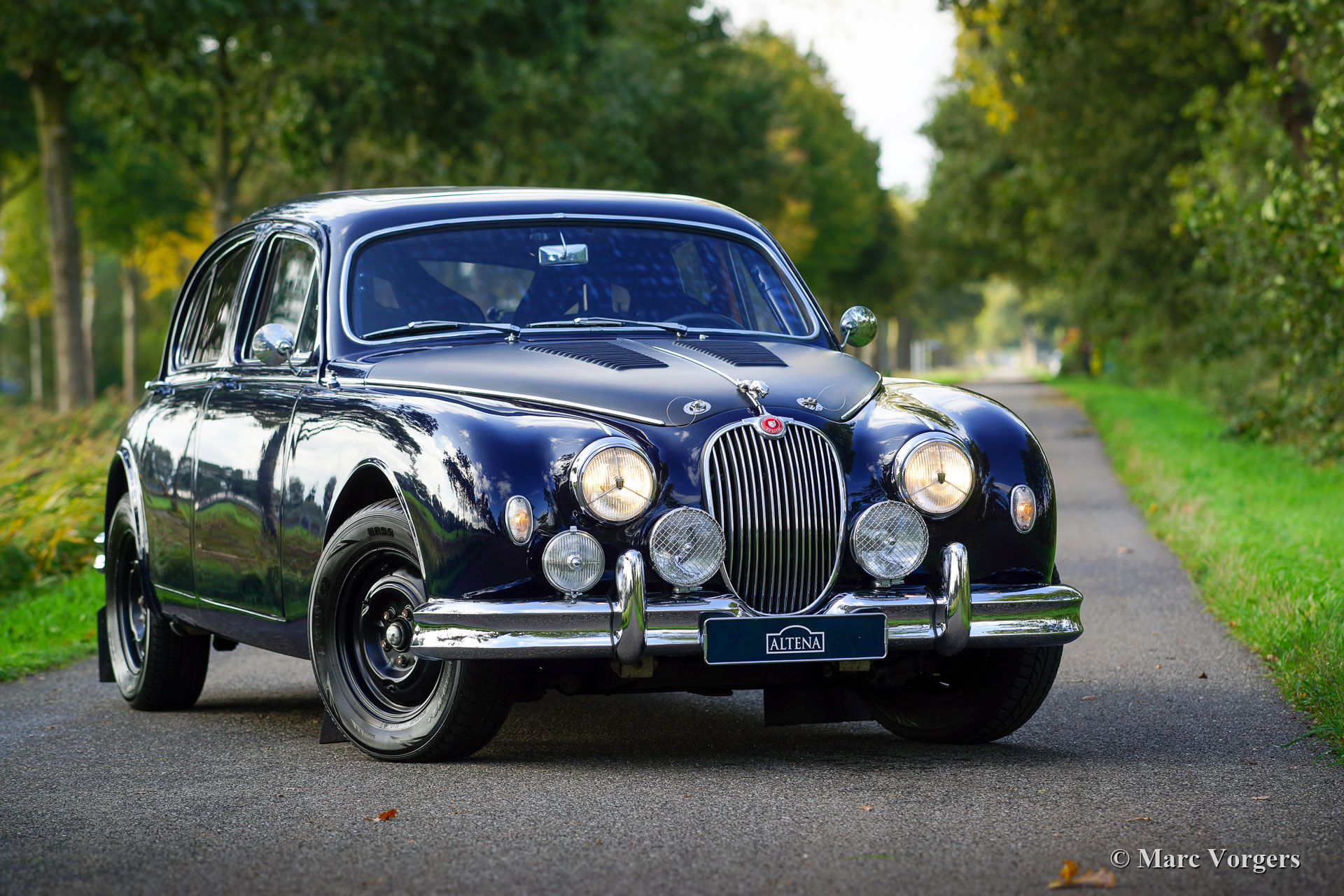 Jaguar Mk I 3.4 Liter rally auto, jaar 1958. Kleur donkerblauw gecombineerd met een zwart/ cognac rally interieur. Zwarte stoffen kuipstoelen en cognac tapijt. Deze indrukwekkende Jaguar Mk I werd in het jaar 2012 vanuit België naar Nederland geëxporteerd. In de jaren 2012 - 2014 werd de auto gestript, gerestaureerd, gereviseerd en gemodificeerd/ geprepareerd om als eersteklas historische rallyauto opgebouwd te worden. Aan elk detail is de grootste aandacht besteed, de arbeidsintensieve bouw heeft meer dan 100.000 euro gekost (!). Een compleet fotoverslag en facturen van de restauratie/ opbouw zijn aanwezig. Deze Jaguar Mk I 3,4-liter rallyauto verkeert in sublieme conditie! De lijst met aanpassingen en verbeteringen is te lang om hier te vermelden, kom deze perfecte rallyauto met uw eigen ogen bekijken. De Jaguar beschikt over een volledige rolkooi, een ORIGINEEL zonnedak (!), EZ elektrische stuurbekrachtiging, een extra aluminium benzinetank, een speciaal elektrisch systeem, speciale en zeer comfortabele rallystoelen, alle rallyinstrumenten, rallylampen en nog veel, veel, veel meer. De rijervaring is indrukwekkend; deze perfect gebouwde Jaguar Mk voelt solide als een rots, het onderstel is sportief en toch comfortabel genoeg, de bediening is snel en precies. Dit is een topkwaliteit historische rallyauto voor de veeleisende langeafstand rallyrijder!