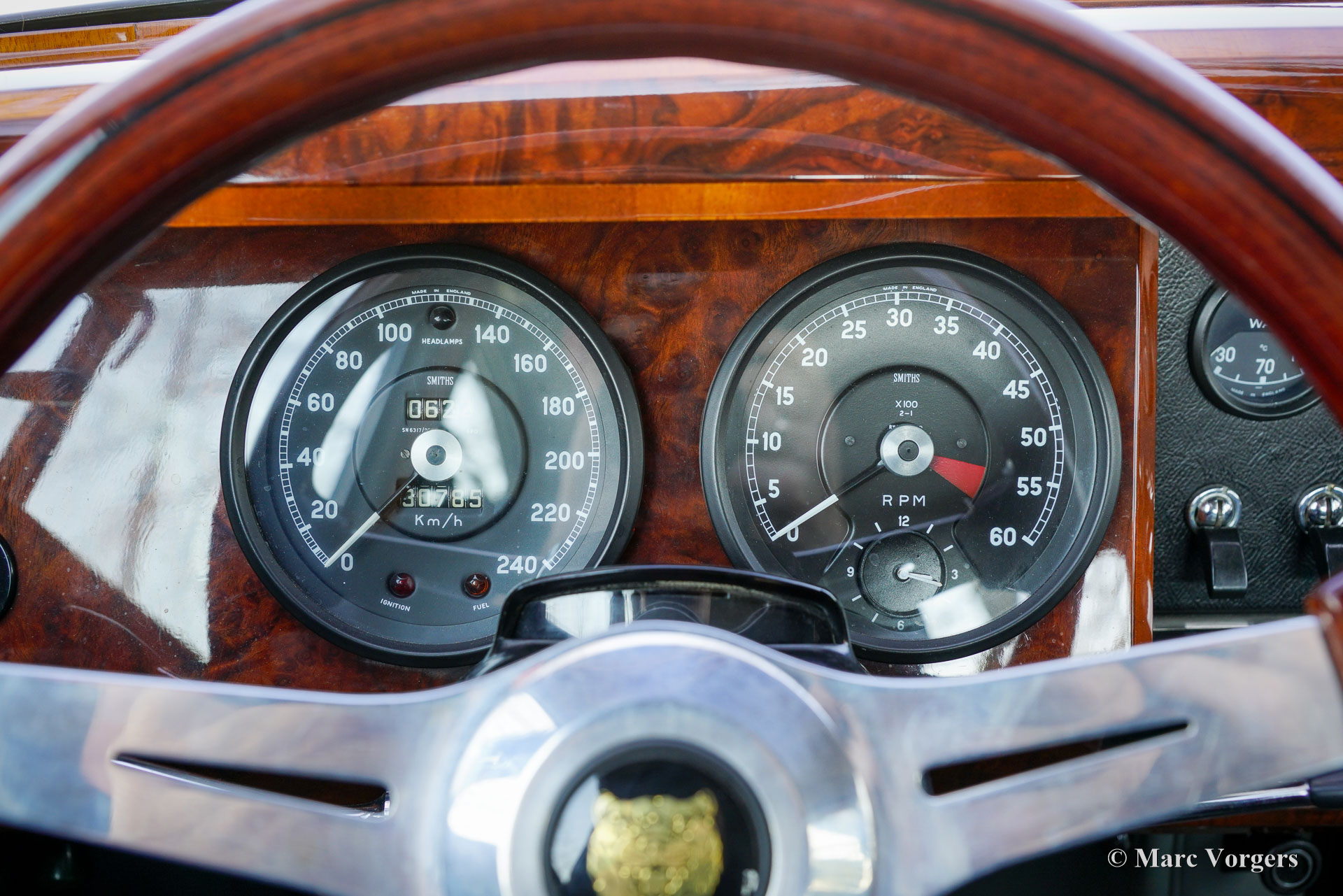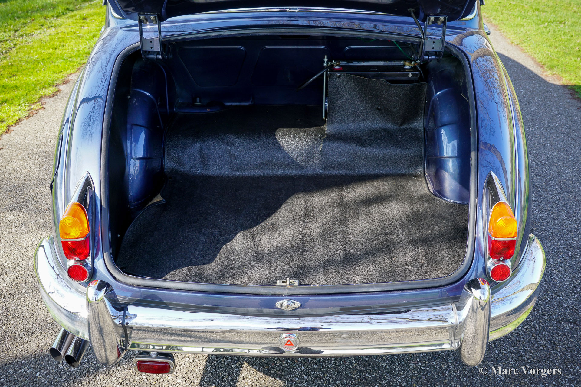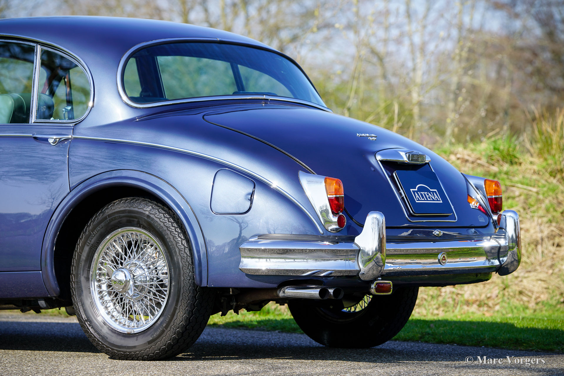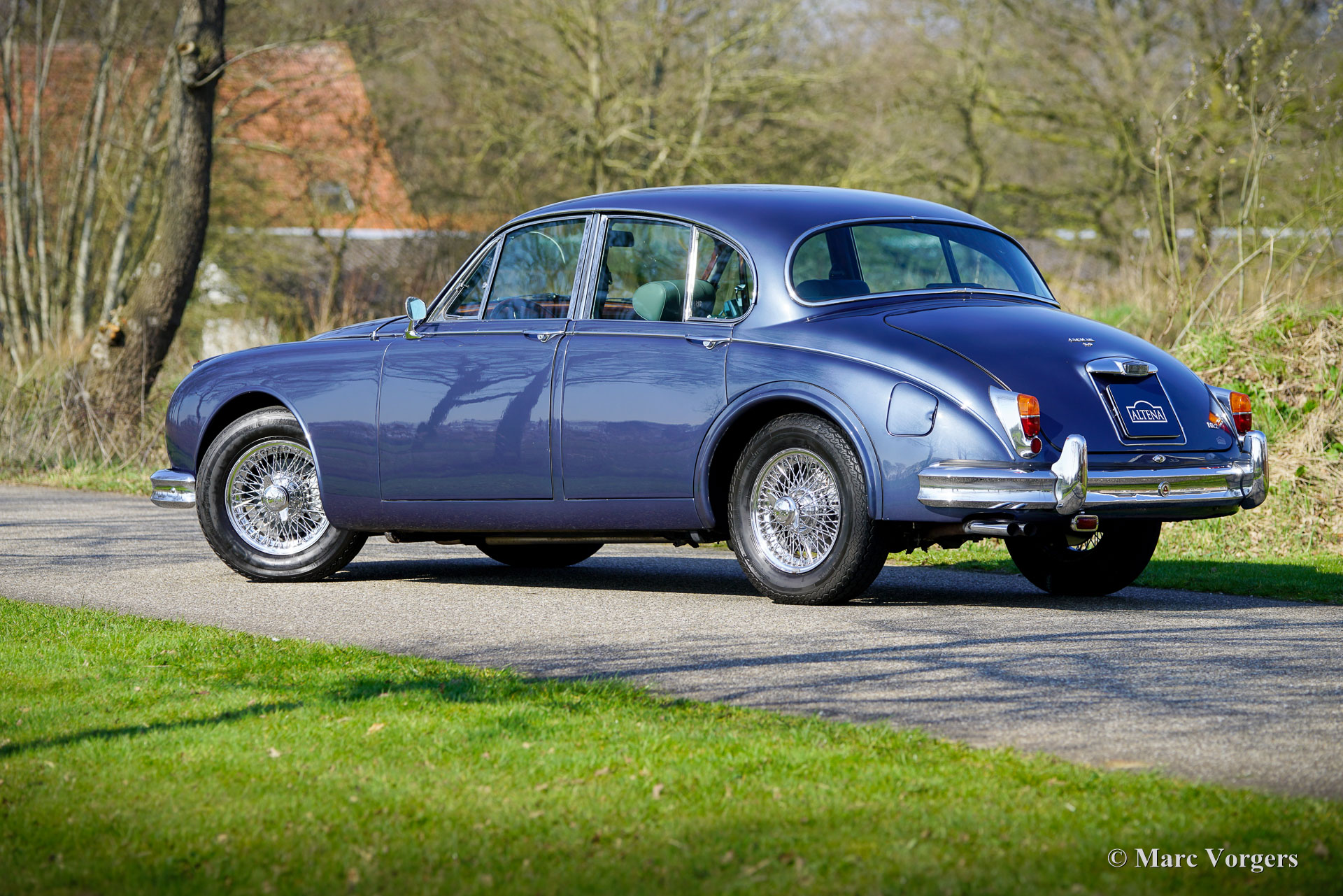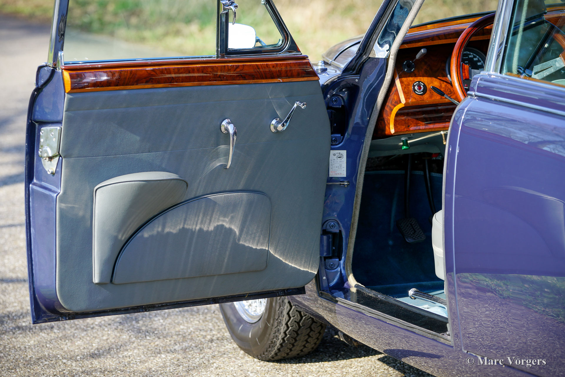 De carrosserie is tot op het metaal aangepakt en uitgebreid behandeld tegen roest. Tijdens de opbouw zijn diverse moderniseringen doorgevoerd waardoor de auto merkbaar beter rijdt dan een standaard Mk II. De 3,8‑liter zescilinder is volledig gereviseerd en licht getuned voor extra vermogen waarbij een oliekoeler, elektrische ventilator en grotere radiator aangebracht zijn voor betere koeling. De motor is gekoppeld aan een volledig gesynchroniseerde vijfbak, wat het comfort en de bruikbaarheid in het huidige verkeer vergroot. Het onderstel is opgebouwd met aangepaste veren, instelbare schokdempers, verbeterde stabilisatoren en een achteras met gewijzigde eindoverbrenging. De besturing is voorzien van stuurbekrachtiging afkomstig van een XJS. De remmen zijn rondom opgewaardeerd met XJ6 schijven en remklauwen en een krachtigere rembekrachtiger. Het interieur is volledig vernieuwd met behoud van de klassieke uitstraling. Leder, houtwerk en tapijt zijn vernieuwd en gerestaureerd, extra isolatie vermindert rijgeluiden en de gemonteerde XJS‑stoelen bieden meer comfort. Moderne voorzieningen zoals cruise control, centrale vergrendeling, getint glas en halogeenverlichting zijn discreet geïntegreerd. Een fraai Mota‑Lita stuur met houten rand geeft de ‘finishing touch’ aan het prachtige interieur. De auto is sinds de restauratie goed onderhouden en regelmatig bereden, waardoor hij direct inzetbaar is. Door de fraaie inpassing van de verbeteringen blijft de bijzondere sfeer van een Britse jaren‑zestig‑saloon behouden. De Jaguar Mk II met 3.8 liter motor en handgeschakelde versnellingsbak was het topmodel van de serie. Dit verbeterde exemplaar doet daar wat prestaties, comfort, veiligheid en finesse nog een stevige schep bovenop. Dit is een ideale Jaguar Mk II voor Jaguar liefhebbers die zich regelmatig met een klassieker in het moderne verkeer willen begeven en daar geen concessies aan willen doen.