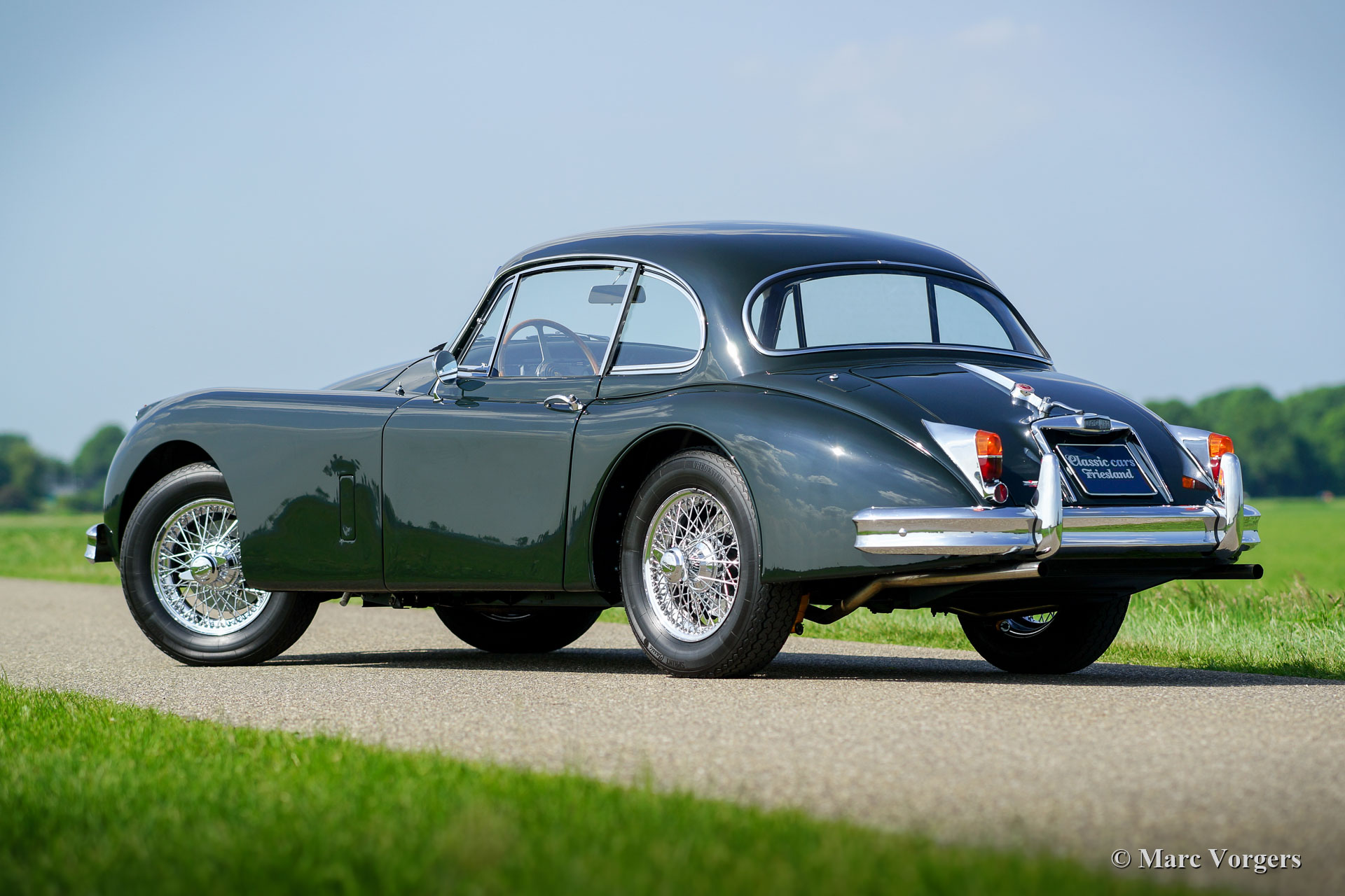 Jaguar XK 150 3.8 Liter FHC, jaar 1960. ‘Matching numbers’; een Heritage-certificaat om dit aan te tonen is aanwezig. Kleur British Racing Green gecombineerd met een zwartleren interieur. Deze fantastische Jaguar XK 150 is in het verleden volledig gerestaureerd door Brooklands Classic Cars. Dit bedrijf stond bekend om zijn hoogwaardige en gedetailleerde restauraties van Jaguar XK-modellen. Een fotoreportage en facturen van de restauratie zijn aanwezig. Het chassis werd gezandstraald en zwart gemoffeld, de carrosserie werd gerestaureerd vanaf de blanke plaat. De passing van de plaatwerkdelen is subliem en het lakwerk is prachtig. Natuurlijk werden alle mechanische componenten volledig gereviseerd en werd er een nieuwe kabelboom aangebracht. Deze geweldige Jaguar XK 150 3.8-liter Fixed Head Coupe (FHC) verkeert in sublieme topstaat en de auto rijdt perfect! De auto is voorzien van verchroomde spaakwielen, een Getrag 5-traps handgeschakelde versnellingsbak, schijfremmen op alle wielen, Vredestein Sprint Classic banden, een roestvrijstalen uitlaat, Kenlow elektrische koelventilator, Jaguar koplampen, een Moto-lita sportstuurwiel met houten rand, een walnoothouten dashboard, een klassieke Philips-autoradio, extra Lucas verstralers en een Brakelock antidiefstalsysteem. De originele gereedschapset is ook aanwezig. Dit is een XK 150 FHC van topkwaliteit af fabriek uitgerust met de krachtigste 3.8 liter motor!