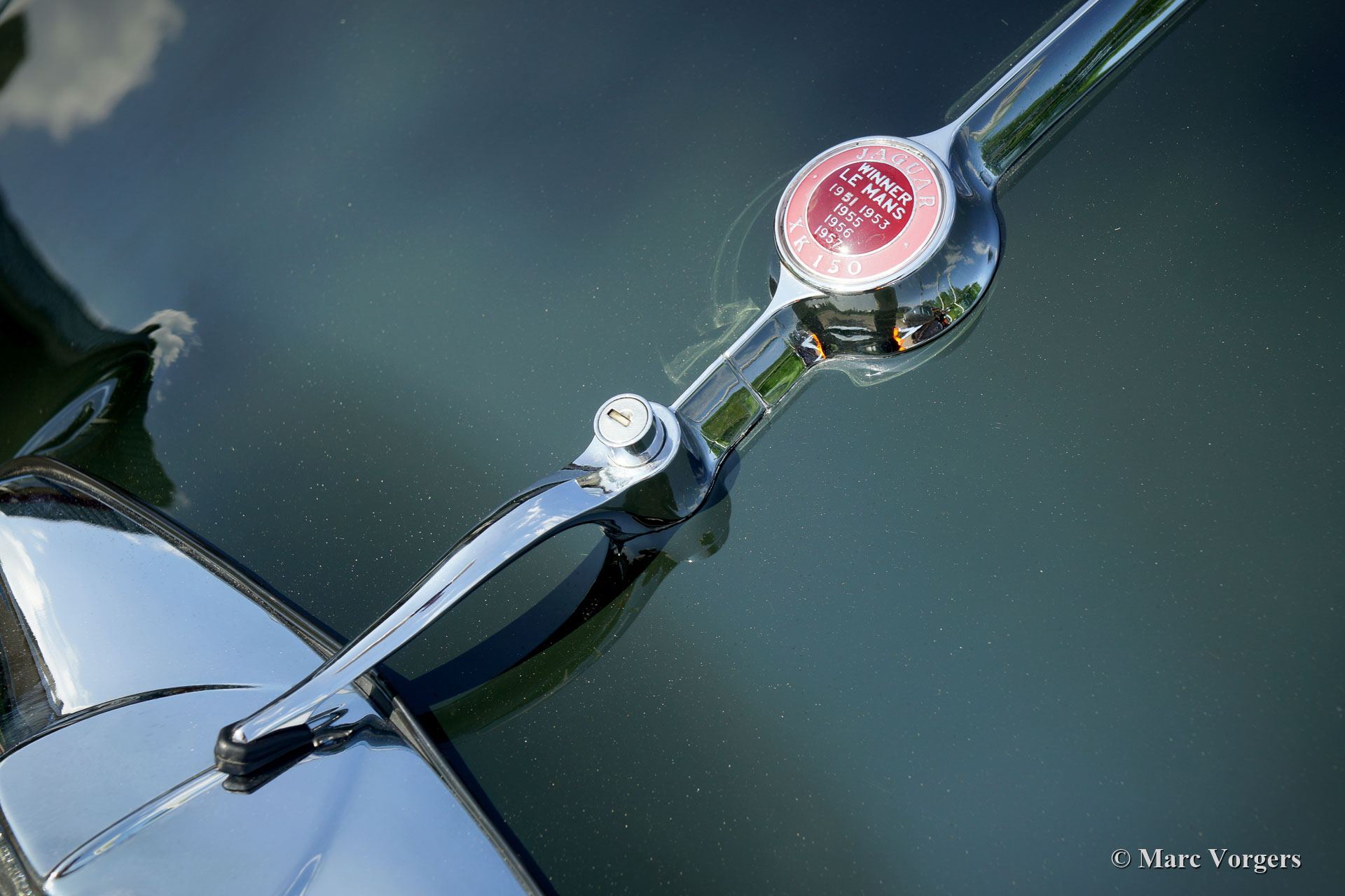 De Jaguar XK 150 kwam in 1957 op de markt als opvolger van de Jaguar XK 140. Het onderstel van de XK 150 was grotendeels gelijk aan dat van de XK 140, maar was nu voorzien van een nieuwe, bredere, carrosserie. De vormgeving was wederom zeer fraai maar ten opzichte van de XK 120 en XK 140 iets minder dynamisch. De carrosserie was minder slank en de karakteristieke spatbordlijnen waren nu minder uitgesproken aflopend vormgegeven. De toegenomen breedte van de carrosserie resulteerde in de toepassing van een bredere grille welke, volgens beste Jaguar traditie, op zeer fraaie wijze in de vormgeving werd opgenomen. Tevens werd voor het eerst een spijlloze, panoramische, voorruit op de XK serie toegepast.