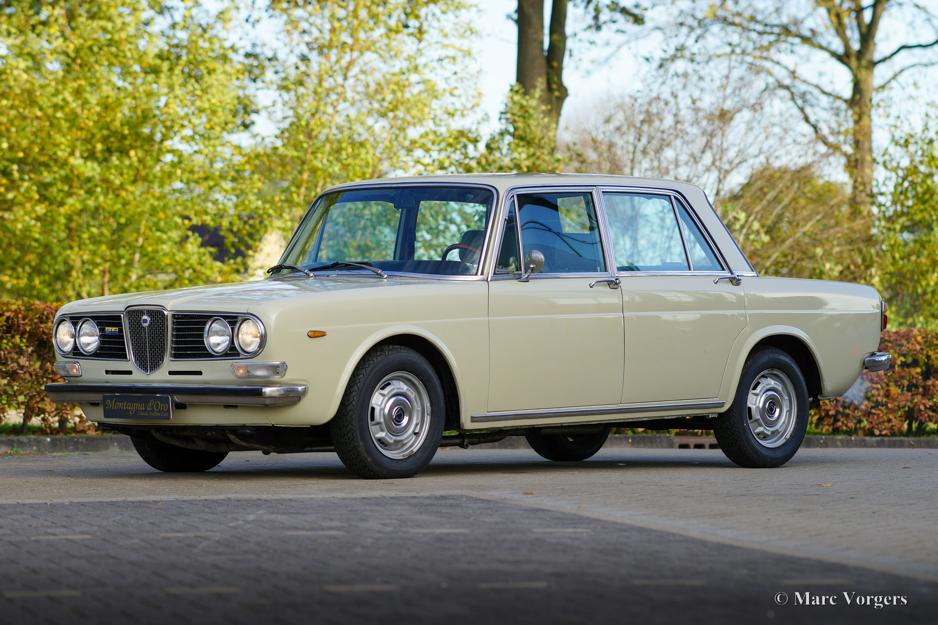 Lancia 2000 Berlina ‘Inezione’, jaar 1975. Kleur grijs gecombineerd met een tweekleurig groen/ lichtgroen stoffen interieur afgewerkt met grijs tapijt. De Lancia 2000 Berlina (sedan) is de laatste ontwikkeling van de Lancia Flavia Berlina. De luxueuze modelserie werd geactualiseerd met een nieuwe styling voor en achter en het elegante interieur werd opgewaardeerd met verbeterde instrumenten en accessoires. In 1972 werd het 2000 ‘Inezione’-model met elektronische brandstofinjectie gepresenteerd, dit model was standaard uitgerust met een 5-versnellingsbak. Deze super originele Lancia is nieuw verkocht in Italië waar de auto drie eigenaren heeft gekend. De auto is nieuw verkocht aan D. de Piccoli in Milaan, de tweede eigenaar was M. Cosimo, de derde eigenaar was F. Fontana. Deze prachtige automobiel is recent geïmporteerd uit Italië, de teller geeft 32.975 kilometer aan. Deze Lancia 2000 ‘Inezione’ wordt compleet geleverd met alle originele boekjes en de auto is voorzien van airconditioning! Verder staat de auto op prachtige en dure Pirelli Classic CN 36 banden (inclusief reservewiel) en wordt er binnenkort een nieuwe uitlaat gemonteerd. Deze Lancia 2000 is een ware tijdcapsule in een prachtige en zeer goede originele staat, een geweldige vondst voor de Lancia liefhebber/ verzamelaar.