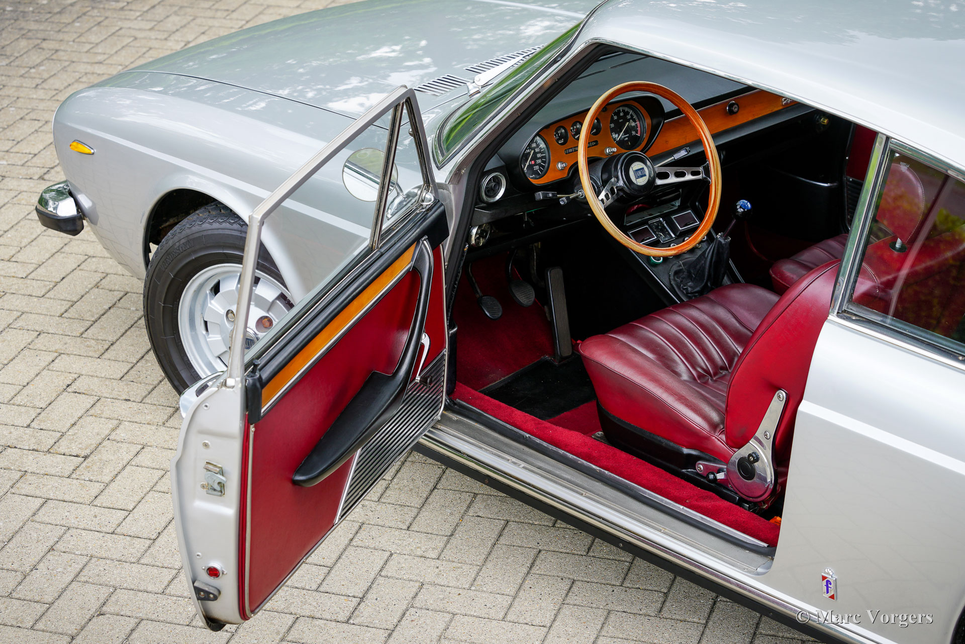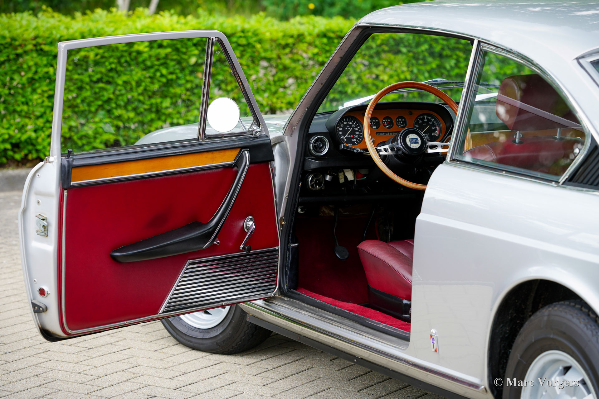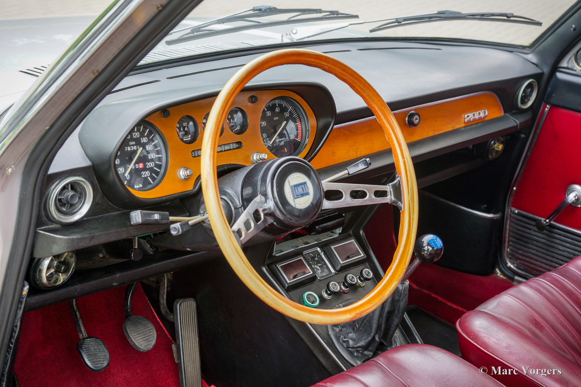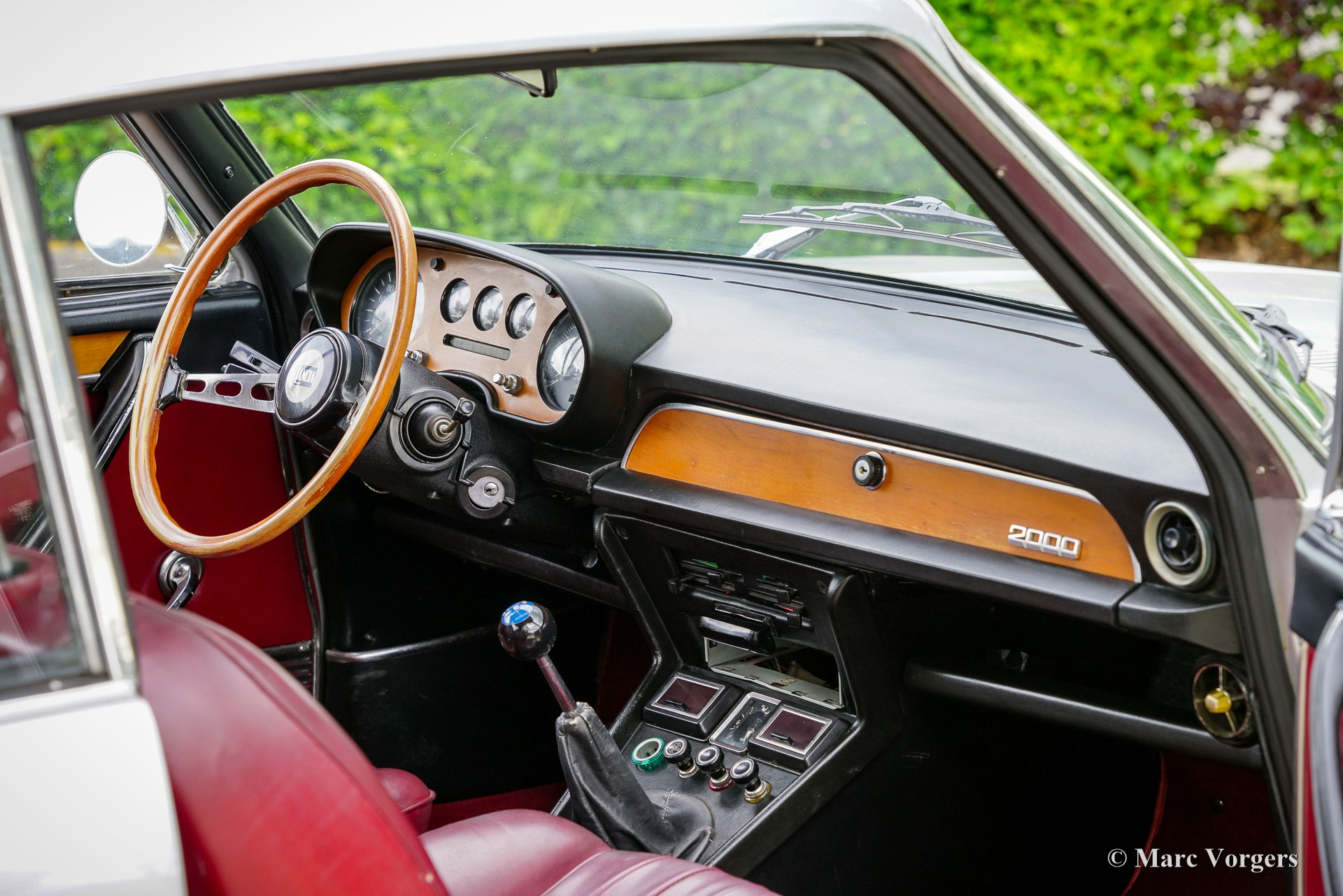 Lancia 2000 Coupé, jaar 1972 (eerste registratie 15 september 1972). Chassisnummer 820.230.001.445, motornummer 820.200.002.048. Kleur Grigio (grijs) metallic gecombineerd met een rood kunstlederen interieur en rood tapijt. Deze mooie Lancia 2000 Coupé werd nieuw verkocht in België, op 15 december 1984 werd de auto in Nederland geregistreerd. De kilometerteller geeft nu 76.361 km aan. De automobiel verkeert in een goede conditie met enige lichte beschadigingen op de carrosserie en de lak. De Lancia 2000 Coupé is de opvolger van de Lancia Flavia Coupé 2000, maar de auto's zijn nagenoeg identiek. Het originele en zeer stijlvolle ontwerp van de Pininfarina Lancia Flavia Coupé werd op aan paar details aangepast. De luchtinlaat op de motorkap werd verwijderd, de radiatorgrille kreeg een chromen omlijsting. De belangrijkste verbetering was de introductie van een 5-versnellingsbak. De watergekoelde 1991 cc viercilinder boxermotor levert 115 pk en geeft de auto een topsnelheid van 185 km/u: uitstekende prestaties voor een auto uit begin jaren 70! De Lancia 2000 Coupé is een zeldzame en exclusieve auto, er werden slechts 1399 exemplaren van de 2000 Coupé gebouwd. Deze Lancia 2000 coupé is een echte rijdersauto waarvan die met volle teugen genoten kan worden! De Lancia (Flavia) 2000 Coupé is een van onze grote favorieten, wij hebben altijd een selectie fraaie exemplaren, in verschillende prijsklassen, in onze showroom staan.