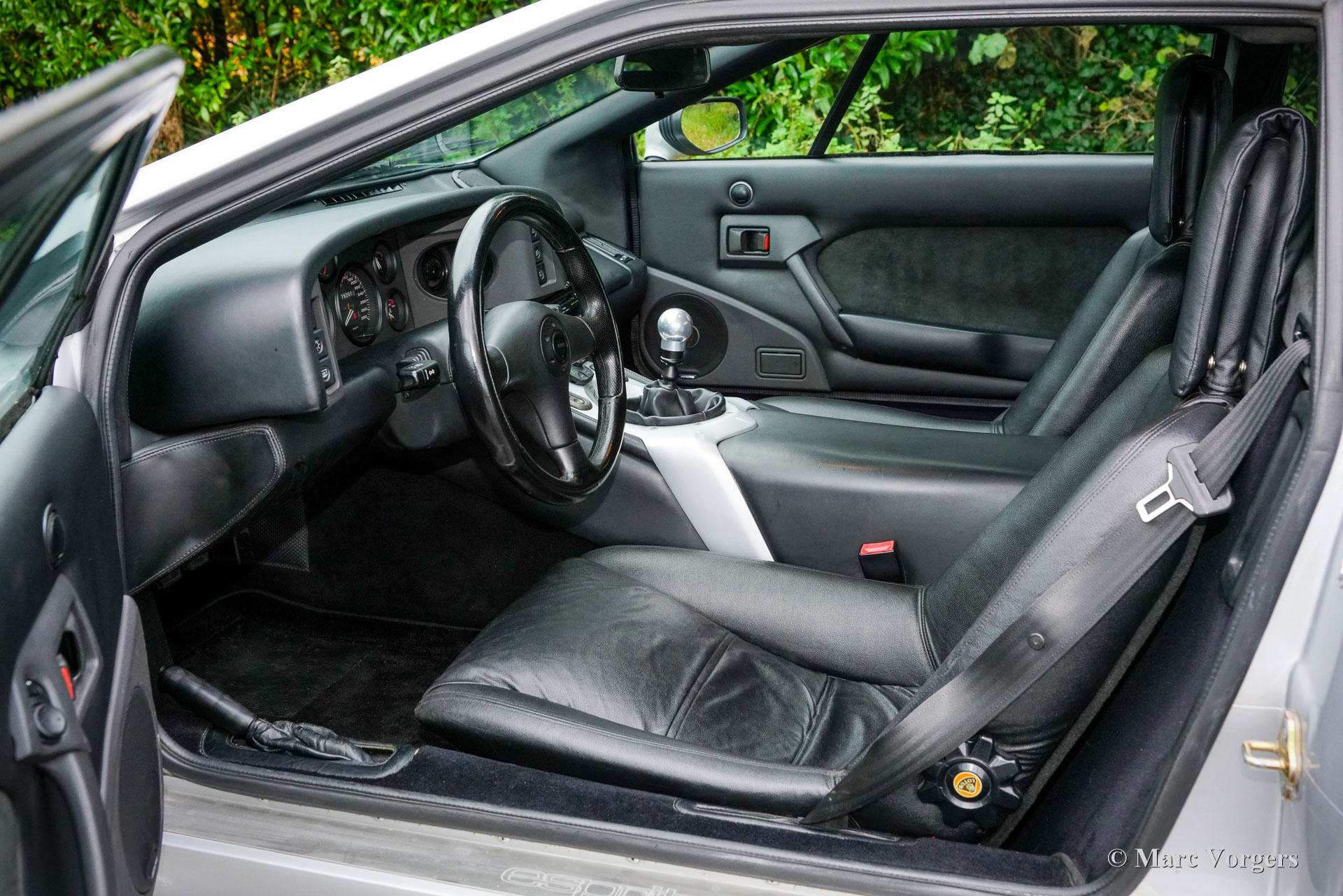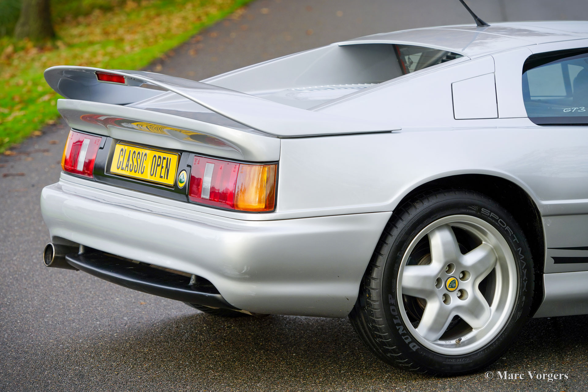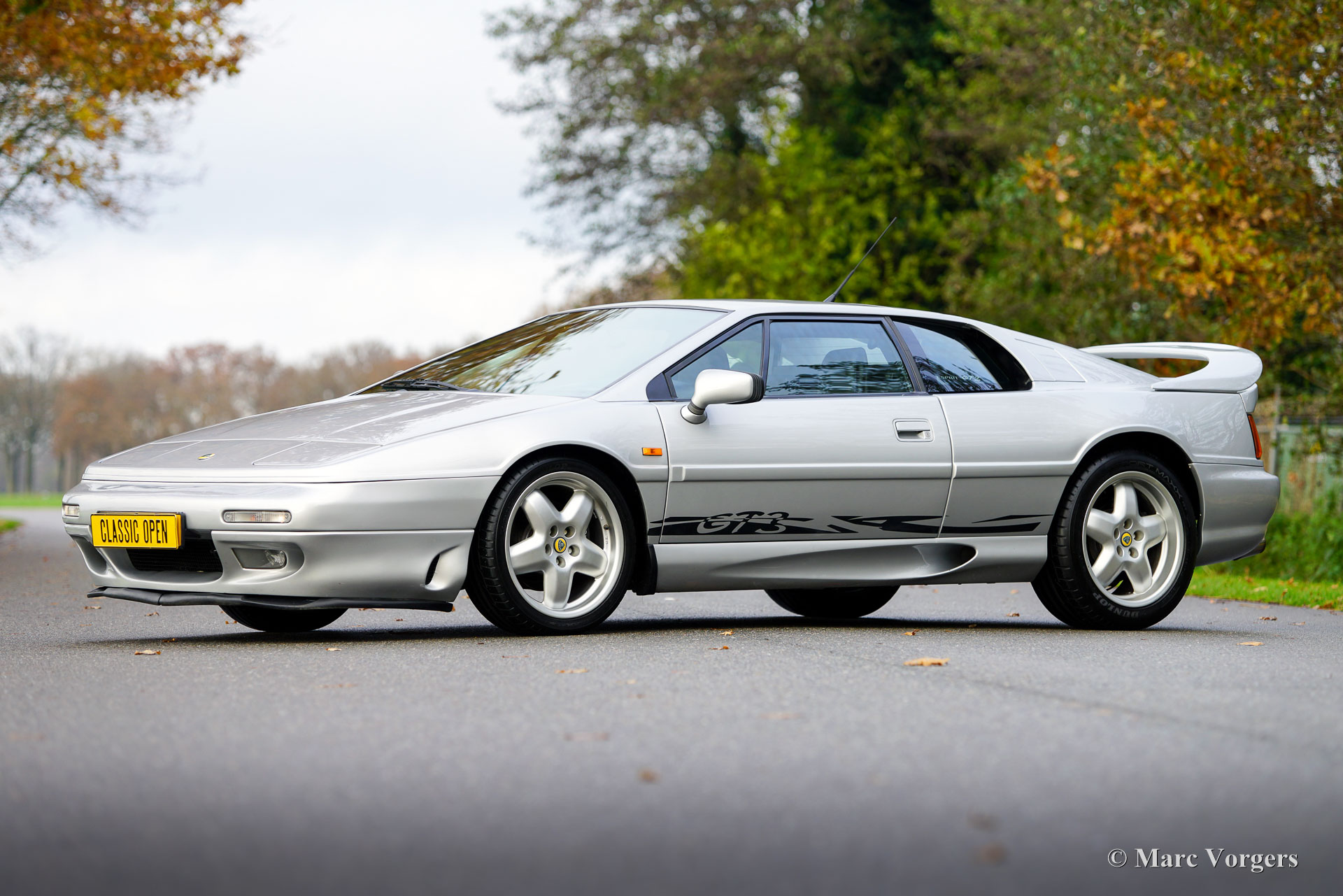 Lotus Esprit S4 GT3, bouwjaar 1996 (11 November). Eerste registratie 1999. Kleur Aluminium metallic (B22) gecombineerd met een zwart kunstlederen interieur. Een zeldzame sportwagen waarvan er in totaal 196 gebouwd zijn; dit exemplaar is één van de slechts 68 gebouwde links gestuurde GT3 modellen! De Lotus Esprit (S1) kwam al in 1976 op de markt en werd wereldberoemd dankzij James Bond. De S4 is het finale Esprit model waarvan de GT3 met een wagengewicht van slechts 1220 kg de lichtste uitvoering is. De auto is voorzien van de geweldige Lotus twee liter viercilinder motor met Garrett turbo die in de GT3 240 pk levert. De motor ligt achter de voorstoelen volgens het ‘middenmotor’ principe om een optimale gewichtsverdeling en perfecte wegligging te verkrijgen. Deze Lotus Esprit S4 GT3 is dan ook een buitengewoon capabele en opwindende rijdersauto! Deze prachtige Esprit S4 GT3 is nieuw verkocht door auto Chimera SRL in Italië. De auto is af fabriek voorzien van (optionele) airconditioning! De auto is in het jaar 2018 naar Nederland geïmporteerd en verkeert in een excellente originele conditie! De auto is compleet met een ‘Lotus Classic Certificate of Vehicle Provenance’ en een begeleidende brief van de archivaris van Lotus Cars Limited. Vanaf nieuw heeft deze Lotus slechts 79.000 kilometer gereden. Bij kilometerstand 77.900, in 2019, is de distributieriem vervangen. Dit is een zeldzame links gestuurde Lotus Esprit S4 GT3 in excellente originele conditie; een magnifieke liefhebbersauto!