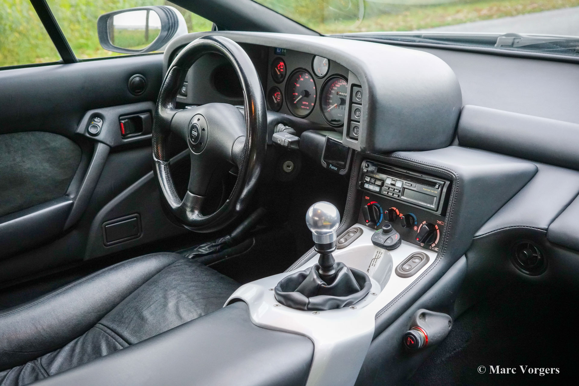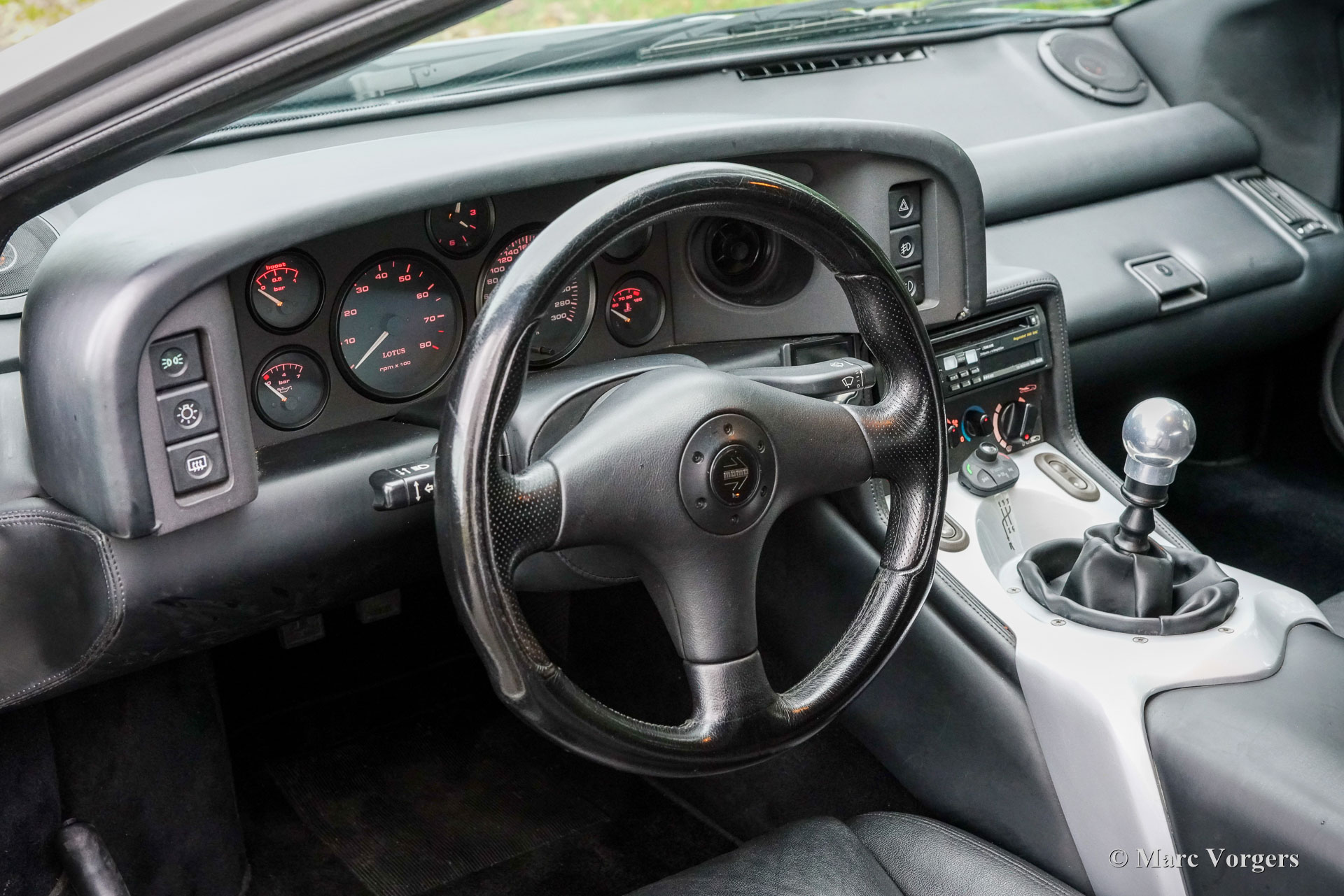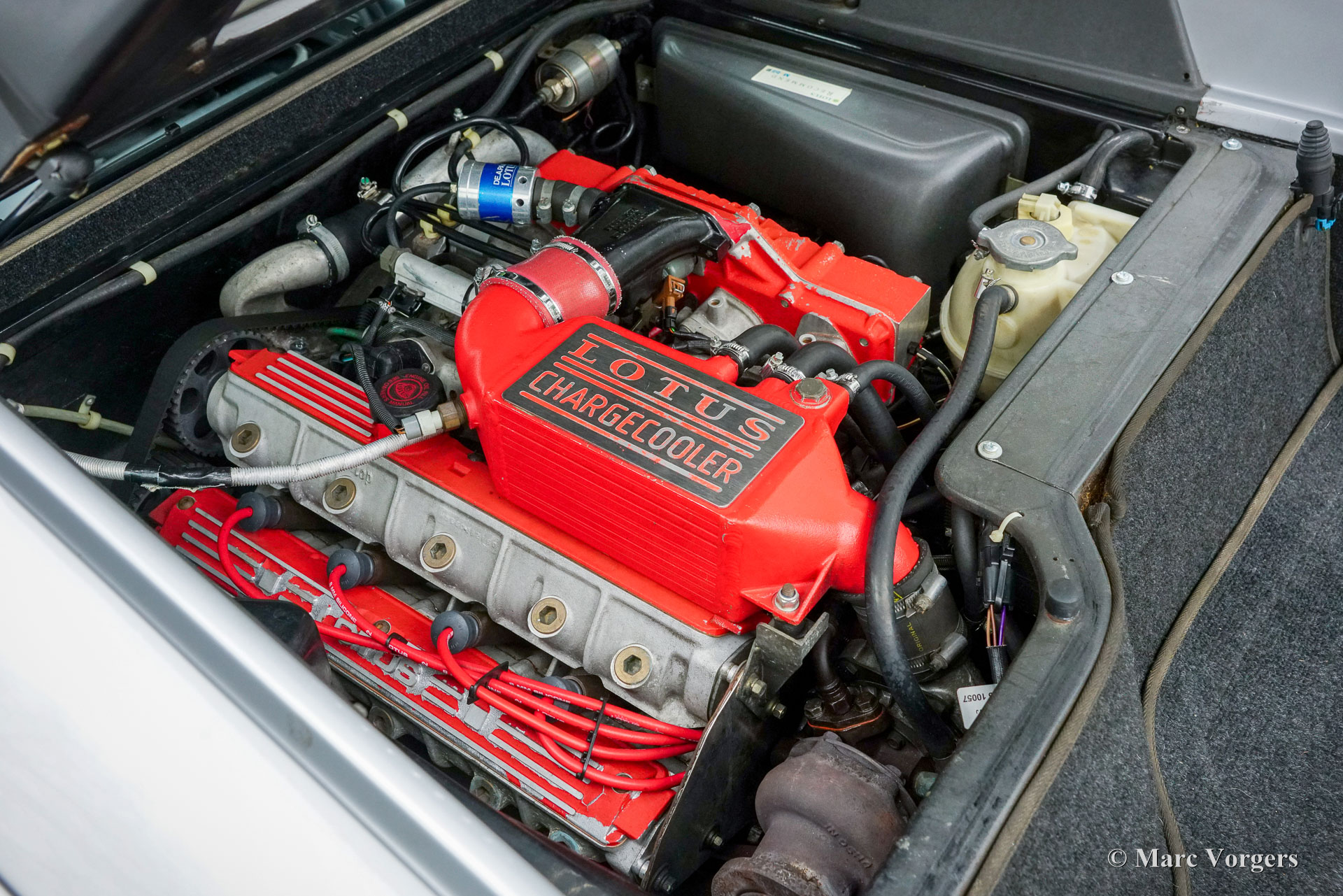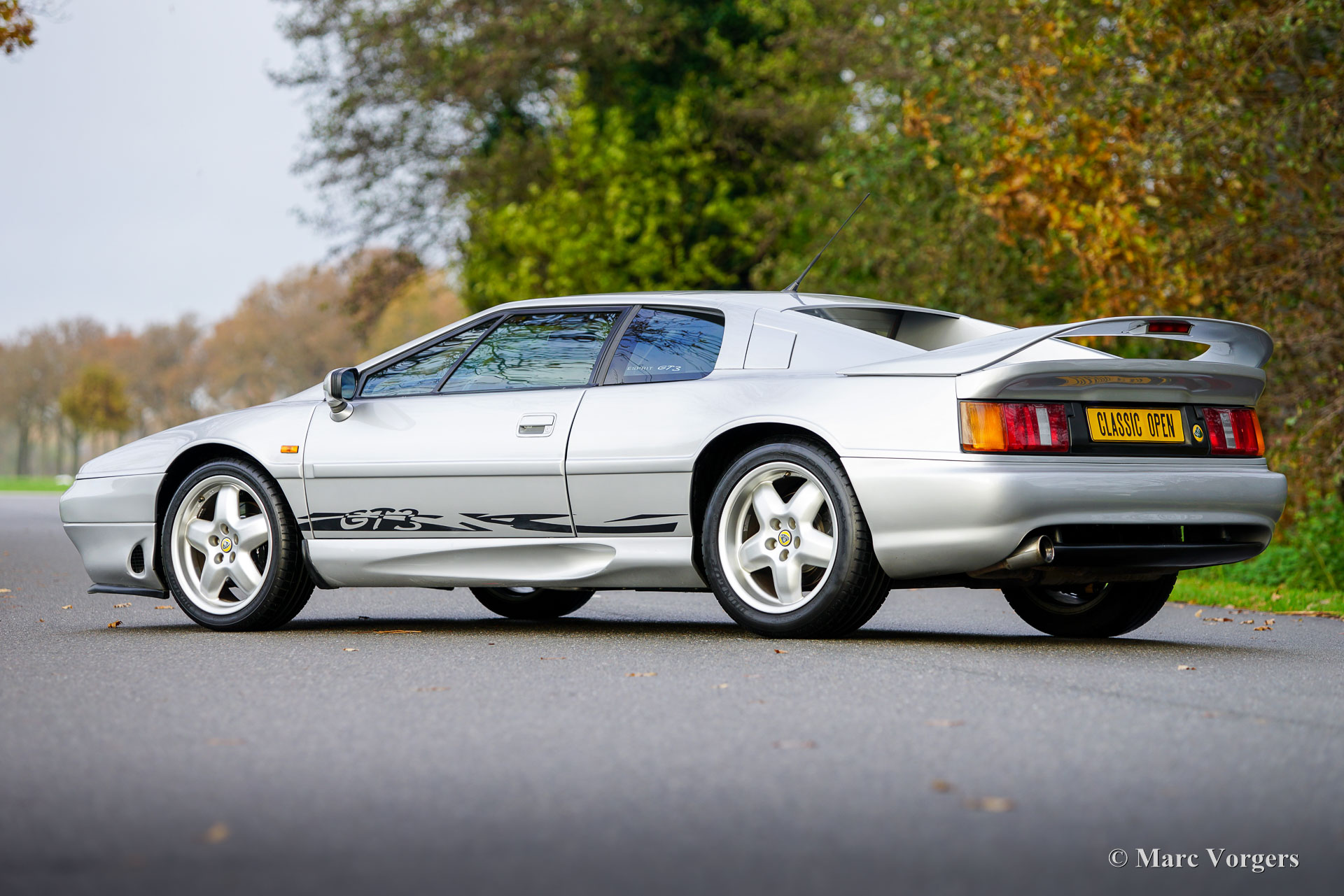 Lotus Esprit S4 GT3, bouwjaar 1996 (11 November). Eerste registratie 1999. Kleur Aluminium metallic (B22) gecombineerd met een zwart kunstlederen interieur. Een zeldzame sportwagen waarvan er in totaal 196 gebouwd zijn; dit exemplaar is één van de slechts 68 gebouwde links gestuurde GT3 modellen! De Lotus Esprit (S1) kwam al in 1976 op de markt en werd wereldberoemd dankzij James Bond. De S4 is het finale Esprit model waarvan de GT3 met een wagengewicht van slechts 1220 kg de lichtste uitvoering is. De auto is voorzien van de geweldige Lotus twee liter viercilinder motor met Garrett turbo die in de GT3 240 pk levert. De motor ligt achter de voorstoelen volgens het ‘middenmotor’ principe om een optimale gewichtsverdeling en perfecte wegligging te verkrijgen. Deze Lotus Esprit S4 GT3 is dan ook een buitengewoon capabele en opwindende rijdersauto! Deze prachtige Esprit S4 GT3 is nieuw verkocht door auto Chimera SRL in Italië. De auto is af fabriek voorzien van (optionele) airconditioning! De auto is in het jaar 2018 naar Nederland geïmporteerd en verkeert in een excellente originele conditie! De auto is compleet met een ‘Lotus Classic Certificate of Vehicle Provenance’ en een begeleidende brief van de archivaris van Lotus Cars Limited. Vanaf nieuw heeft deze Lotus slechts 79.000 kilometer gereden. Bij kilometerstand 77.900, in 2019, is de distributieriem vervangen. Dit is een zeldzame links gestuurde Lotus Esprit S4 GT3 in excellente originele conditie; een magnifieke liefhebbersauto!
