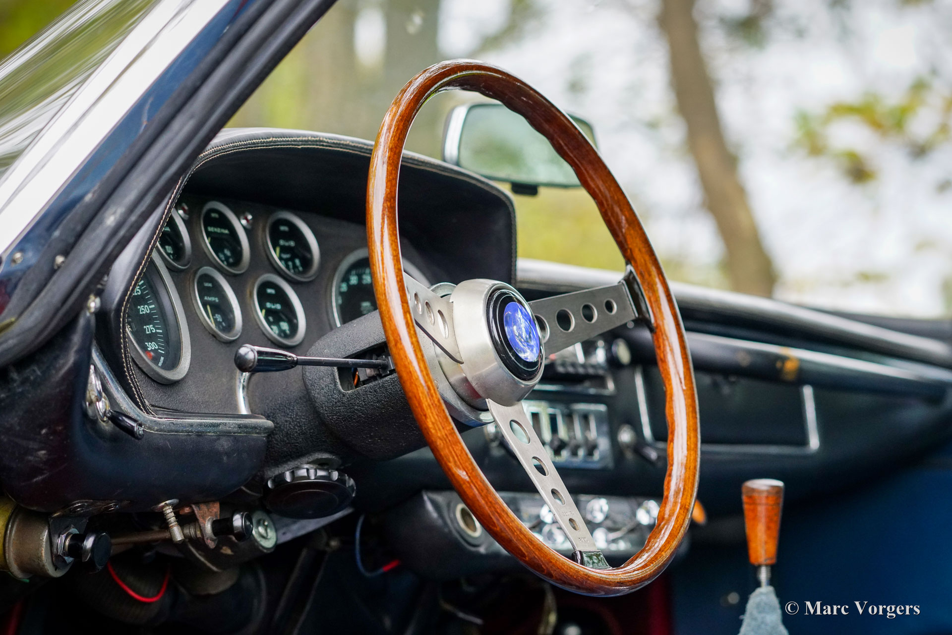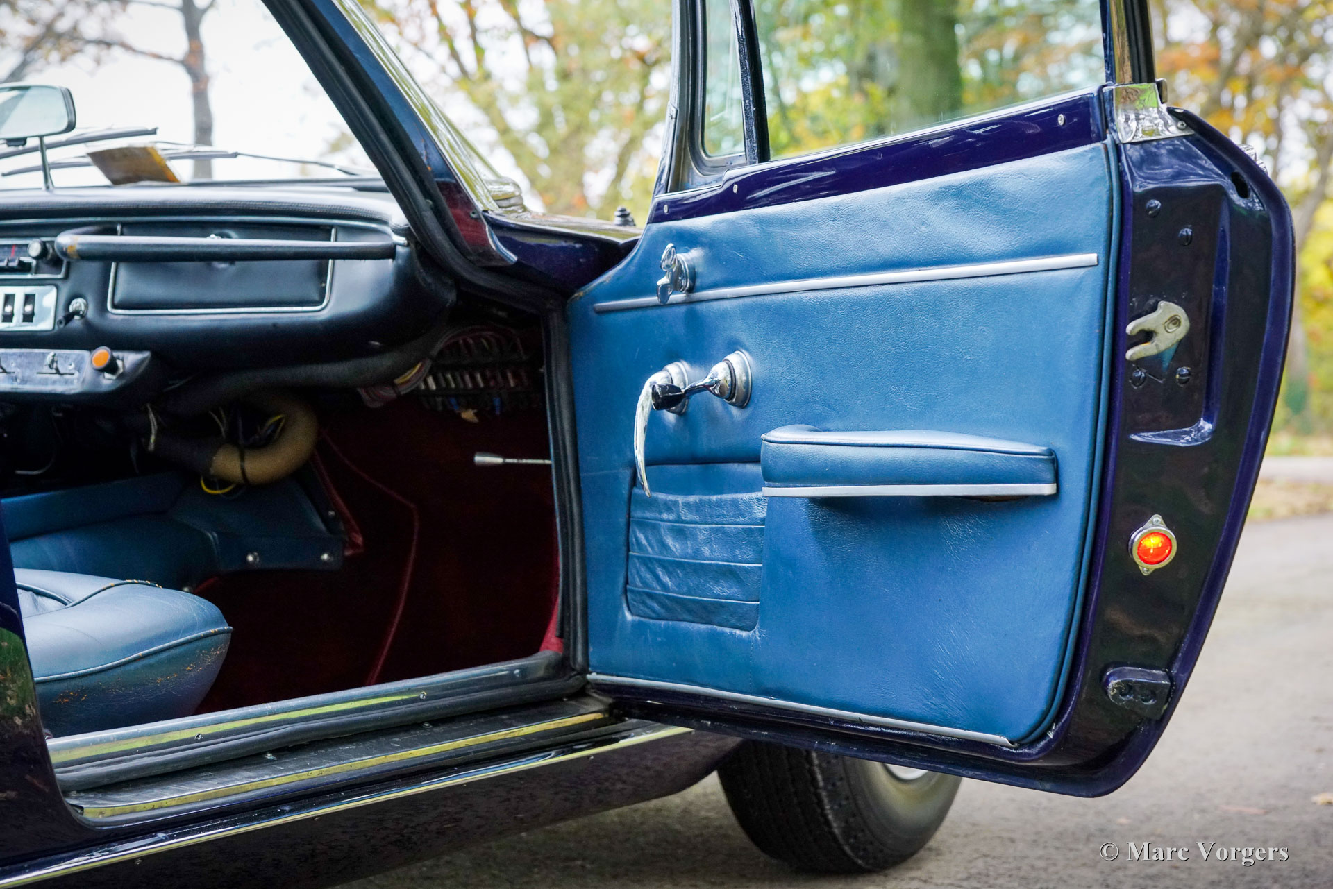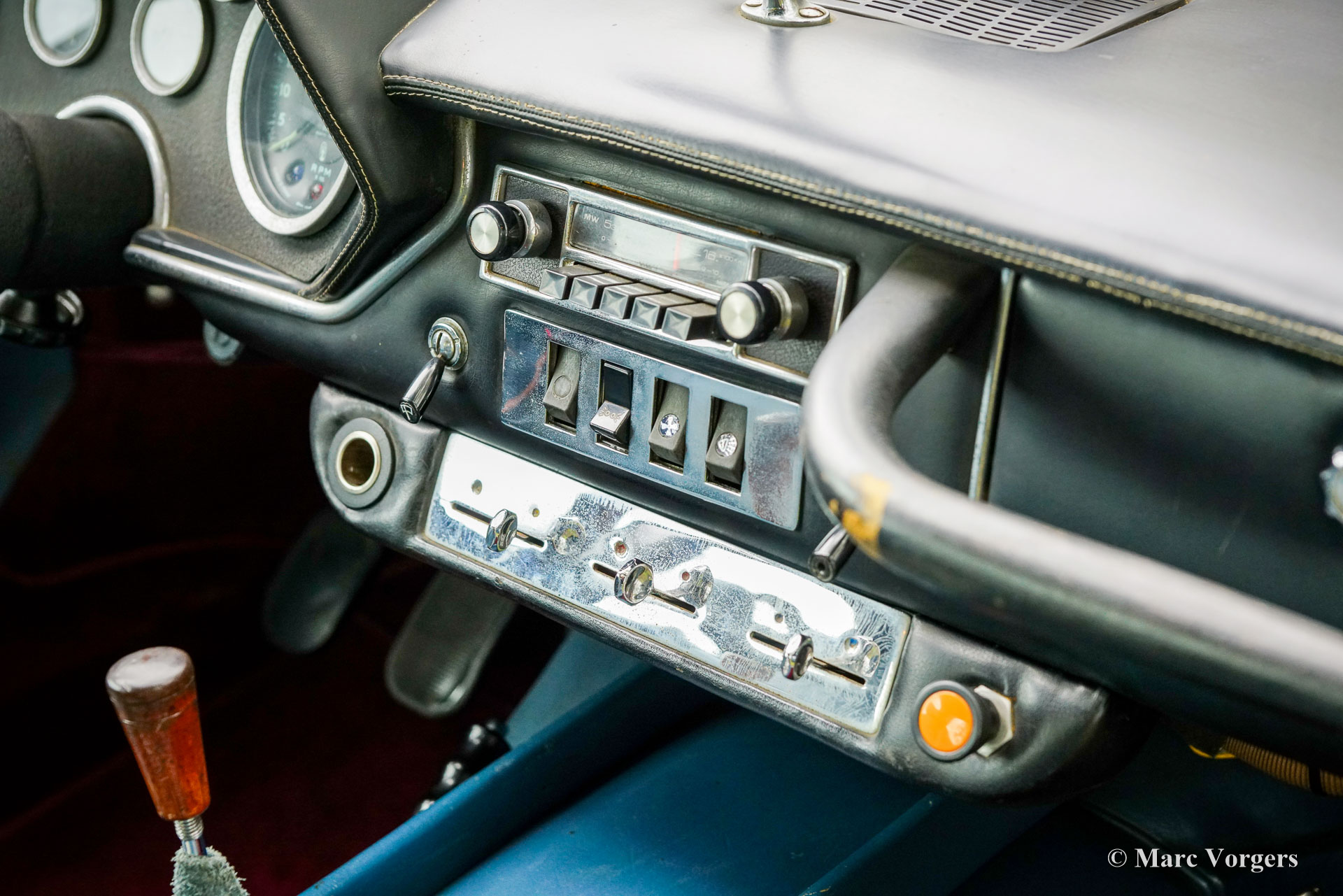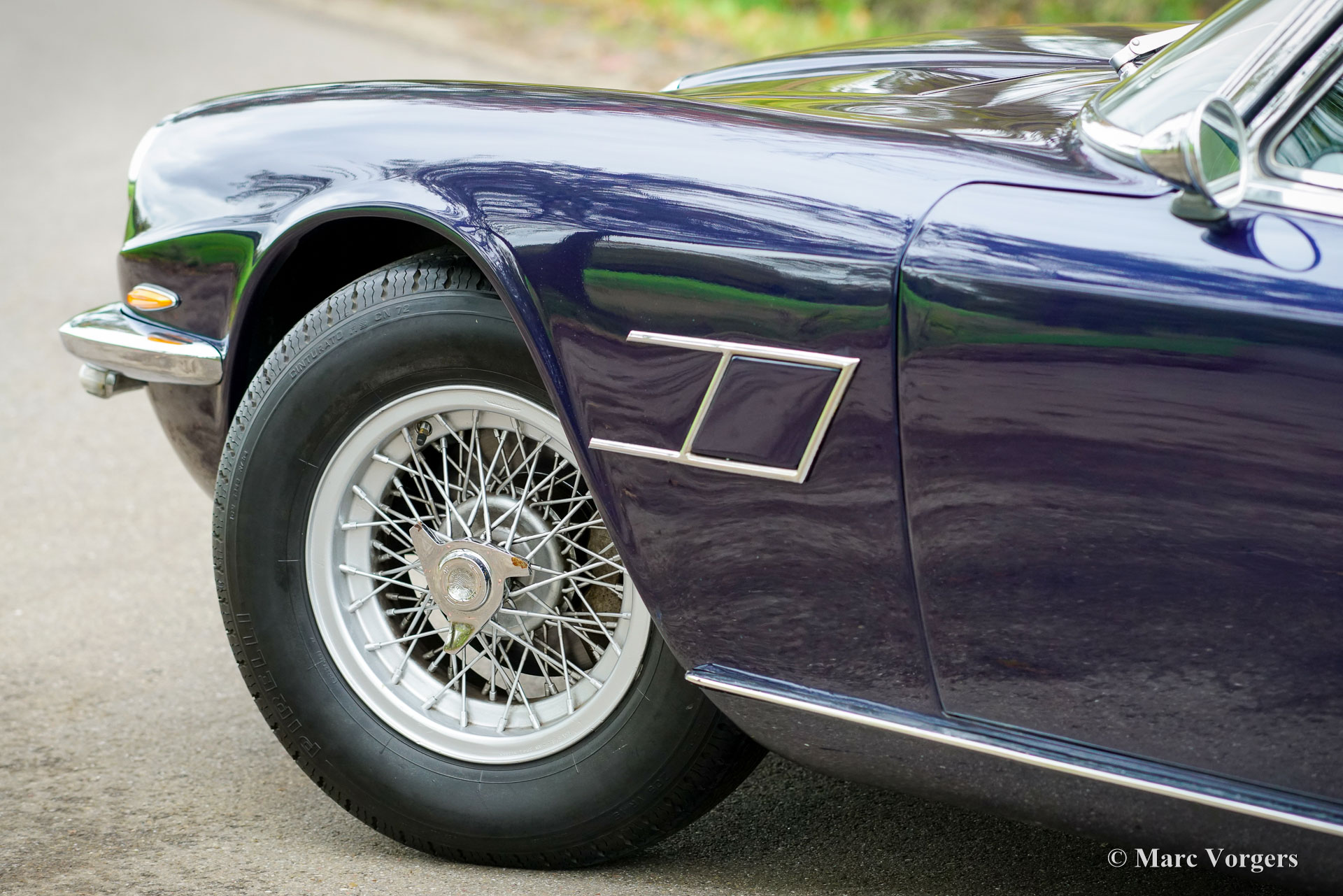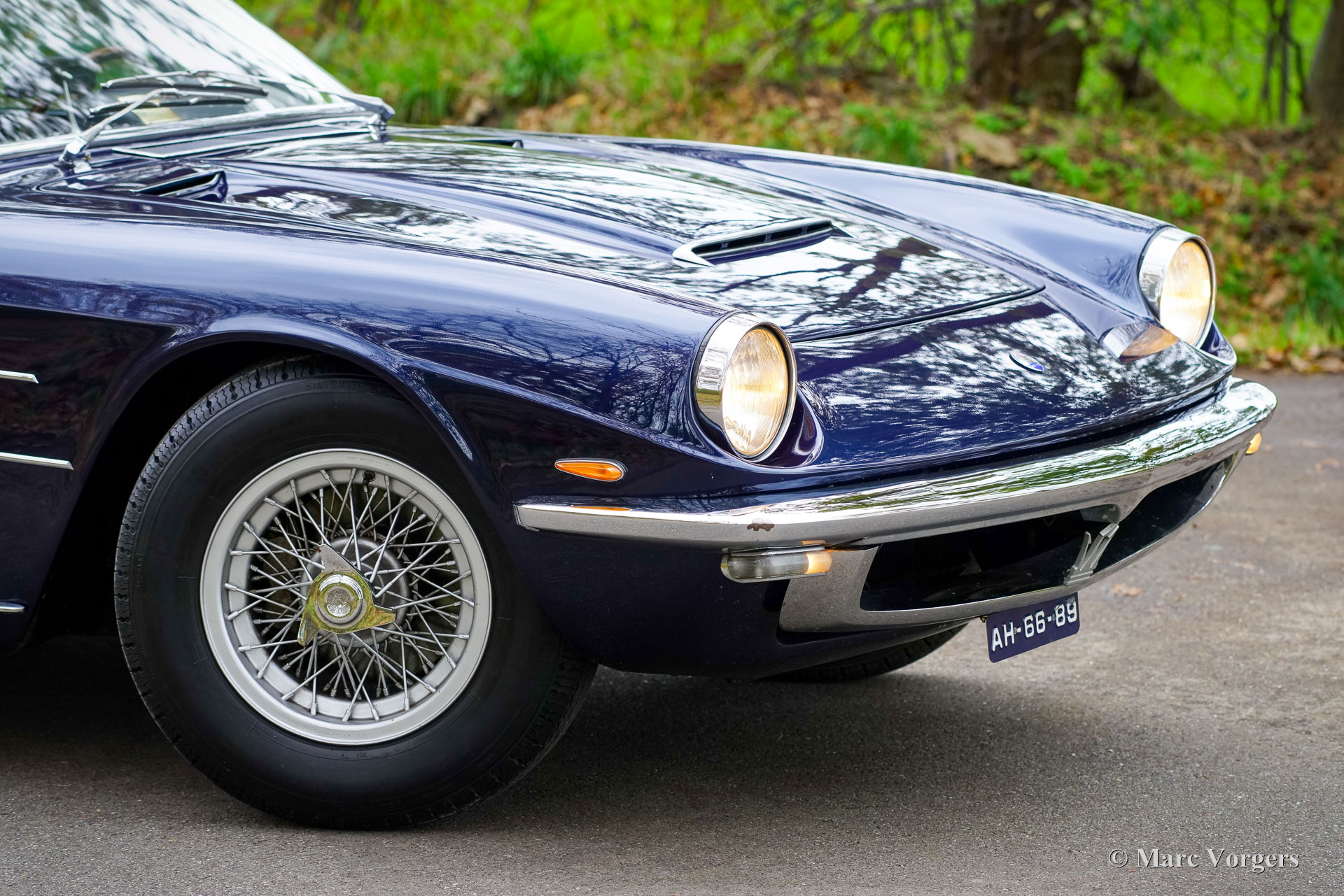Maserati Mistral Coupé 4 liter injectie, bouwjaar 1966. Chassisnummer AM109/A1/724. Dit is een ‘matching numbers’ auto waarvan met de motor, versnellingsbak en achteras origineel bij het chassis en de carrosserie horen. Carrosseriekleur donkerblauw metallic (Blu Pervinca 106AR357) gecombineerd met een blauw lederen interieur afgewerkt met rood tapijt. Deze schitterende Maserati werd gebouwd op 9 mei 1966 en aansluitend geleverd aan de eerste eigenaar in Verona, Italië. Vanuit Italië vond de auto een nieuw thuis in Duitsland bij de heer Hans Haemer, die de auto vervolgens in 1982 verkocht aan de vader van de huidige eigenaar. De familie bezit en koestert deze bijzondere auto al 43 jaar! De Maserati Mistral Coupé werd geïntroduceerd in 1963 en er werden slechts 844 exemplaren gebouwd, uitgerust met een 3,5-, 3,7- en 4,0-liter zescilinder-lijnmotor met dubbele ontsteking (en twee bougies per cilinder) en Lucas mechanische brandstofinjectie. In 1966 werd de 265 pk sterke topmotor, de 4,0-liter, optioneel leverbaar. Het prachtige GT-ontwerp van Pietro Frua onderscheidde zich door een prachtige combinatie van vloeiende, gebogen en scherpe carrosserielijnen en een grote, glazen achterklep, die de auto een sportieve en tegelijk praktische uitstraling gaf. Deze topversie van de Mistral Coupé 4 liter verliet de fabriek in de kleur zilver metallic (Argento Auteuil) met het nog altijd originele en fraaie interieur. Bij aankoop in 1982 had de auto een lichtblauwe carrosseriekleur, die vervolgens werd gewijzigd in donkerblauw (Blu Pervinca). In de jaren 90 werd de auto uitgebreid gerestaureerd en gereviseerd. Daarbij werd de auto wederom gespoten in de huidige lak in Blu Pervinca, die aan de achterzijden en aan de achterkant wat haarscheuren begint te vertonen. In 2022 werd de cilinderkop opnieuw gereviseerd. Er werden nieuwe kleppen en veren gemonteerd en de brandstofinjectoren werden vernieuwd. Ook werden er nieuwe (verstelbare) schokdempers gemonteerd. Deze ‘top-of-the-line’ Maserati Mistral is een rijdersauto in een goede tot zeer goede conditie en de auto rijdt, stuurt en klinkt geweldig! De auto is voorzien van zilver gespoten Borrani spaakwielen en een Borrani reservewiel in de kofferbak. Met ‘matching numbers’ en een nog steeds prachtig, volledig origineel interieur is deze Maserati Mistral een fantastische tijdscapsule. Een belangrijk stuk Italiaans sportwagenerfgoed, afkomstig uit langdurig bezit van één familie, om gewaardeerd en genoten te worden door de juiste nieuwe eigenaar met benzine in zijn of haar aderen!
