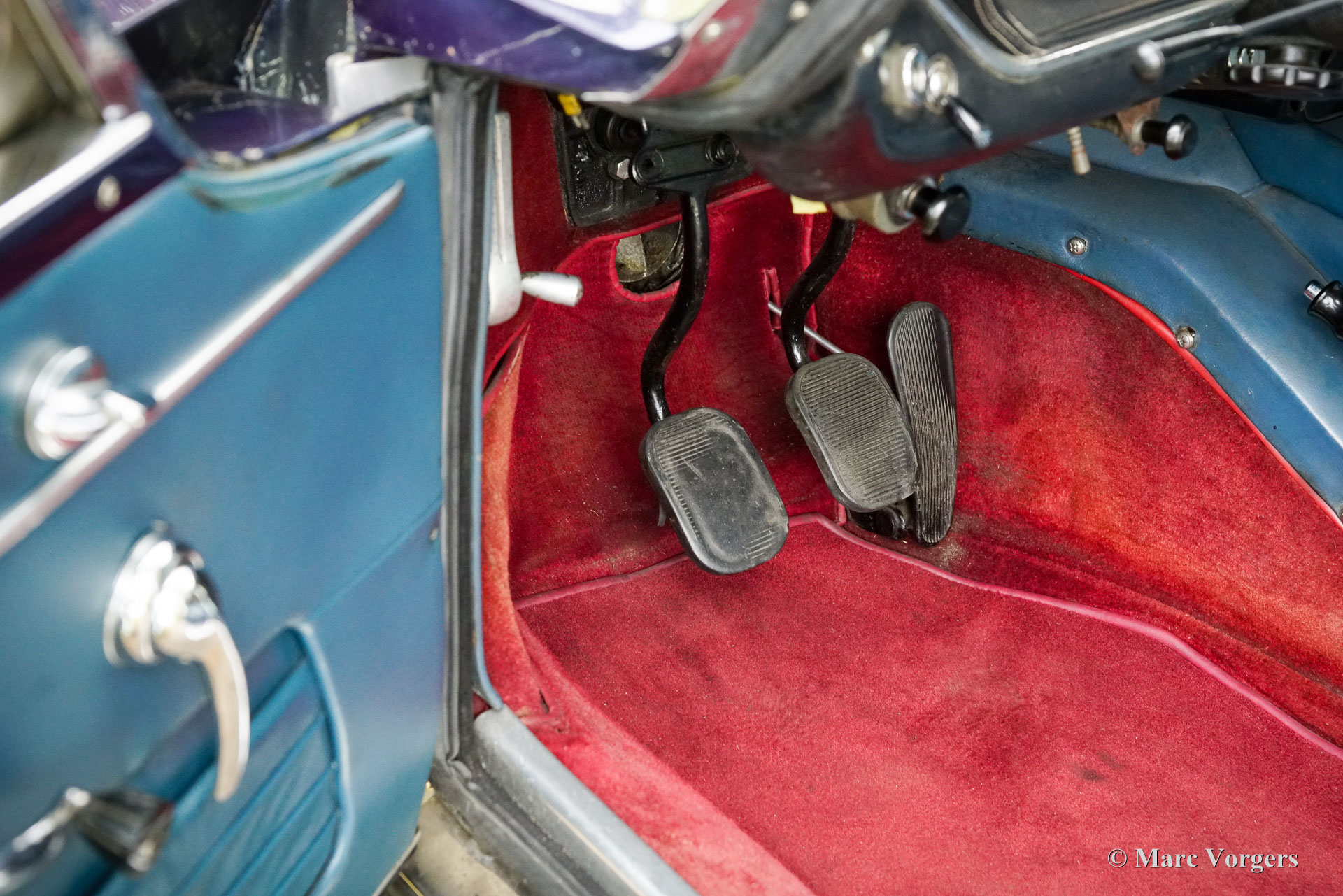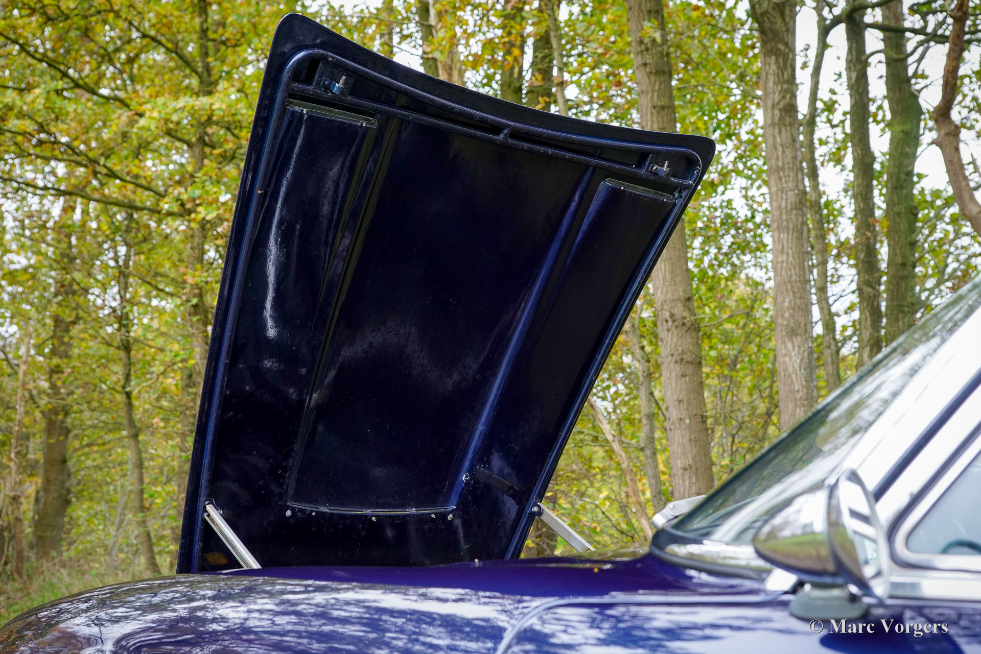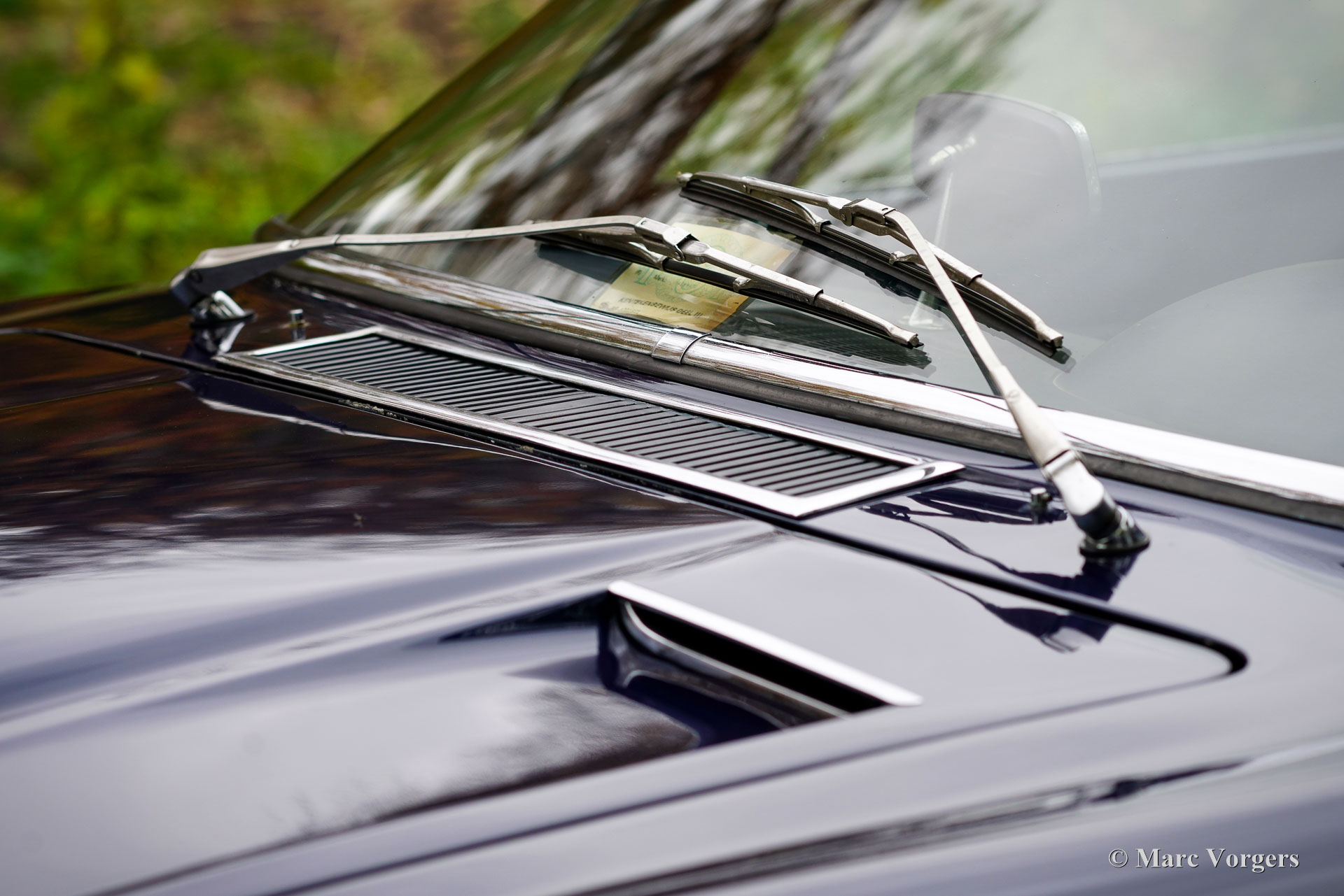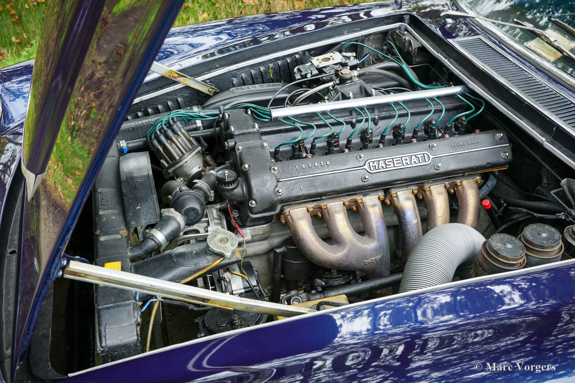 Maserati Mistral Coupé 4 liter injectie, bouwjaar 1966. Chassisnummer AM109/A1/724. Dit is een ‘matching numbers’ auto waarvan met de motor, versnellingsbak en achteras origineel bij het chassis en de carrosserie horen. Carrosseriekleur donkerblauw metallic (Blu Pervinca 106AR357) gecombineerd met een blauw lederen interieur afgewerkt met rood tapijt. Deze schitterende Maserati werd gebouwd op 9 mei 1966 en aansluitend geleverd aan de eerste eigenaar in Verona, Italië. Vanuit Italië vond de auto een nieuw thuis in Duitsland bij de heer Hans Haemer, die de auto vervolgens in 1982 verkocht aan de vader van de huidige eigenaar. De familie bezit en koestert deze bijzondere auto al 43 jaar! De Maserati Mistral Coupé werd geïntroduceerd in 1963 en er werden slechts 844 exemplaren gebouwd, uitgerust met een 3,5-, 3,7- en 4,0-liter zescilinder-lijnmotor met dubbele ontsteking (en twee bougies per cilinder) en Lucas mechanische brandstofinjectie. In 1966 werd de 265 pk sterke topmotor, de 4,0-liter, optioneel leverbaar. Het prachtige GT-ontwerp van Pietro Frua onderscheidde zich door een prachtige combinatie van vloeiende, gebogen en scherpe carrosserielijnen en een grote, glazen achterklep, die de auto een sportieve en tegelijk praktische uitstraling gaf. Deze topversie van de Mistral Coupé 4 liter verliet de fabriek in de kleur zilver metallic (Argento Auteuil) met het nog altijd originele en fraaie interieur. Bij aankoop in 1982 had de auto een lichtblauwe carrosseriekleur, die vervolgens werd gewijzigd in donkerblauw (Blu Pervinca). In de jaren 90 werd de auto uitgebreid gerestaureerd en gereviseerd. Daarbij werd de auto wederom gespoten in de huidige lak in Blu Pervinca, die aan de achterzijden en aan de achterkant wat haarscheuren begint te vertonen. In 2022 werd de cilinderkop opnieuw gereviseerd. Er werden nieuwe kleppen en veren gemonteerd en de brandstofinjectoren werden vernieuwd. Ook werden er nieuwe (verstelbare) schokdempers gemonteerd. Deze ‘top-of-the-line’ Maserati Mistral is een rijdersauto in een goede tot zeer goede conditie en de auto rijdt, stuurt en klinkt geweldig! De auto is voorzien van zilver gespoten Borrani spaakwielen en een Borrani reservewiel in de kofferbak. Met ‘matching numbers’ en een nog steeds prachtig, volledig origineel interieur is deze Maserati Mistral een fantastische tijdscapsule. Een belangrijk stuk Italiaans sportwagenerfgoed, afkomstig uit langdurig bezit van één familie, om gewaardeerd en genoten te worden door de juiste nieuwe eigenaar met benzine in zijn of haar aderen!