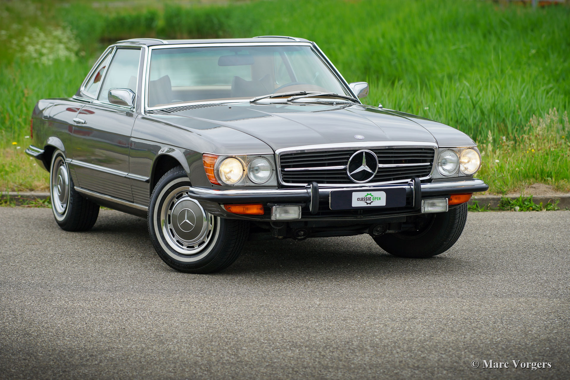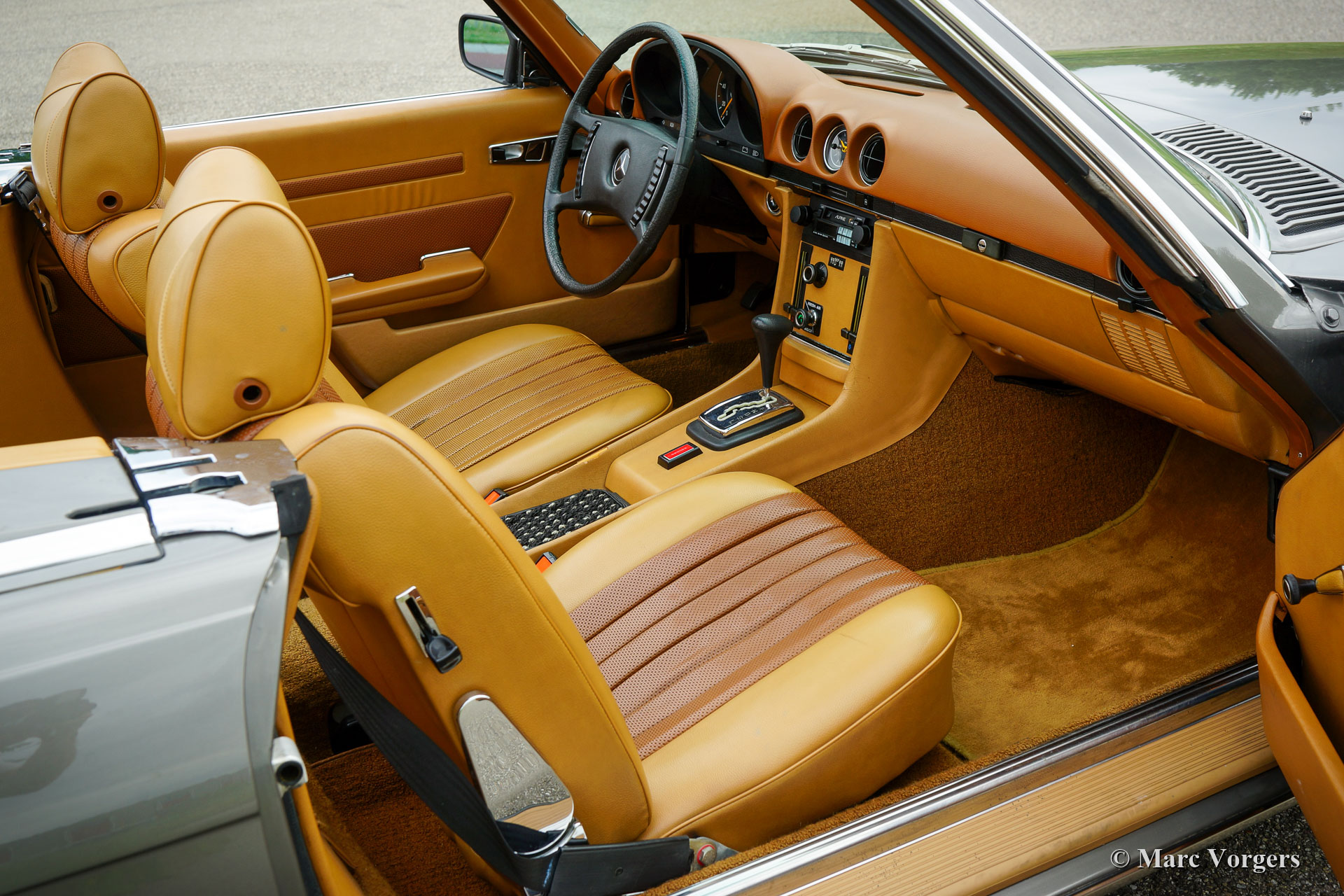Mercedes-Benz 350 SL, jaar 1972. Kleur donkergrijs metallic gecombineerd met een cognacbruin ‘tex’ interieur. Zwarte mohair kap en originele hard-top in carrosseriekleur. Deze fantastische Mercedes 350 SL uit de R107-modellenreeks werd nieuw verkocht in Californië, VS. De automobiel is in 2020 naar Nederland geïmporteerd. De R107 is een gezochte Mercedes ‘evergreen’, het model is gebouwd van 1971 tot 1989. De 350 SL was het eerste model in de modelreeks. De 350 SL is uitgerust met een fantastische V8-motor die is gekoppeld aan een automatische versnellingsbak. Met een koppel van 286 Nm en 220 pk is de 350 SL een snelle luxe cabriolet. Met de hard-top erop verandert de 380 SL in een schitterende coupé. Van dit 350 SL-model werden slechts 15.000 exemplaren gebouwd. Dit exemplaar verkeert in een uitstekende conditie, de auto vertoont slechts lichte gebruikssporen. Ook de soft-top en de hard-top verkeren in een uitstekende conditie. De auto is voorzien van stuurbekrachtiging, airconditioning en een Alpine stereo radio met cassettespeler. Deze prachtige Mercedes 350 SL wordt compleet geleverd met de originele boekjes, originele gereedschapset en krik. Deze 350 SL rijdt en klinkt perfect, een zeer begeerlijk exemplaar!