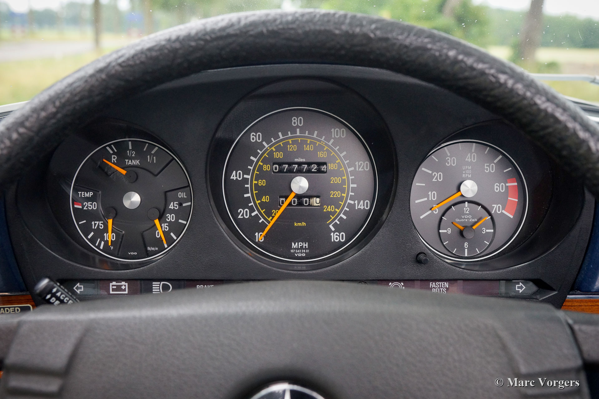 Waar u ook kijkt, de auto is perfect origineel tot in het kleinste detail. De auto is momenteel uitgerust met de prachtige slanke chromen Europese bumpers. De donkerblauwe soft-top bevindt zich in nieuwstaat evenals de originele donkerblauwe hard-top die zo te zien nooit gebruikt werd! Alle originele fabrieksstickers zijn nog aanwezig en het reservewiel is nog ongebruikt. Deze fraaie Mercedes 450 SL wordt compleet geleverd met de originele gereedschappen, krik en de zeer zeldzame (kinder) stoelen achterin. Verder beschikt de auto over stuurbekrachtiging en airconditioning. Een prachtig exemplaar!