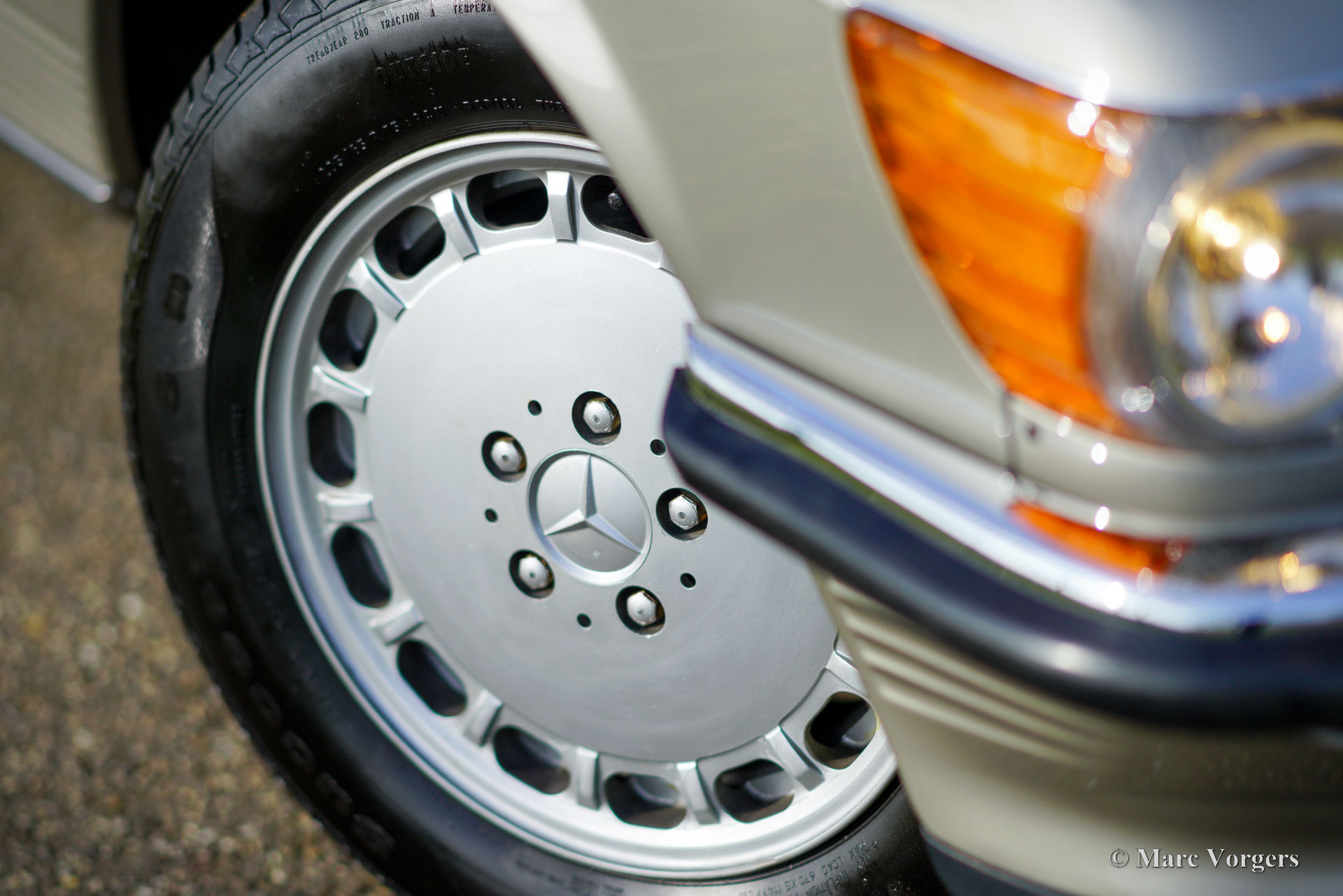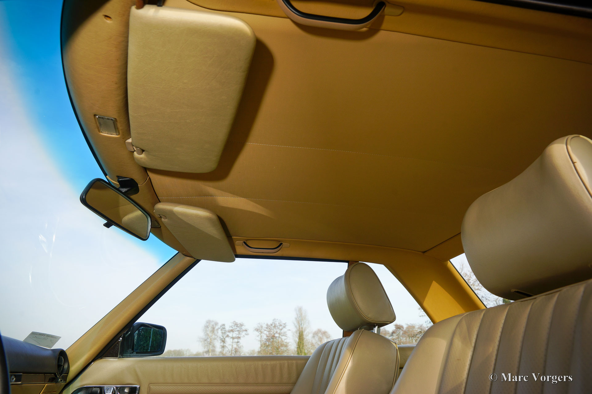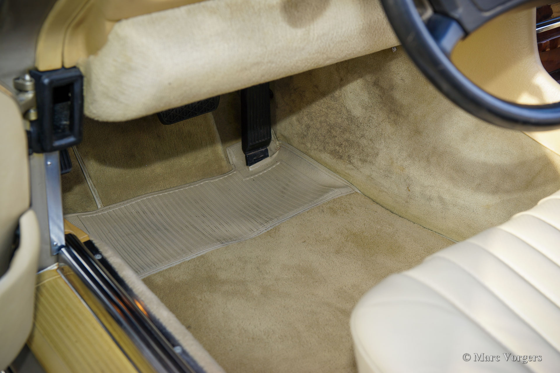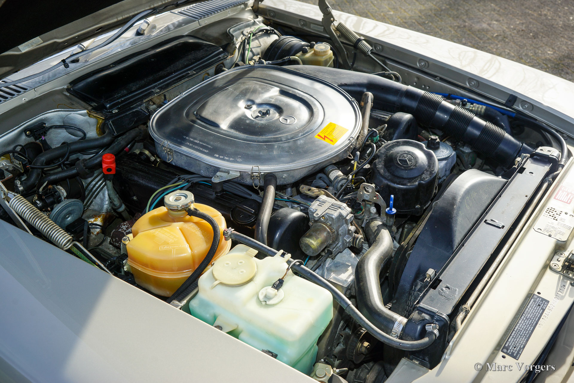 Mercedes-Benz 560 SL, jaar 1987. Kleur Rookzilver (Rauchsilber) metallic gecombineerd met een lichtbeige leren interieur en bijpassend tapijt. Donkerbruine soft top en een originele hard top in carrosseriekleur. Deze fantastische Mercedes 560 SL uit de R107 modelserie werd nieuw verkocht in North Carolina, USA. De auto heeft slechts twee Amerikaanse eigenaren gekend. Onlangs is de auto in Nederland geïmporteerd met slechts 89.000 mijl op de teller. Na aankomst in Nederland werden de US-bumpers ingeruild voor slanke chromen Europese bumpers. Op verzoek en tegen meerprijs kunnen de Amerikaanse koplampen worden omgewisseld voor Europese versies. Deze fantastische V8 aangedreven Mercedes-Benz verkeert zowel van binnen als van buiten in een uitstekende originele staat, de originele fabrieksstickers zijn nog aanwezig. De auto vertoont slechts de minste sporen van eerder gebruik. De auto is enkele jaren geleden perfect opnieuw gespoten in de originele kleur, dit alleen omdat de 35 jaar oude lak lichte sporen van gebruik vertoonde. Het originele interieur is in onberispelijke staat en de motorruimte is fris en schoon. De donkerbruin kleurige soft top is recentelijk vernieuwd en verkeert in nieuwstaat. De auto is voorzien van begeerlijke opties zoals airconditioning, cruise control, originele lichtmetalen velgen en een Becker stereo radio. De auto staat op goede 205/65 15 inch banden en de originele gereedschap set is aanwezig. Dit is geweldig rijdende en comfortabele Mercedes-Benz 560 SL in fantastische kleuren en in excellente conditie!