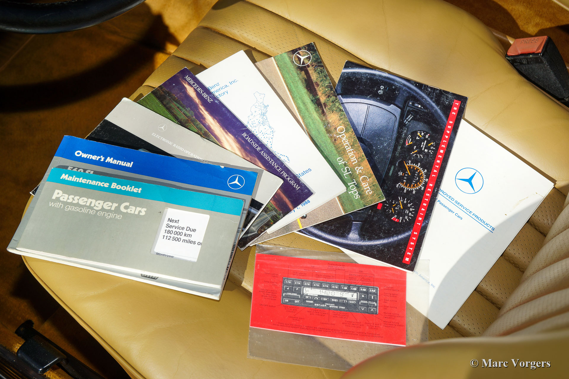 Mercedes-Benz 560 SL, type R107, jaar 1988. ‘Matching numbers & colours’, de originele ‘Datenkarte’ is aanwezig om dit te bevestigen. Kleur ‘Rauch Silber’ metallic gecombineerd met een lichtbruin lederen interieur en lichtbruin tapijt, bruine mohair soft-top en een hardtop in carrosseriekleur. Deze prachtige Mercedes 560 SL is nieuw verkocht in de Verenigde Staten. De auto verkeert in excellente en volledig fabriek originele conditie en de auto rijdt perfect! De carrosserie vertoont perfecte plaatwerkpassingen, prachtig lakwerk en alle originele fabrieksstickers zijn nog aanwezig. Het interieur verkeert in onberispelijke originele staat evenals de motorruimte en de kofferbak! Deze Mercedes heeft vanaf nieuw 132.000 mijl gereden en de auto wordt geleverd met een volledige en perfecte (service) historie vanaf dag één. In de VS heeft de auto slechts twee eigenaren gekend, de auto is onlangs door Altena Classic Service in Nederland geïmporteerd. Deze 560 SL is voorzien van een aantal mooie opties zoals ABS, rembekrachtiging, stuurbekrachtiging, cruise control, airconditioning, originele lichtmetalen wielen en een af fabriek gemonteerde Becker autoradio met automatische antenne. Deze prachtige auto wordt compleet geleverd met alle originele boekjes en de originele gereedschap set.