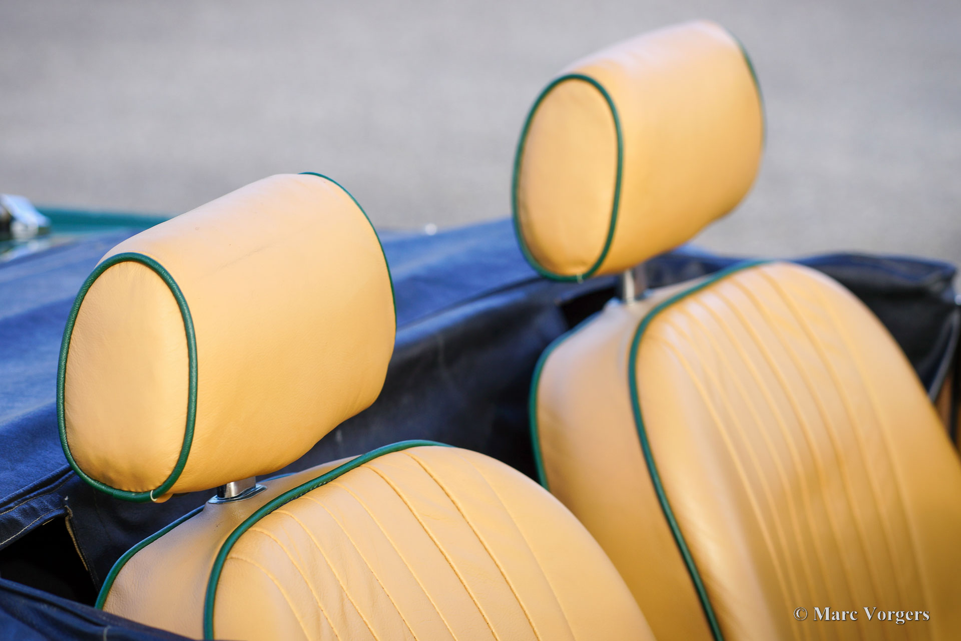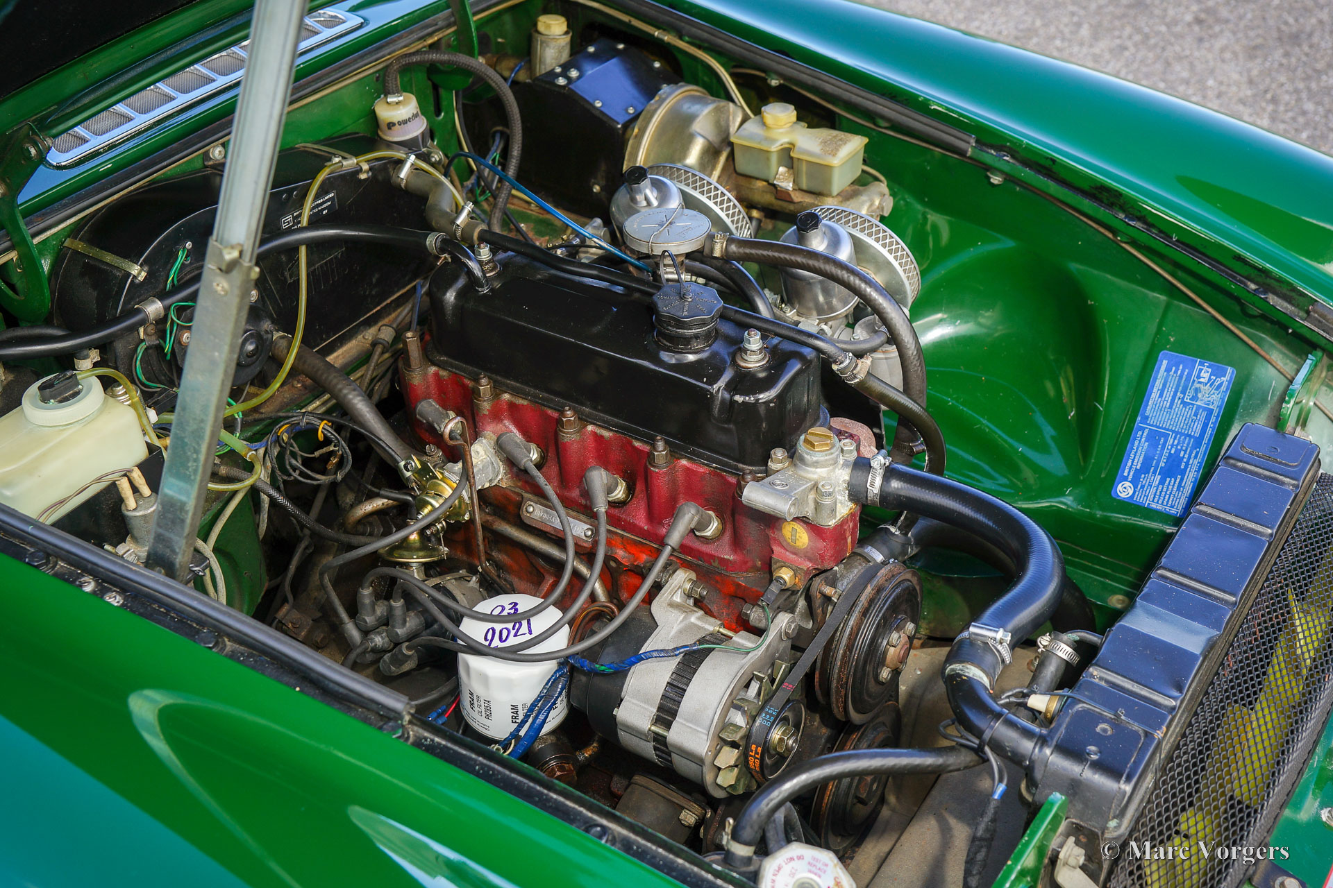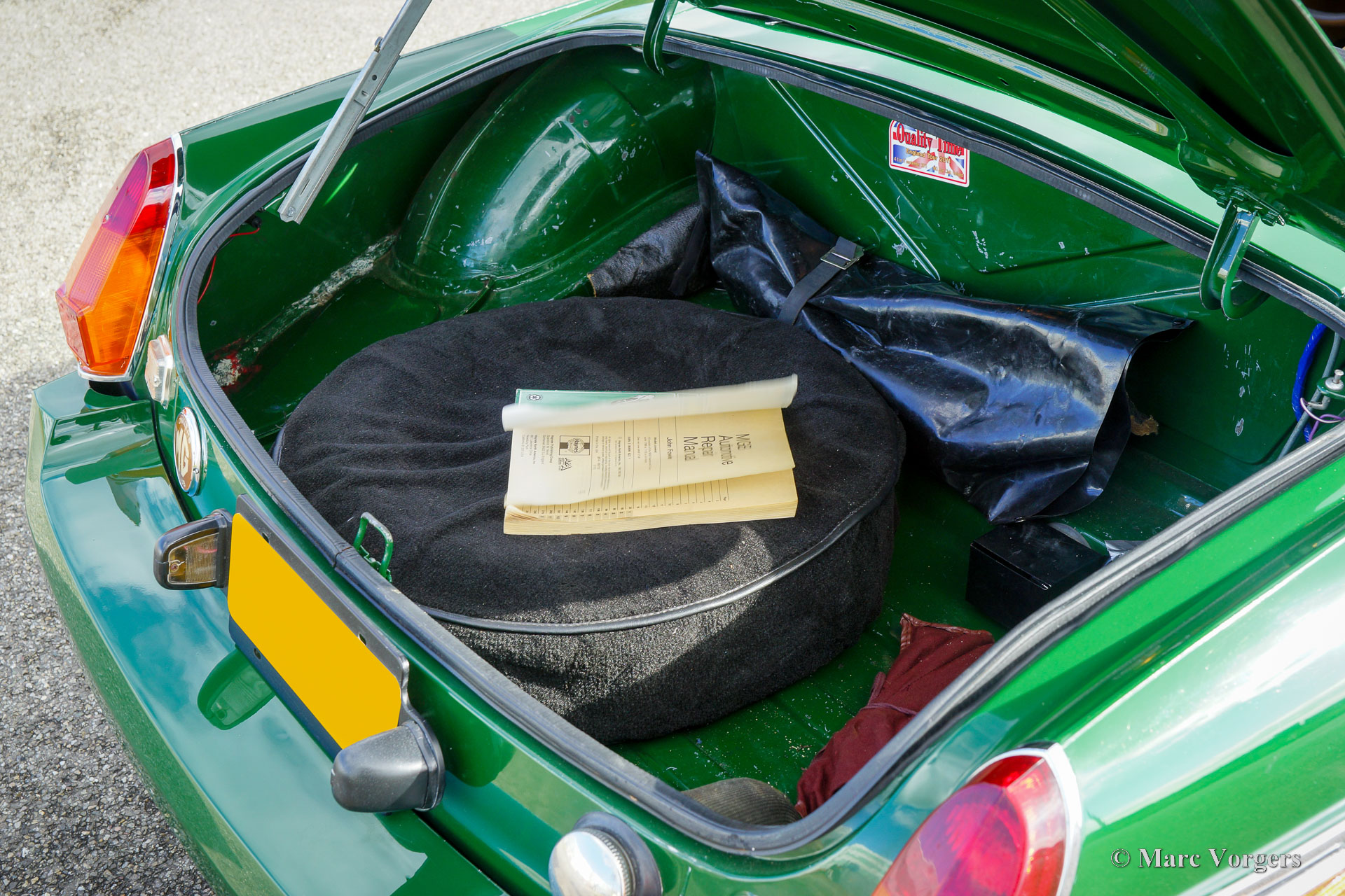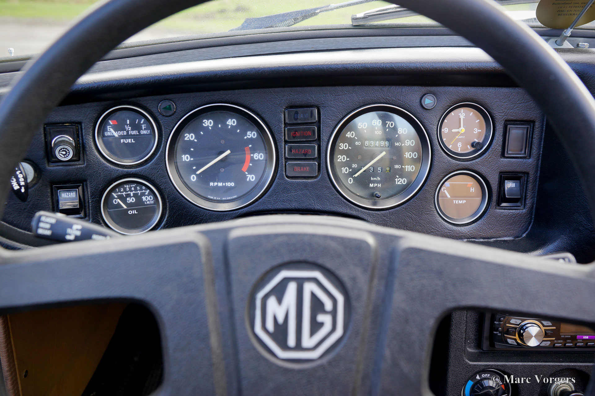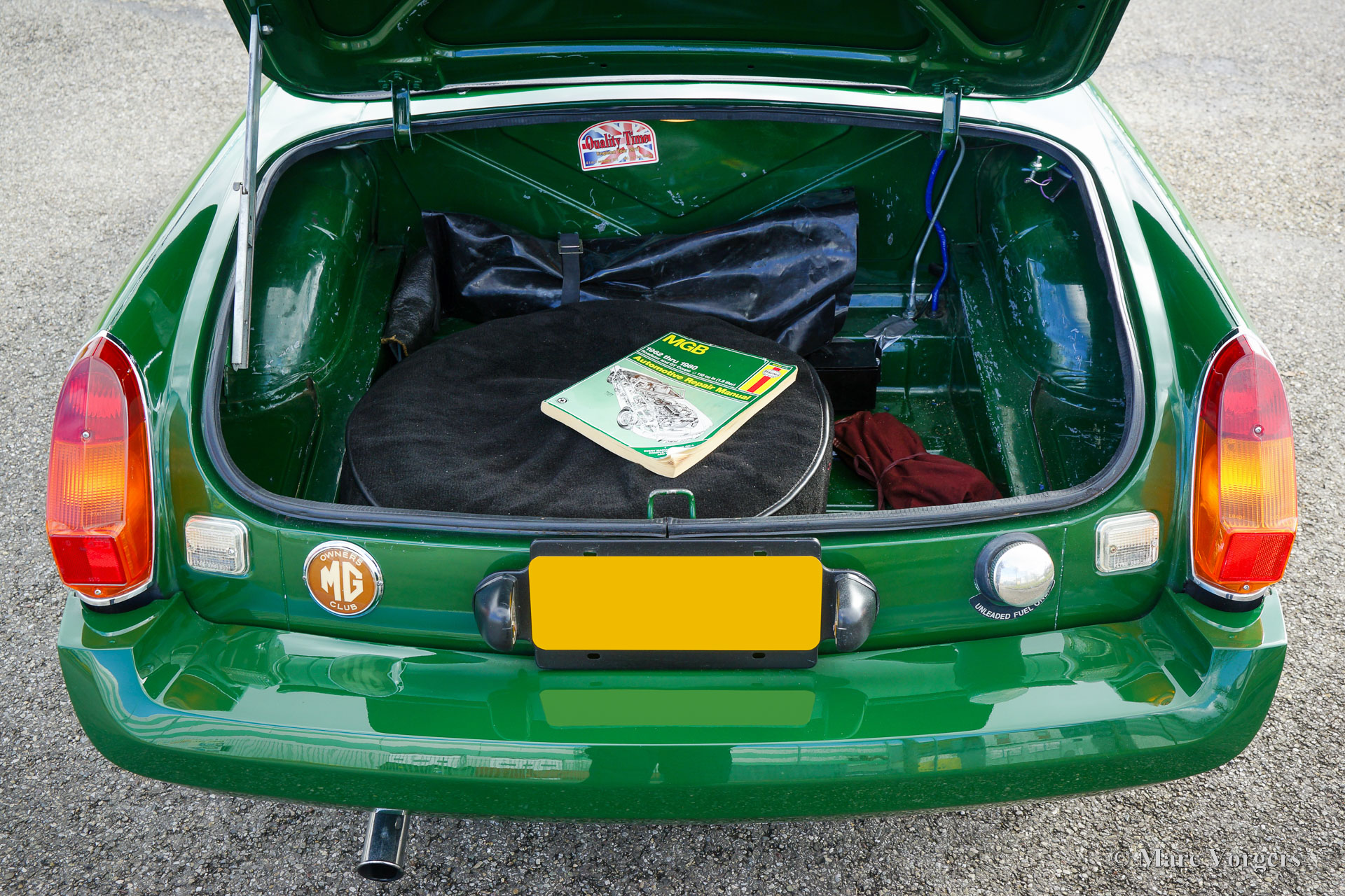 MG MGB roadster, jaar 1979. Kleur groen gecombineerd met een beige lederen interieur afgewerkt met groene biezen en zwart tapijt. Groene soft-top en hood-cover. Deze MGB roadster komt uit de laatste en meest doorontwikkelde serie. Deze laatste serie onderscheidde zich van de eerdere modellen door de rubberen veiligheidsbumpers en meer comfort. Bij deze MGB zijn de bumpers in carrosseriekleur gespoten waardoor ze mooi opgaan in de vorm van de auto. De MGB beschikt over een sportieve 1800 cc viercilindermotor met dubbele S.U.-carburateurs, een handgeschakelde 4-versnellingsbak, overdrive en rembekrachtiging. De auto verkeert in een zeer goede staat en deze MGB rijdt en stuurt voortreffelijk! De MGB roadster is een praktische klassieke sportwagen, hij biedt voldoende ruimte voor de inzittenden, kofferruimte voor sporttassen en een bagagerek voor een echte koffer.