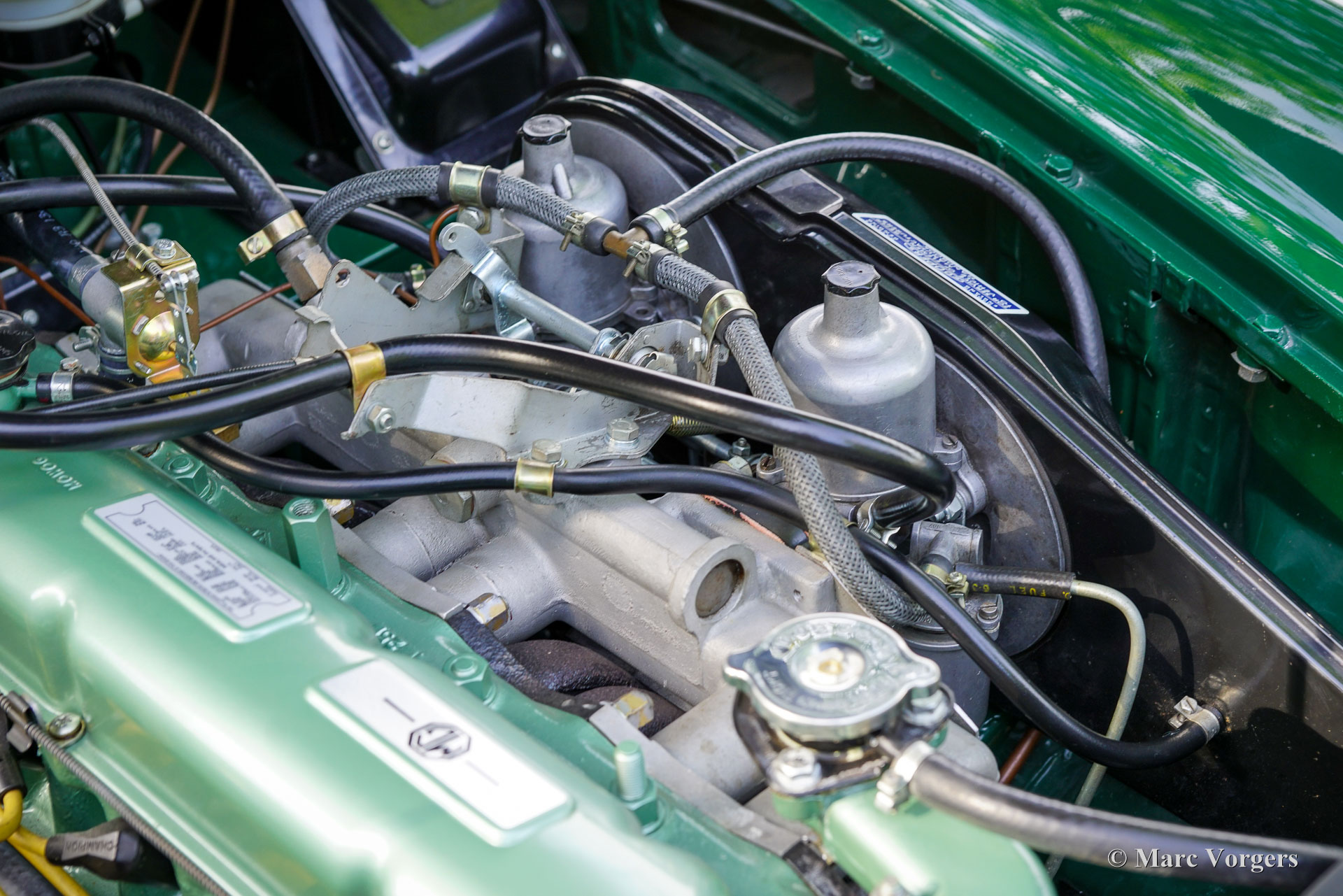MG MGC roadster, jaar 1969. Uitgevoerd in donker ‘British Racing Green’ met een mooie zwarte soft-top, heeft deze prachtige MGC een elegant en ingetogen profiel. Het interieur is voorzien van zwarte leren stoelen met hoofdsteunen en het originele met leer beklede stuurwiel is aanwezig. Dit model met Europese specificaties, nieuw verkocht in Nederland, is uitgerust met het gewilde stalen dashboard, een overdrive-versnellingsbak en chromen spaakwielen. Voor extra gebruiksgemak is er een tonneaucover aanwezig. De historie is goed gedocumenteerd, inclusief een volledig restauratierapport, een British Motor Heritage-certificaat en de originele Nederlandse aankoopfactuur! Onder de hoede van twee successievelijke MG-liefhebbers heeft de auto prijzen gewonnen op concoursen in zowel Nederland als het Verenigd Koninkrijk. Van de 4.500 MGC Roadsters, gebouwd tussen 1967 en 1969, zijn slechts 592 linksgestuurde exemplaren in Europa geleverd. Dit is een geweldige kans om een zorgvuldig gerestaureerde en goed gedocumenteerde klassieke MGC in uitstekende staat te kopen! Neem contact met ons op voor een bezichtiging of meer informatie. Deze MGC roadster is gerestaureerd naar originele specificaties en kan wereldwijd geëxporteerd/geïmporteerd worden.